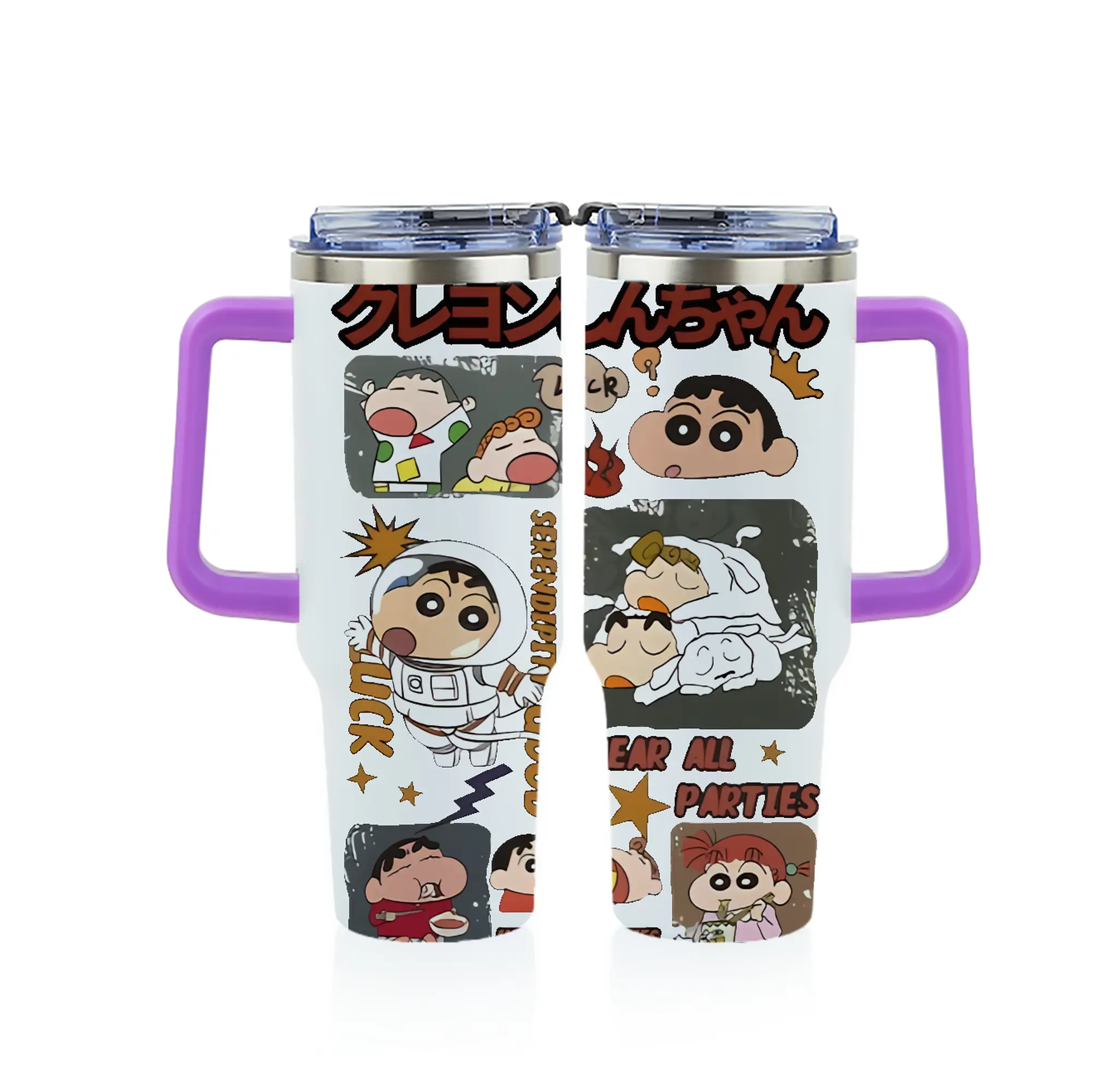 クレヨンしんちゃん グッズ 野原 しんのすけ - 1200mL フルプリント車用タンブラー ・ 304ステンレス 内側 ・ 201ステンレス 外側 ・ 保温 保冷 ・ 通勤 ドライブ アウトドア用