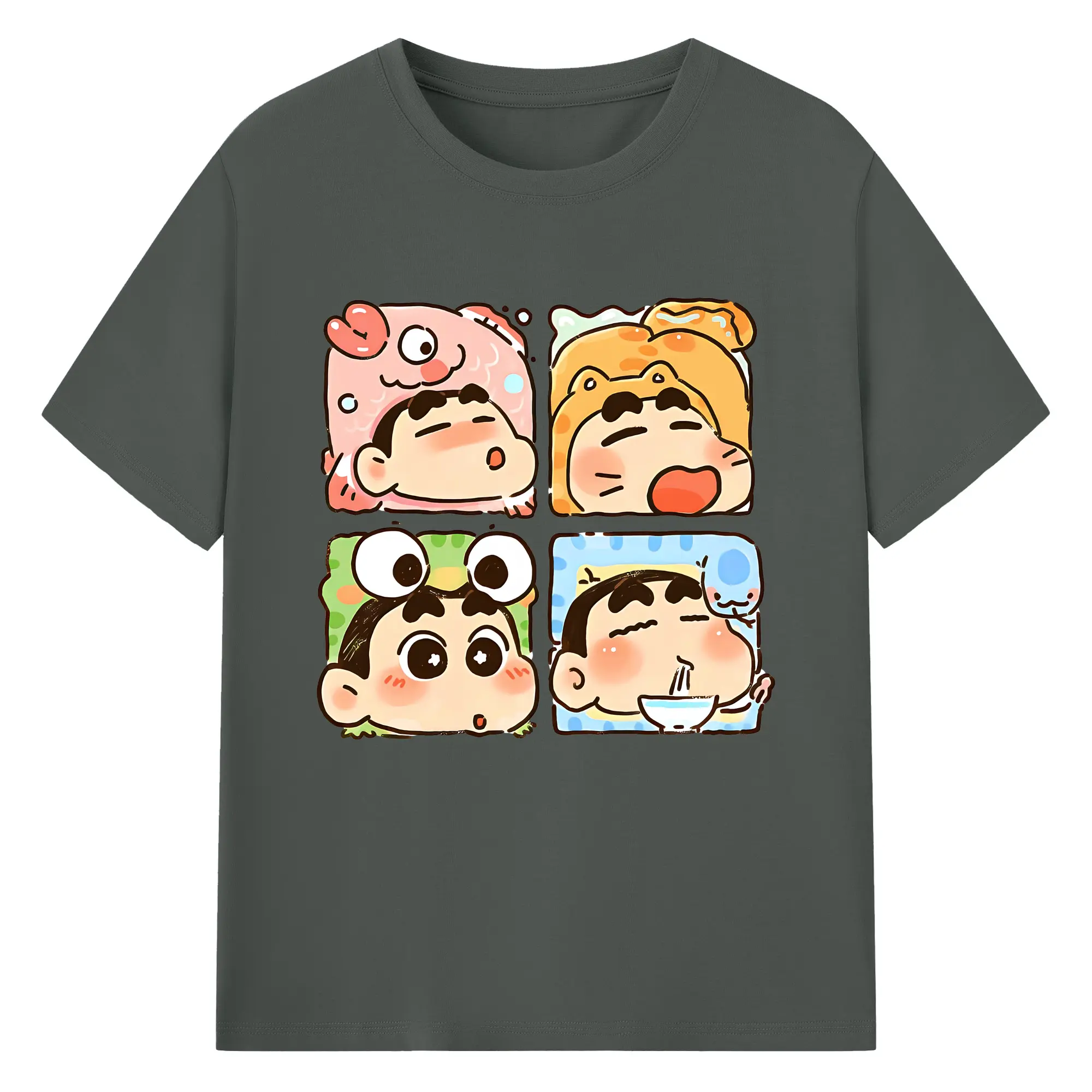 クレヨンしんちゃん グッズ 野原 しんのすけ - 綿100% ヴィンテージ風 半袖Tシャツ ・ フロントプリント ・ 柔らか肌触り ・ 通気性 快適 ・ スポーツ カジュアル 外出用