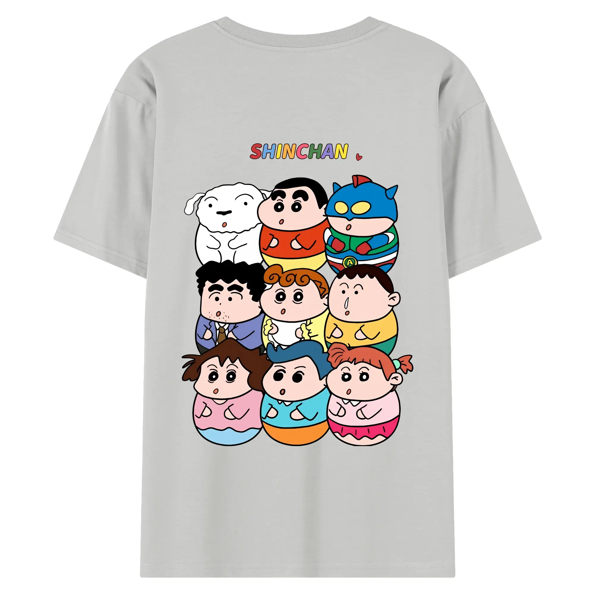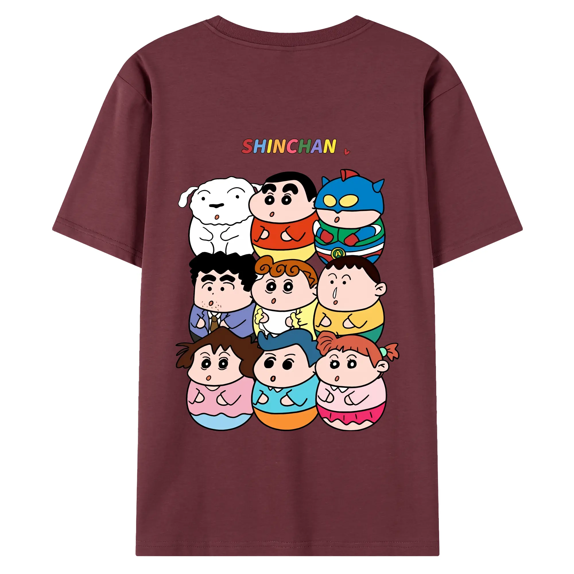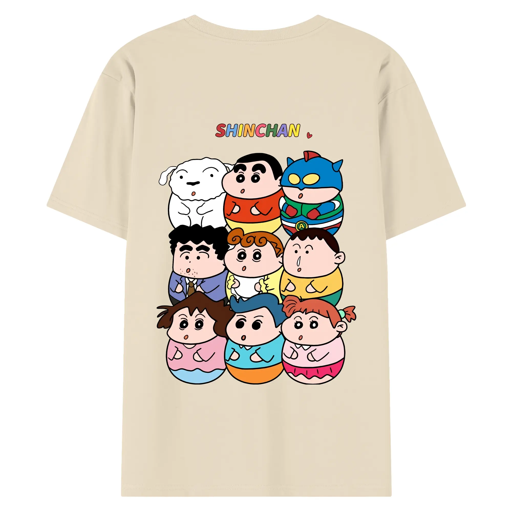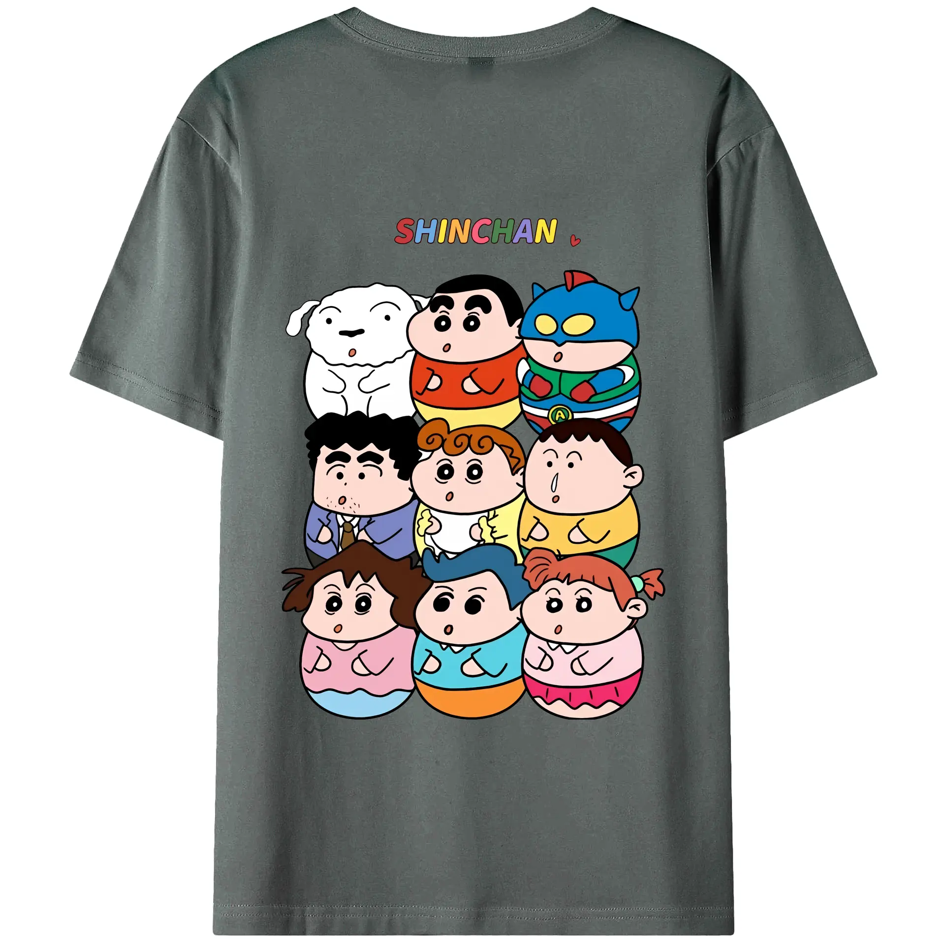 クレヨンしんちゃん グッズ 野原 しんのすけ - 綿100% ヴィンテージ風 半袖Tシャツ ・ 背面プリント ・ 柔らか肌触り ・ 通気性 快適 ・ スポーツ カジュアル 外出用
