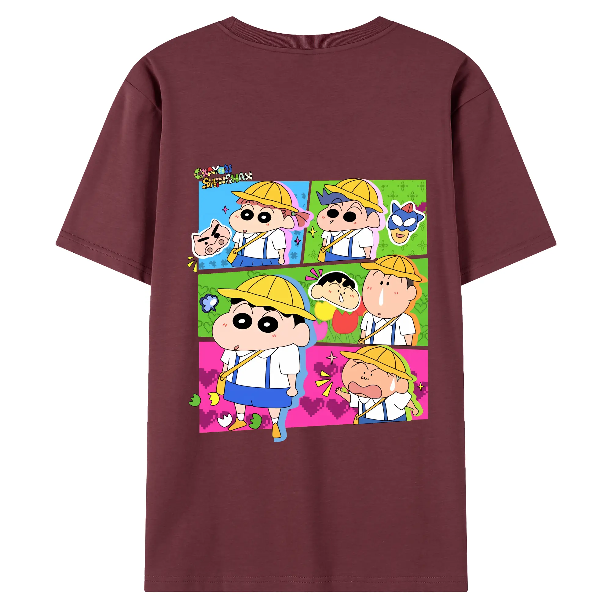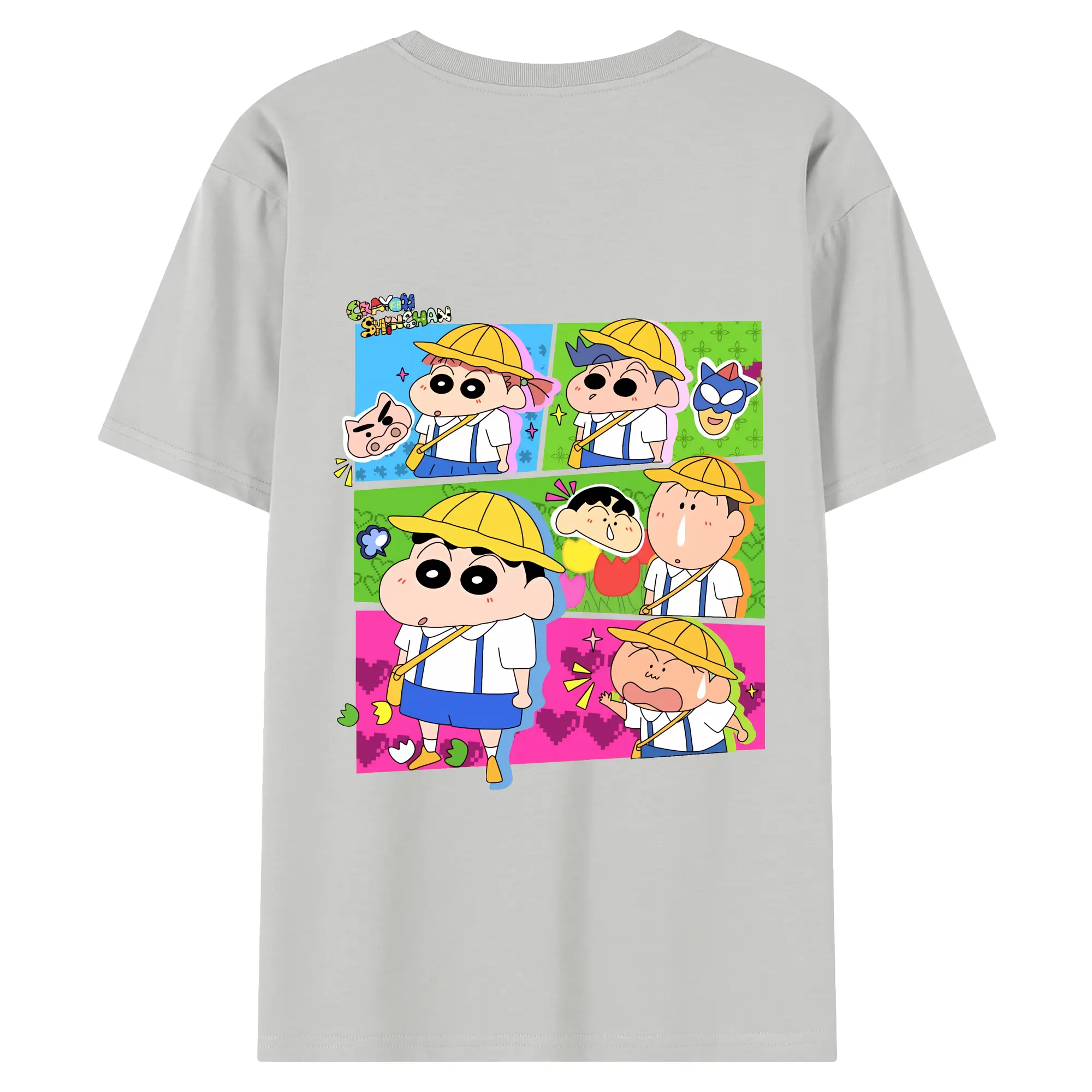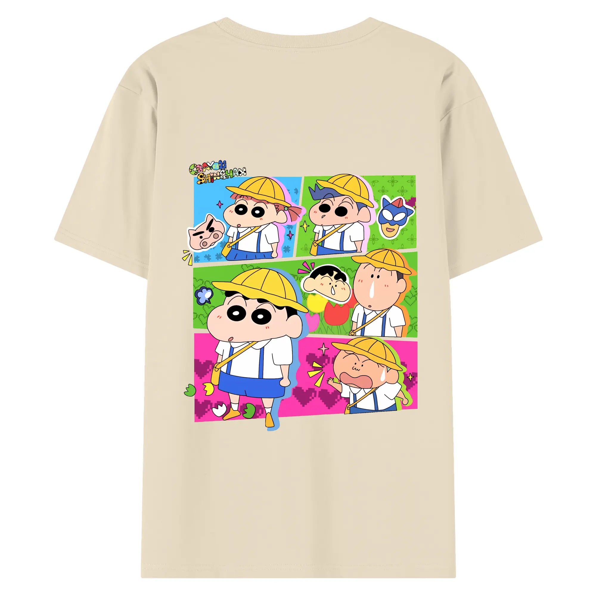 クレヨンしんちゃん グッズ 野原 しんのすけ - 綿100% ヴィンテージ風 半袖Tシャツ ・ 背面プリント ・ 柔らか肌触り ・ 通気性 快適 ・ スポーツ カジュアル 外出用