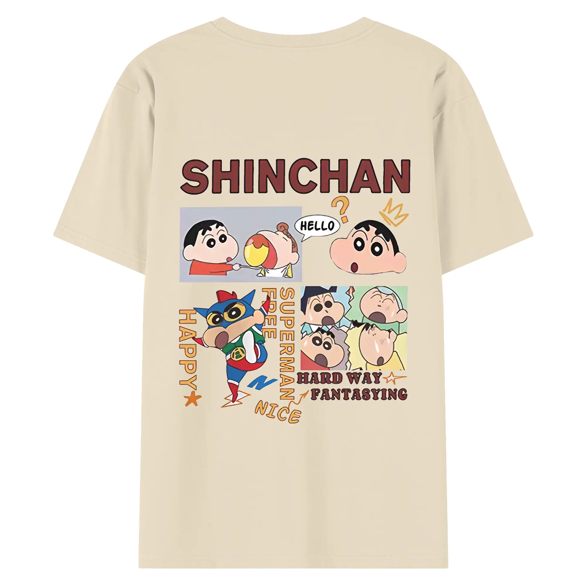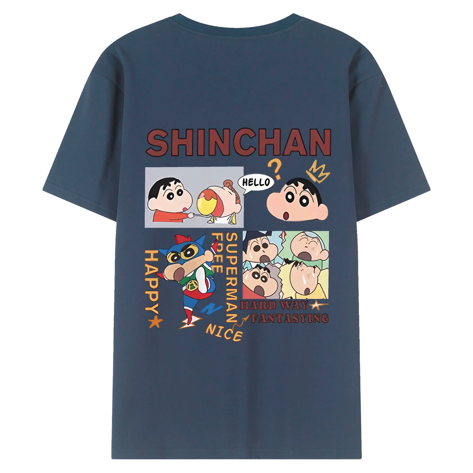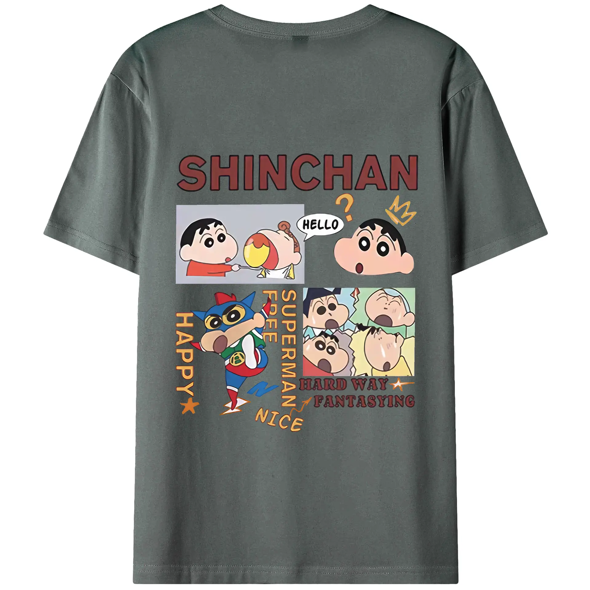 クレヨンしんちゃん グッズ 野原 しんのすけ - 綿100% ヴィンテージ風 半袖Tシャツ ・ 背面プリント ・ 柔らか肌触り ・ 通気性 快適 ・ スポーツ カジュアル 外出用
