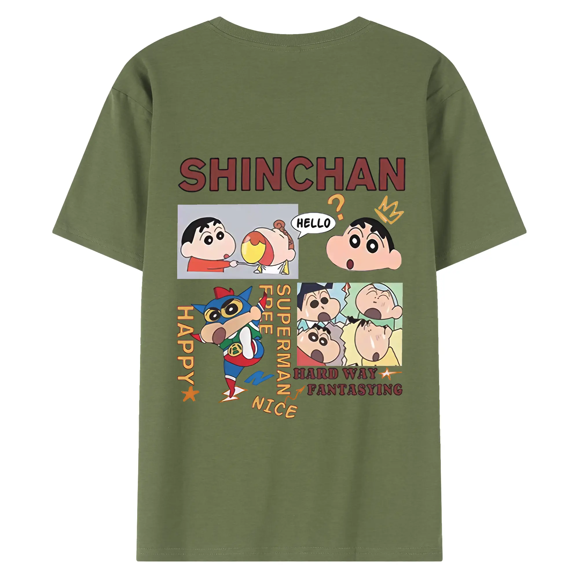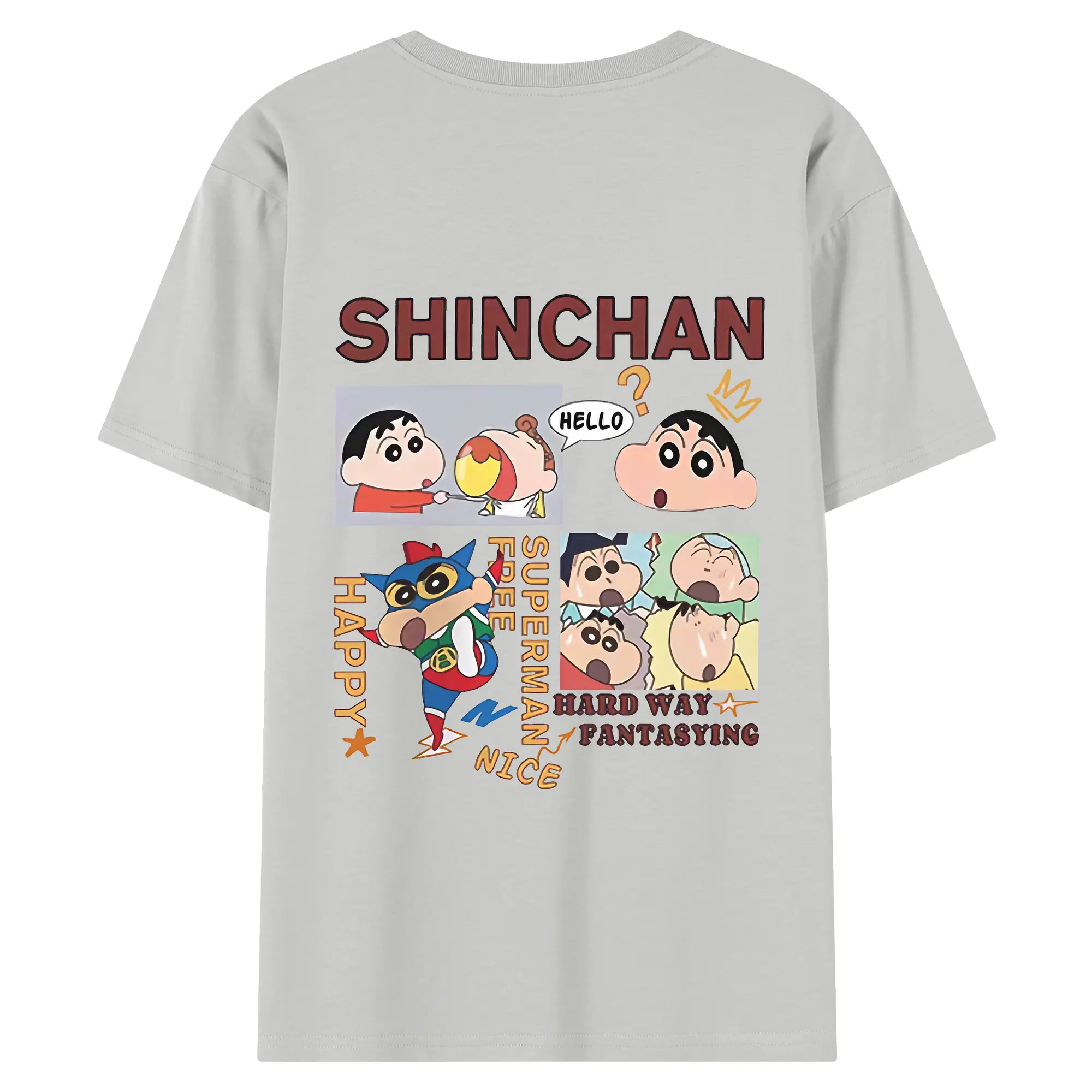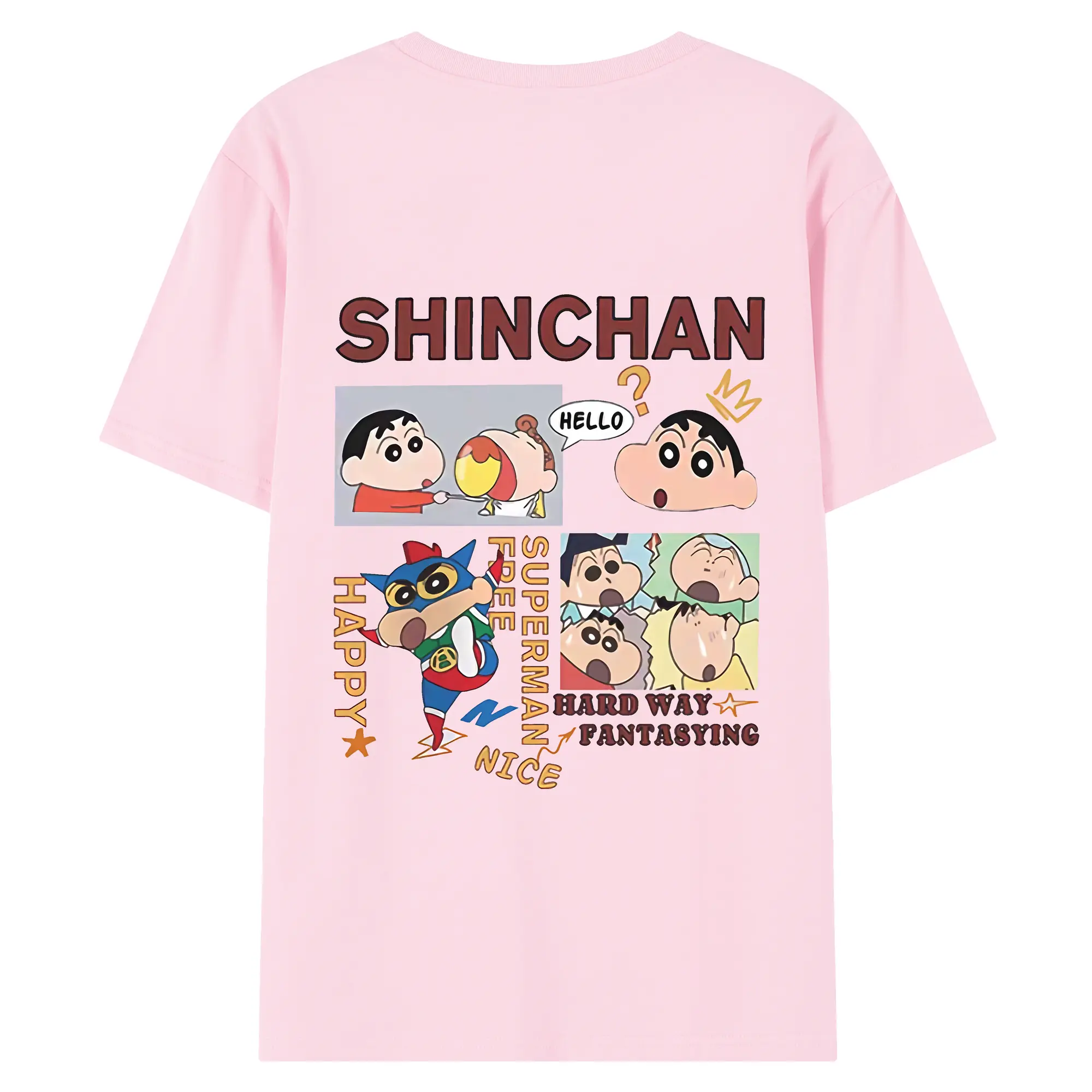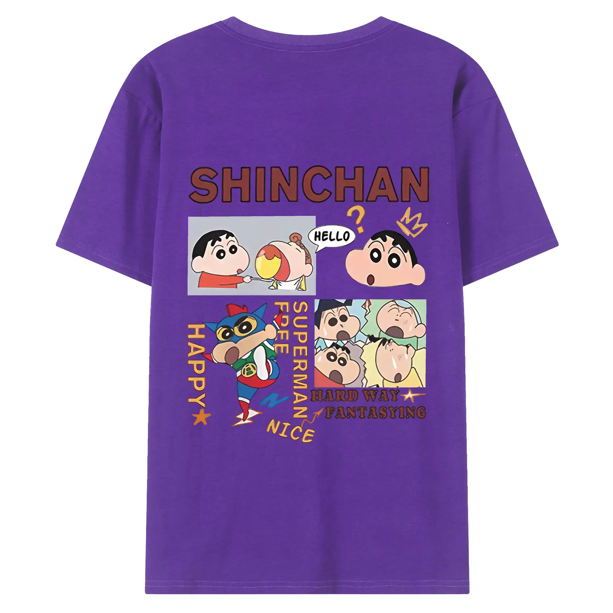 クレヨンしんちゃん グッズ 野原 しんのすけ - 綿100% ヴィンテージ風 半袖Tシャツ ・ 背面プリント ・ 柔らか肌触り ・ 通気性 快適 ・ スポーツ カジュアル 外出用