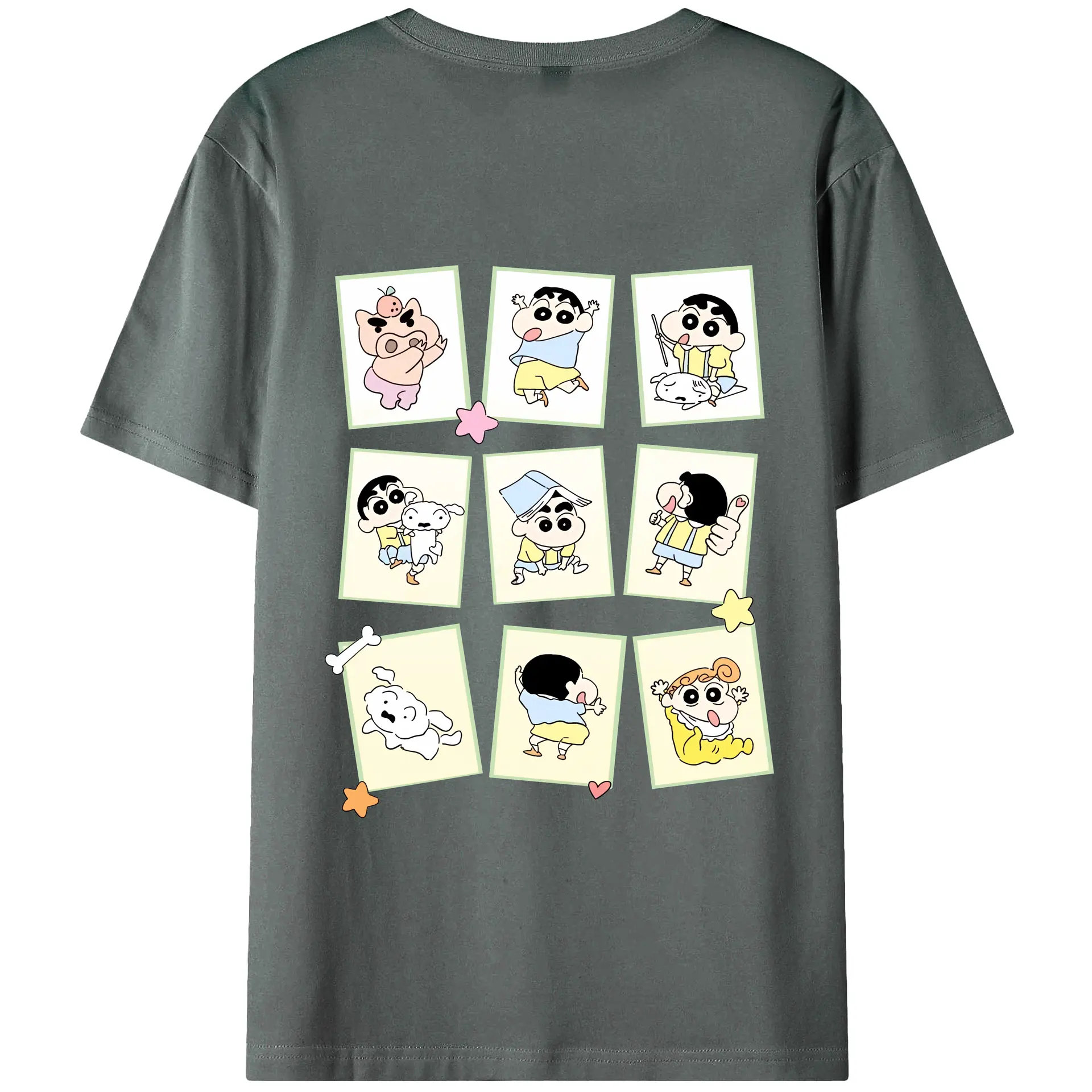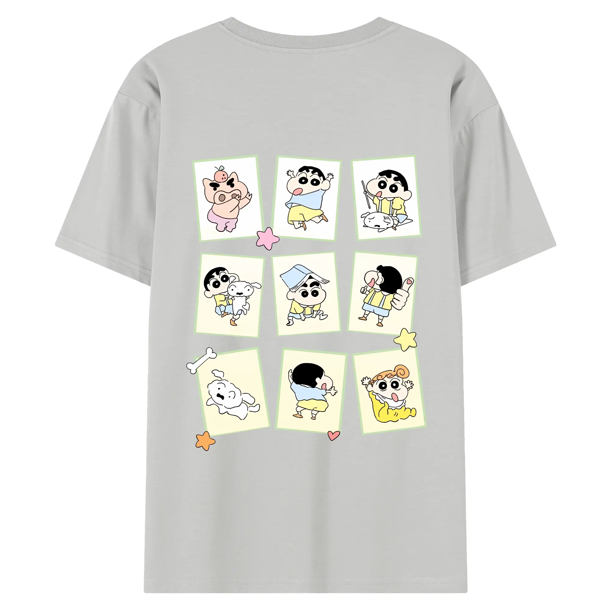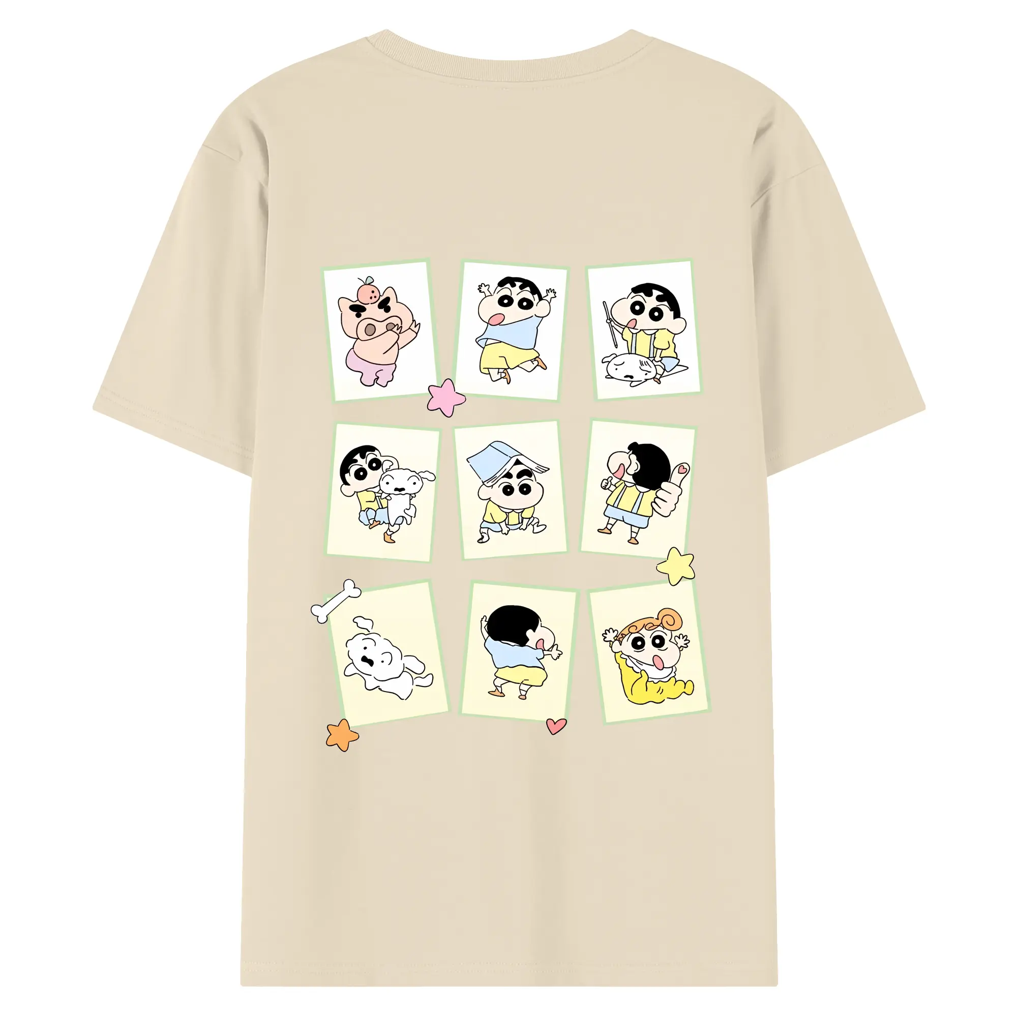 クレヨンしんちゃん グッズ 野原 しんのすけ - 綿100% ヴィンテージ風 半袖Tシャツ ・ 背面プリント ・ 柔らか肌触り ・ 通気性 快適 ・ スポーツ カジュアル 外出用