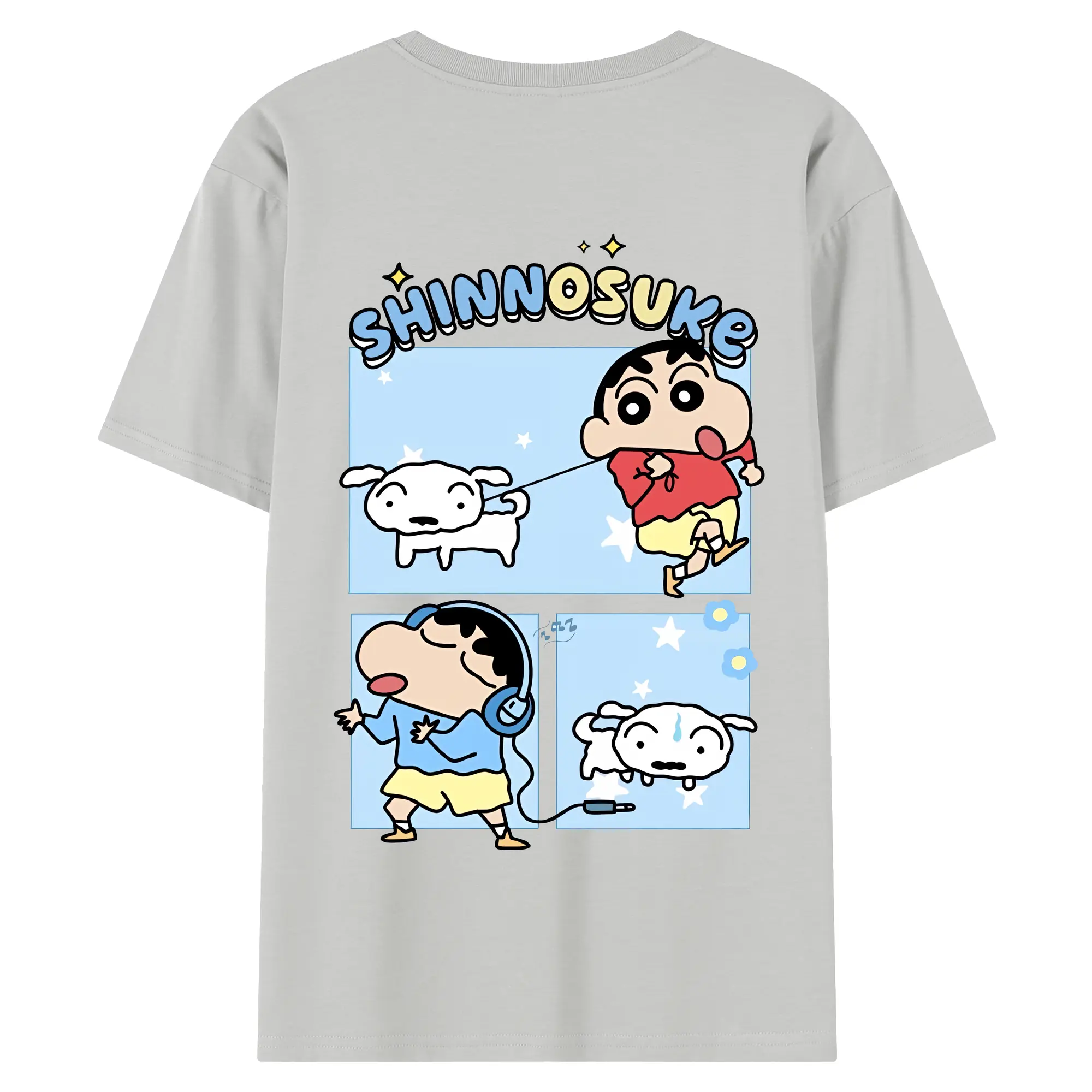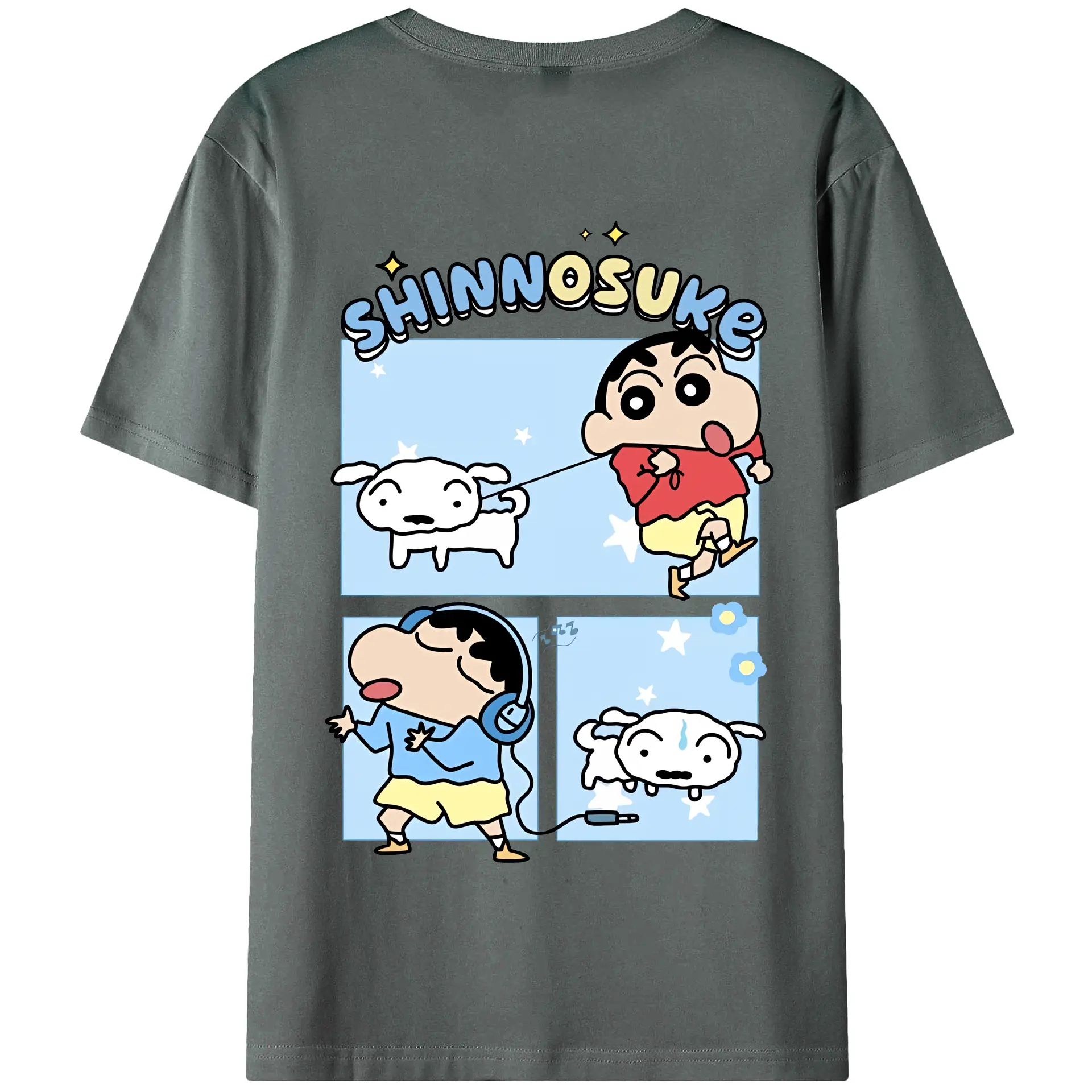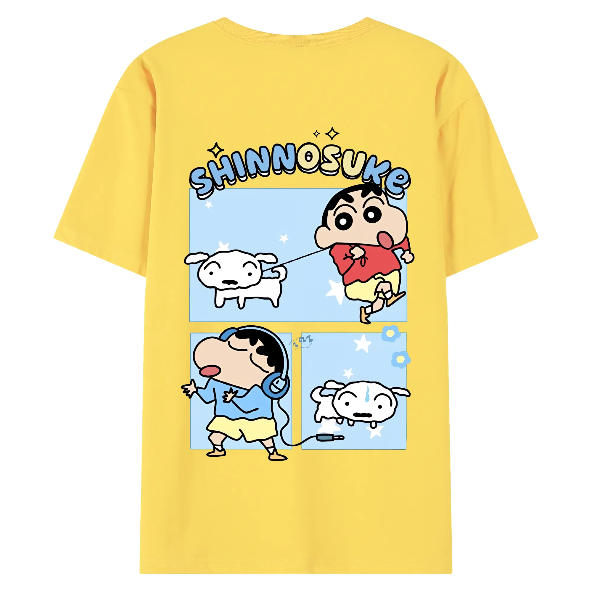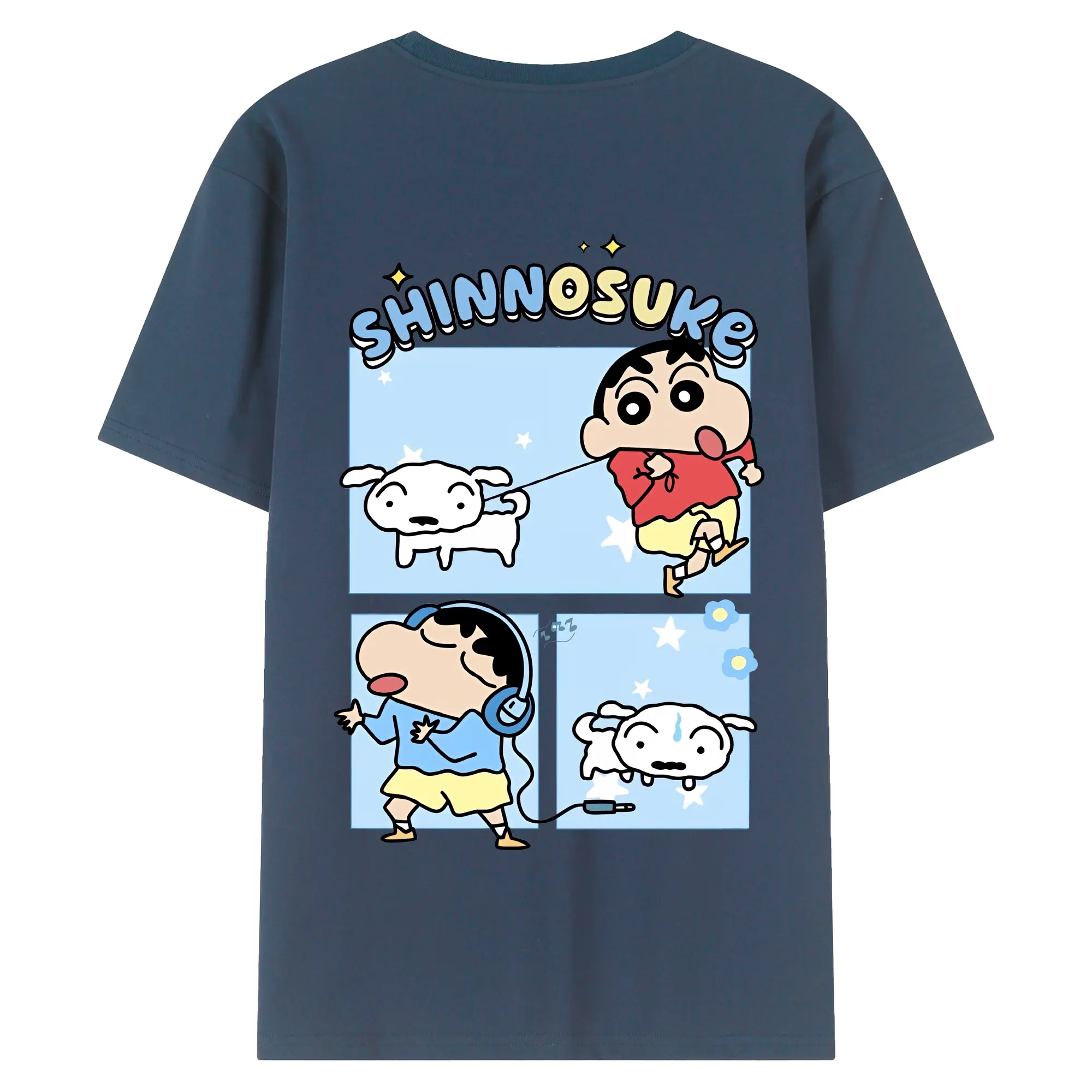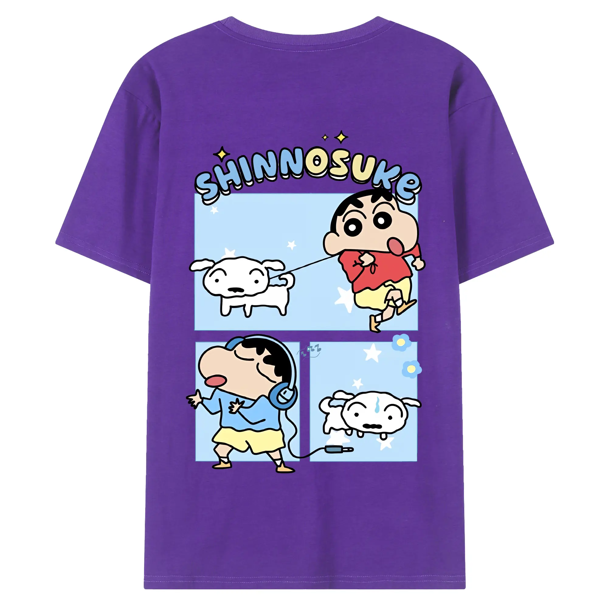 クレヨンしんちゃん グッズ 野原 しんのすけ - 綿100% ヴィンテージ風 半袖Tシャツ ・ 背面プリント ・ 柔らか肌触り ・ 通気性 快適 ・ スポーツ カジュアル 外出用
