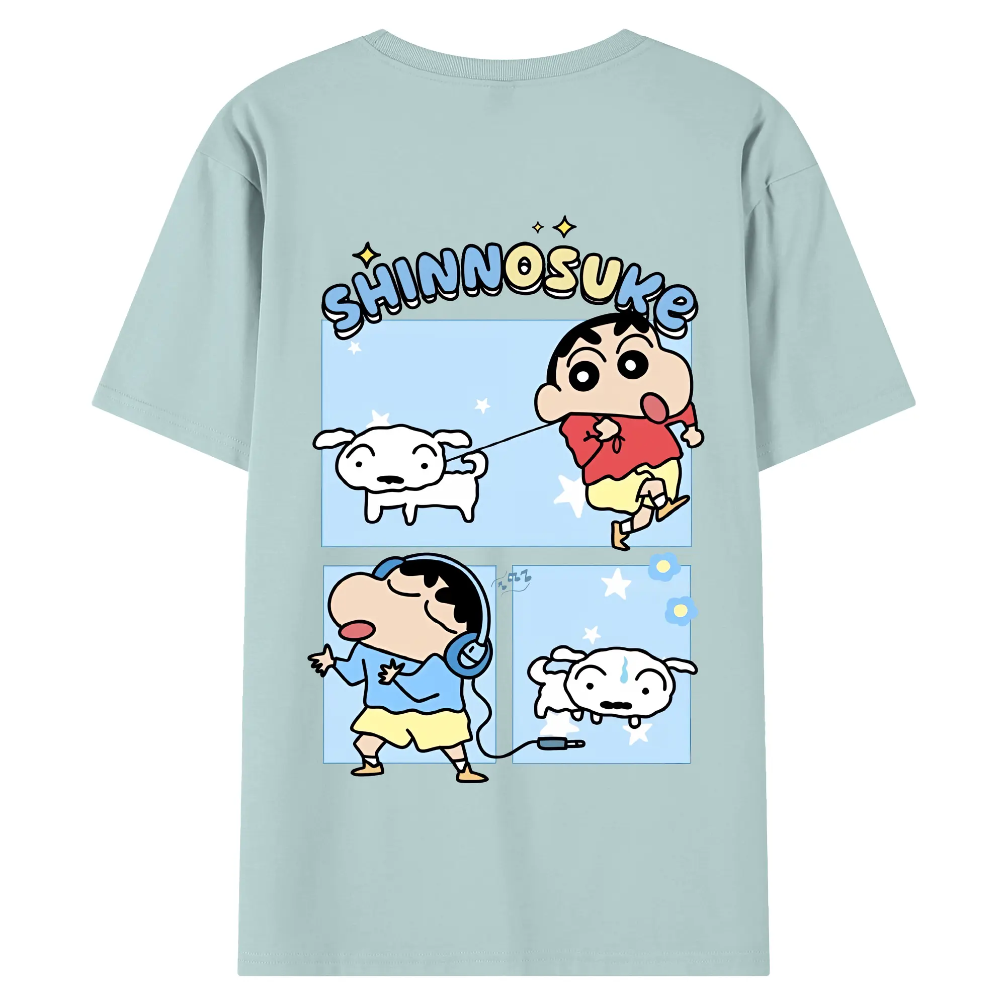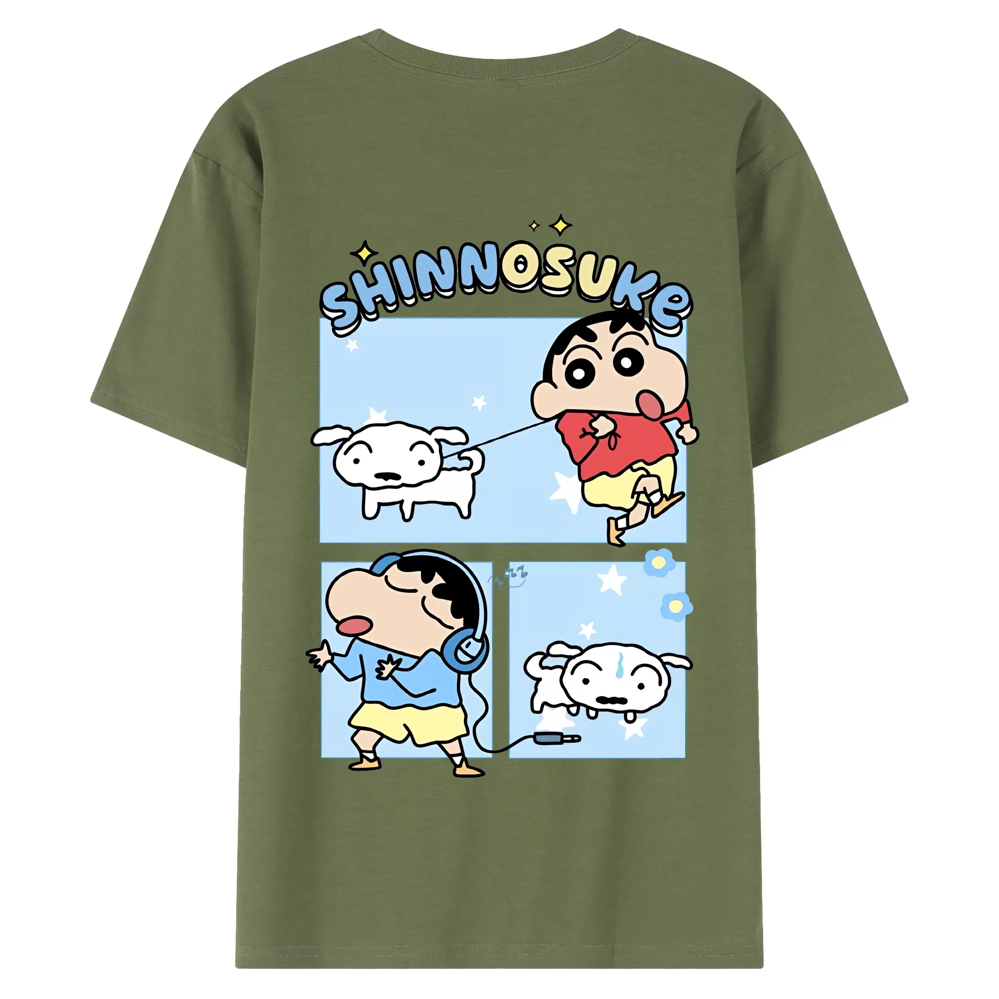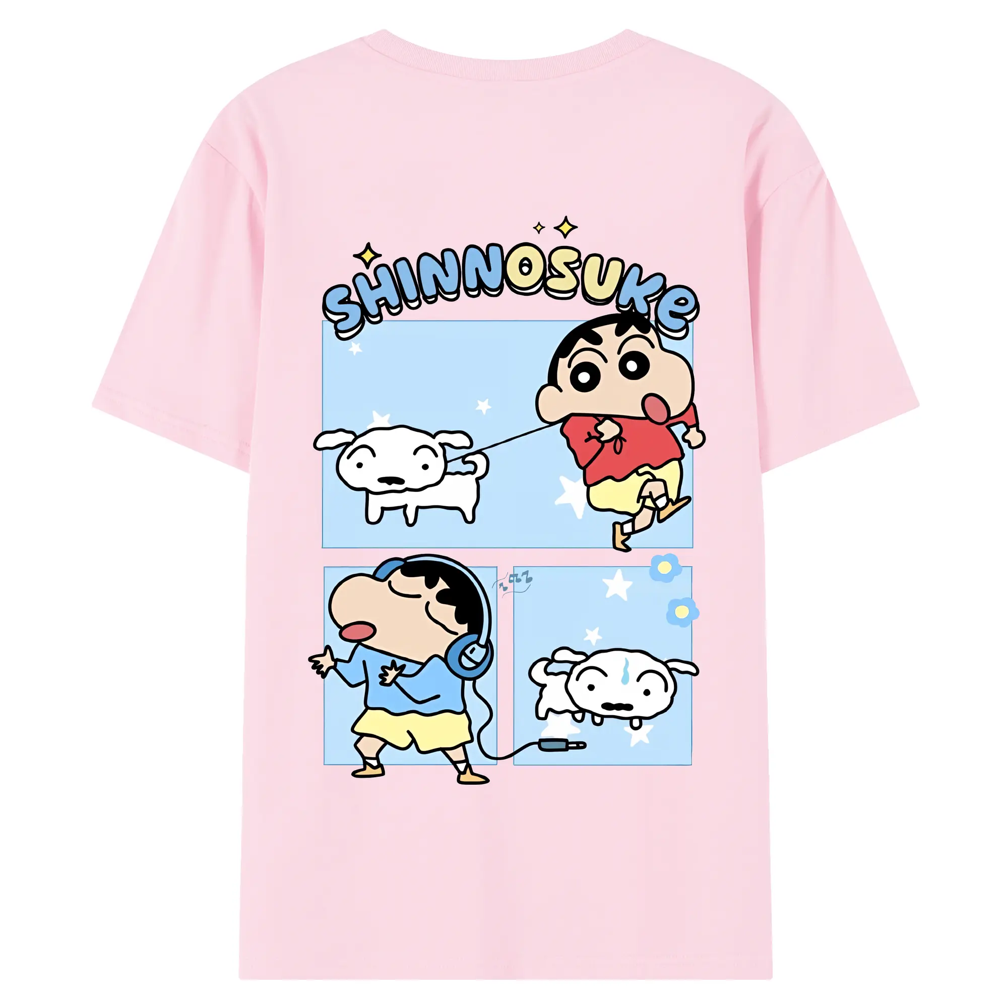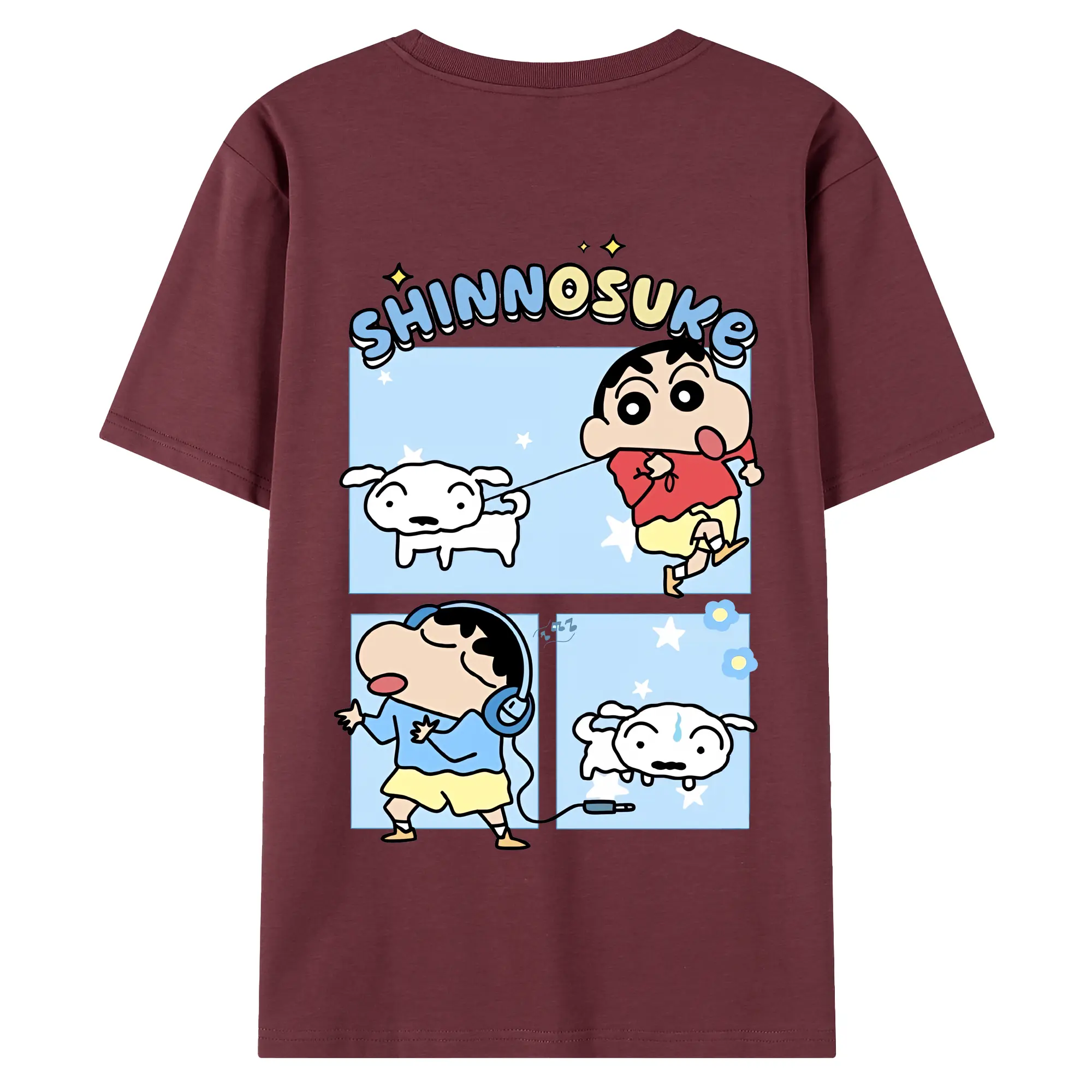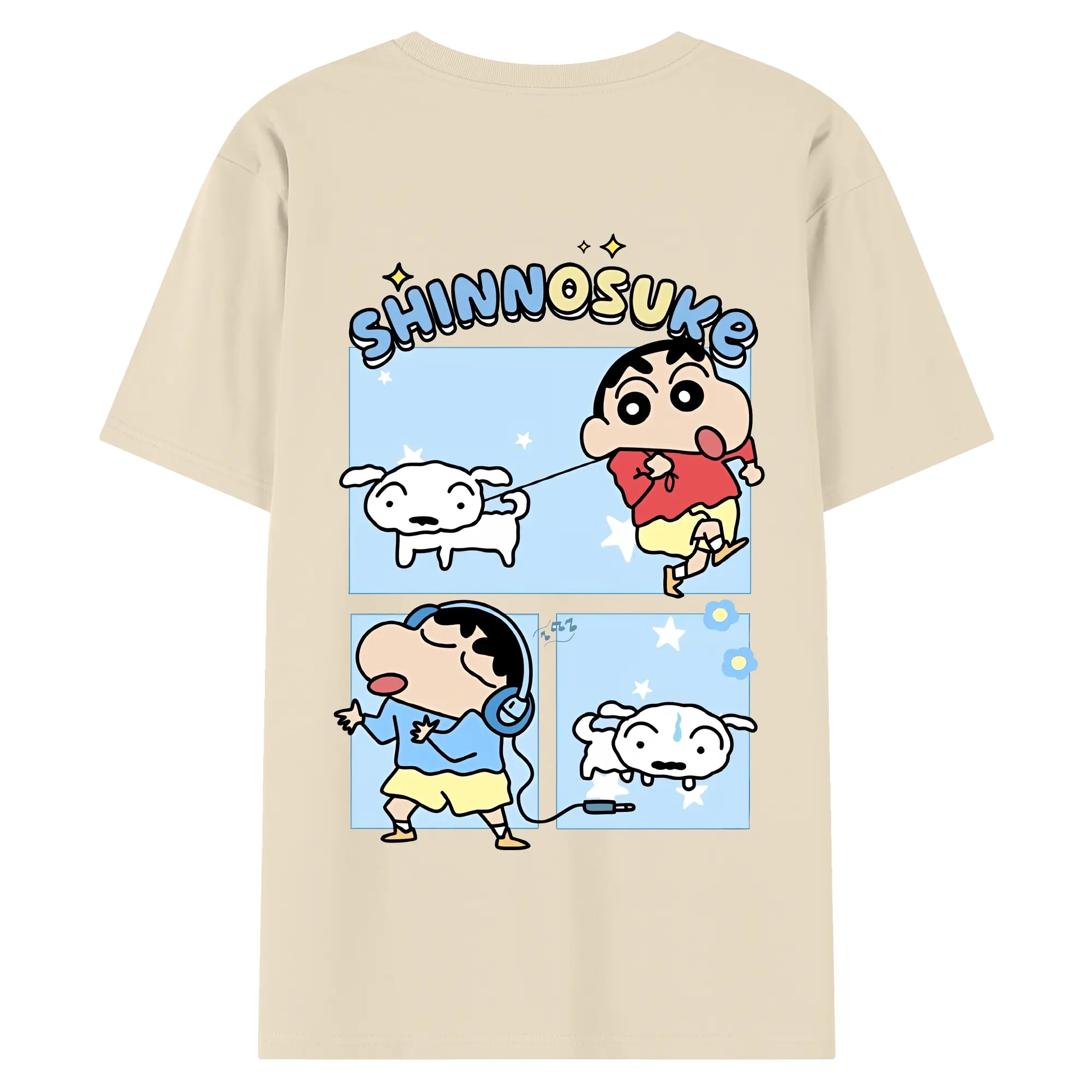 クレヨンしんちゃん グッズ 野原 しんのすけ - 綿100% ヴィンテージ風 半袖Tシャツ ・ 背面プリント ・ 柔らか肌触り ・ 通気性 快適 ・ スポーツ カジュアル 外出用