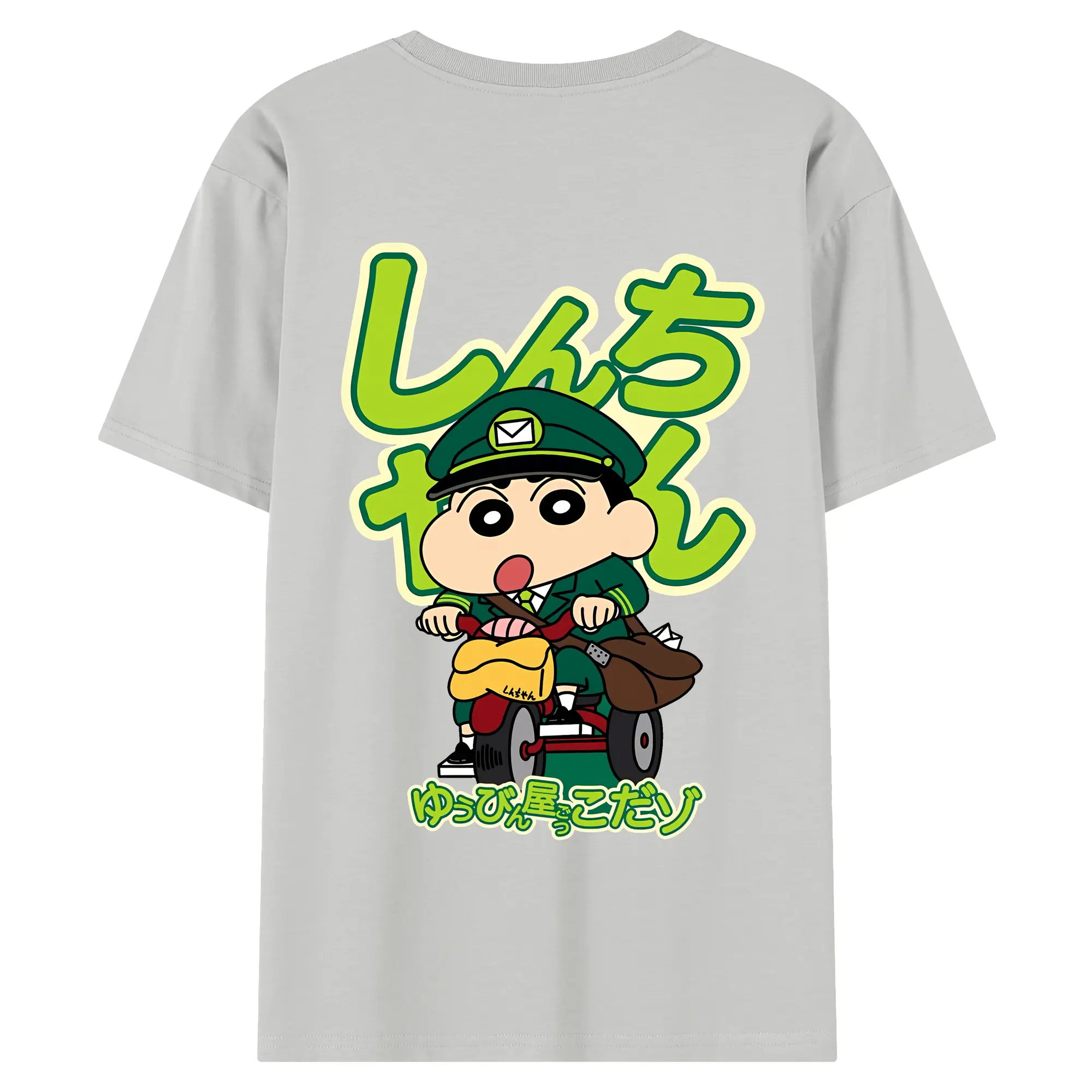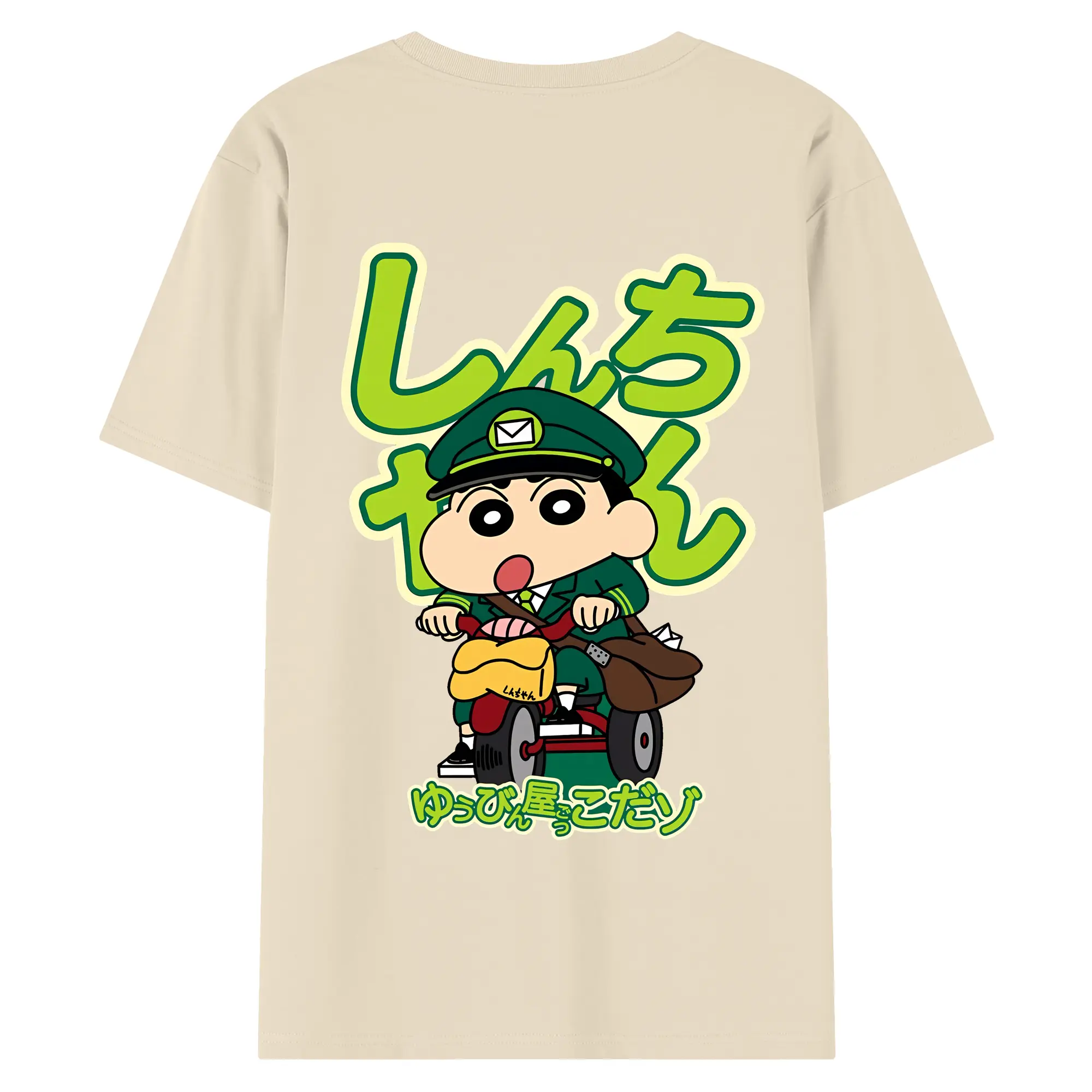 クレヨンしんちゃん グッズ 野原 しんのすけ - 綿100% ヴィンテージ風 半袖Tシャツ ・ 背面プリント ・ 柔らか肌触り ・ 通気性 快適 ・ スポーツ カジュアル 外出用