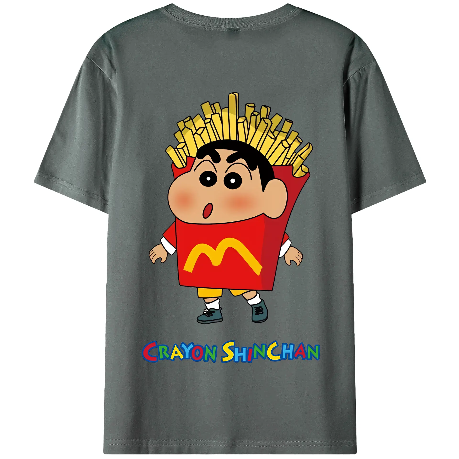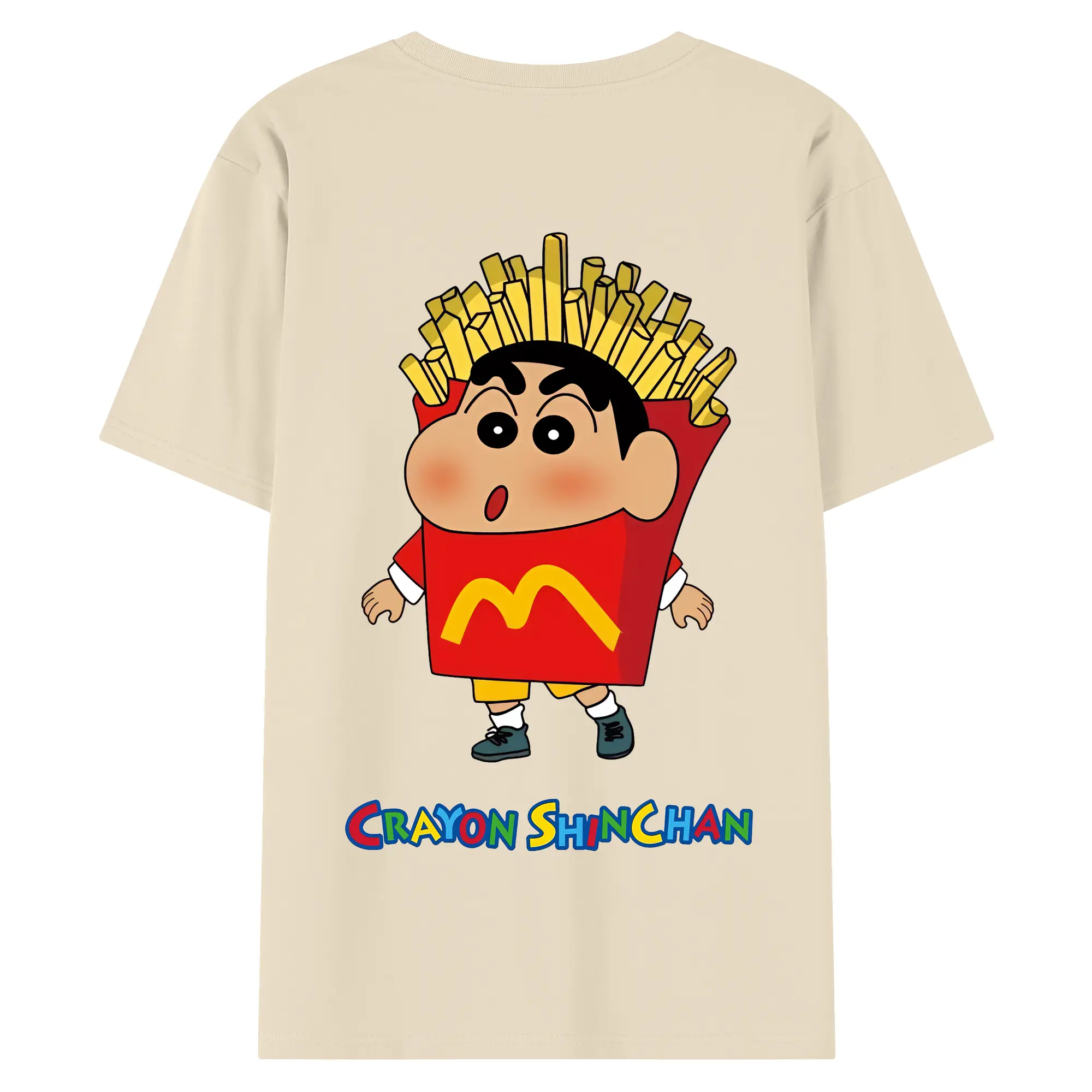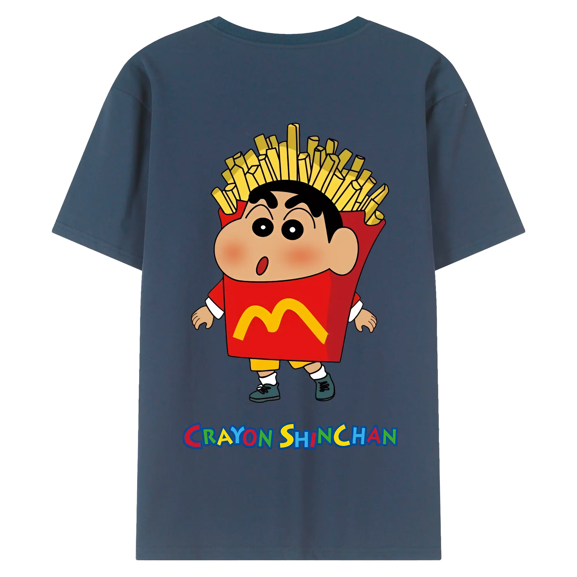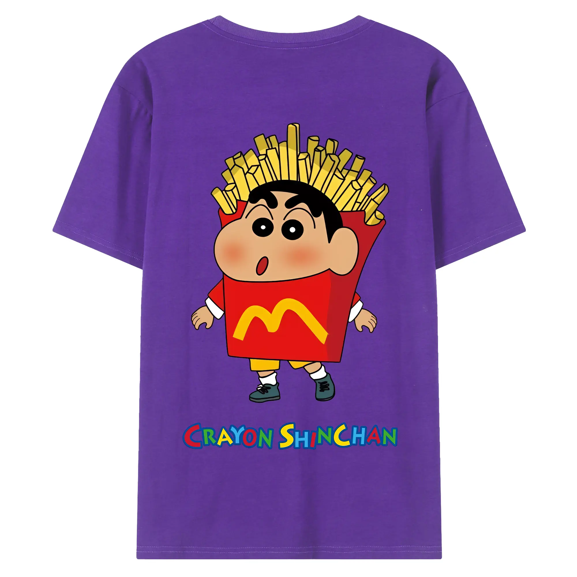 クレヨンしんちゃん グッズ 野原 しんのすけ - 綿100% ヴィンテージ風 半袖Tシャツ ・ 背面プリント ・ 柔らか肌触り ・ 通気性 快適 ・ スポーツ カジュアル 外出用