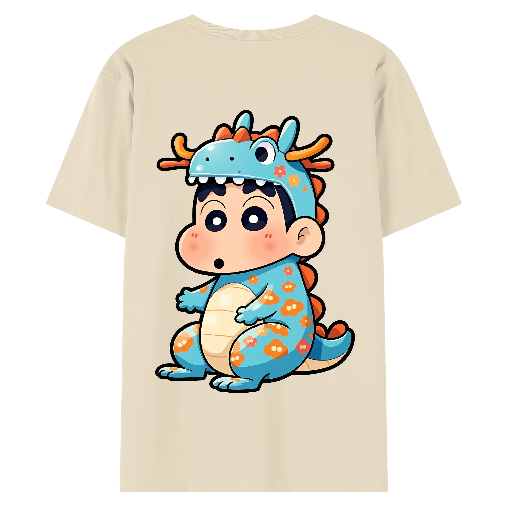 クレヨンしんちゃん グッズ 野原 しんのすけ - 綿100% ヴィンテージ風 半袖Tシャツ ・ 背面プリント ・ 柔らか肌触り ・ 通気性 快適 ・ スポーツ カジュアル 外出用