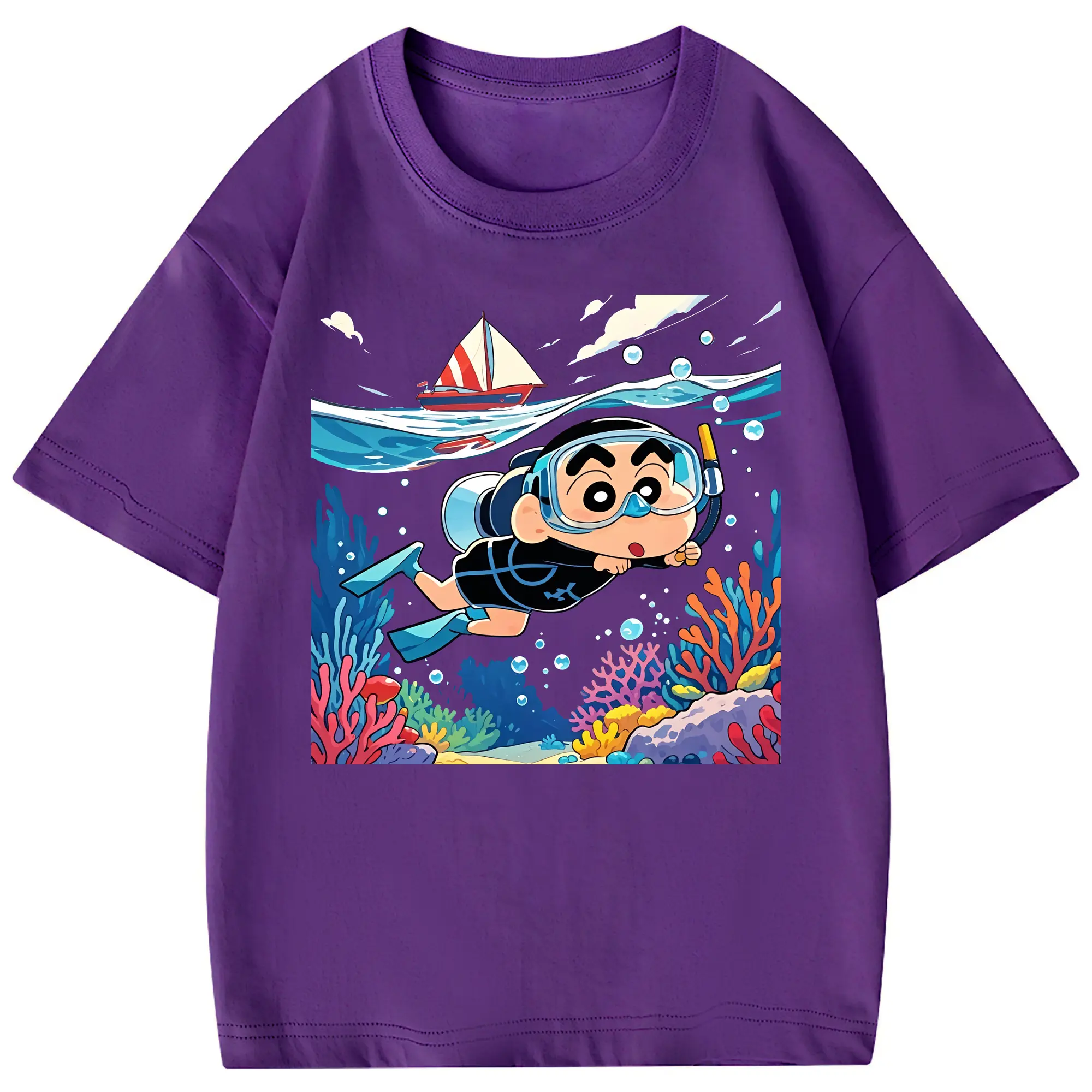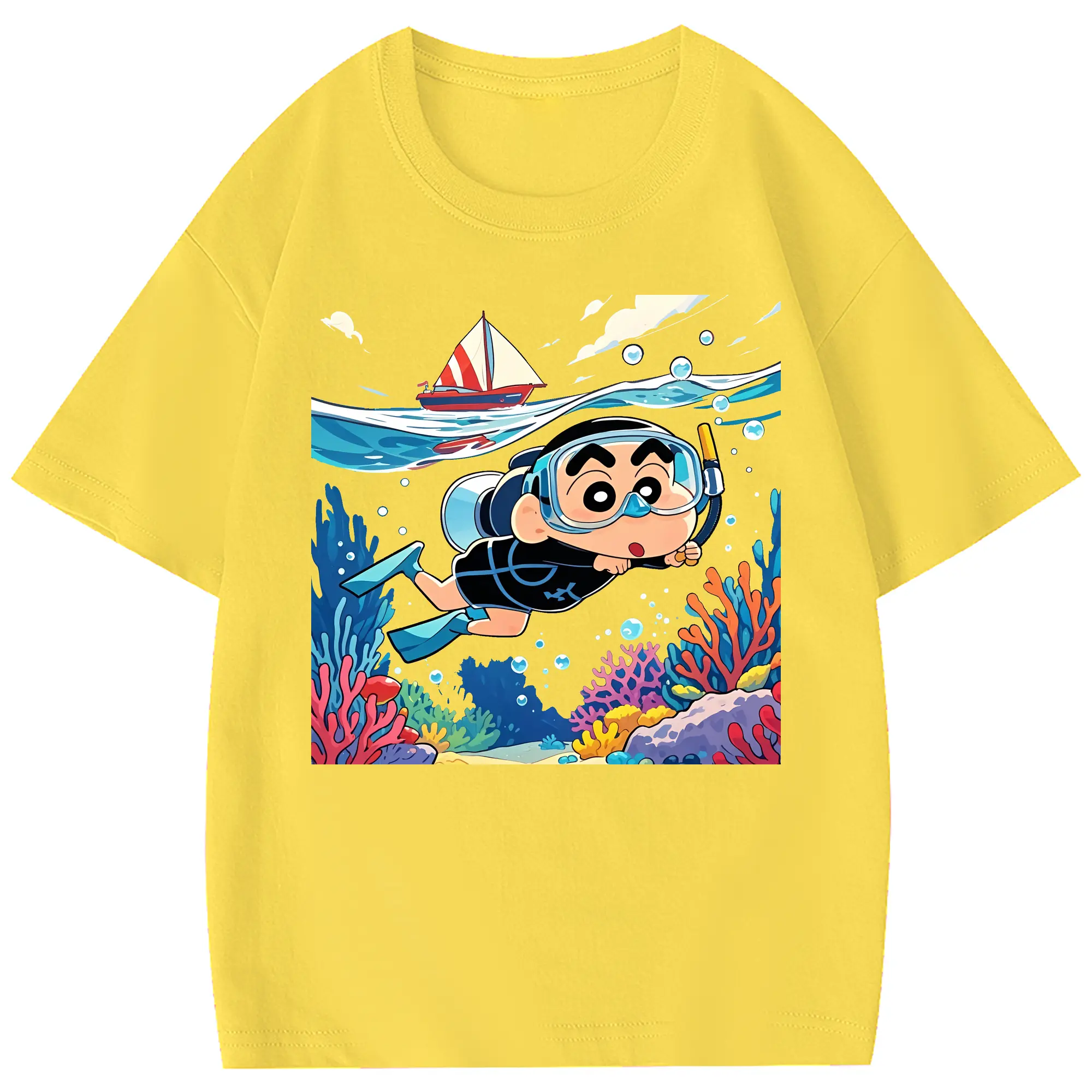 クレヨンしんちゃん グッズ 野原 しんのすけ - 綿100% 半袖Tシャツ ・ フロントプリント ・ 快適 通気性 ・ 日常使い 散歩 スポーツ用