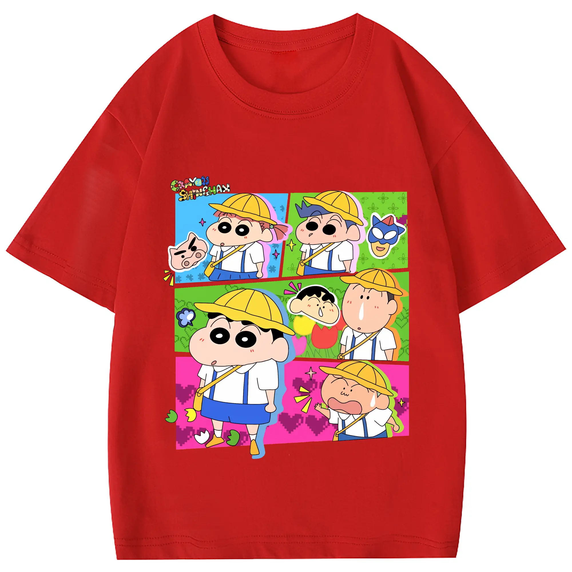 クレヨンしんちゃん グッズ 野原 しんのすけ - 綿100% 半袖Tシャツ ・ フロントプリント ・ 快適 通気性 ・ 日常使い 散歩 スポーツ用