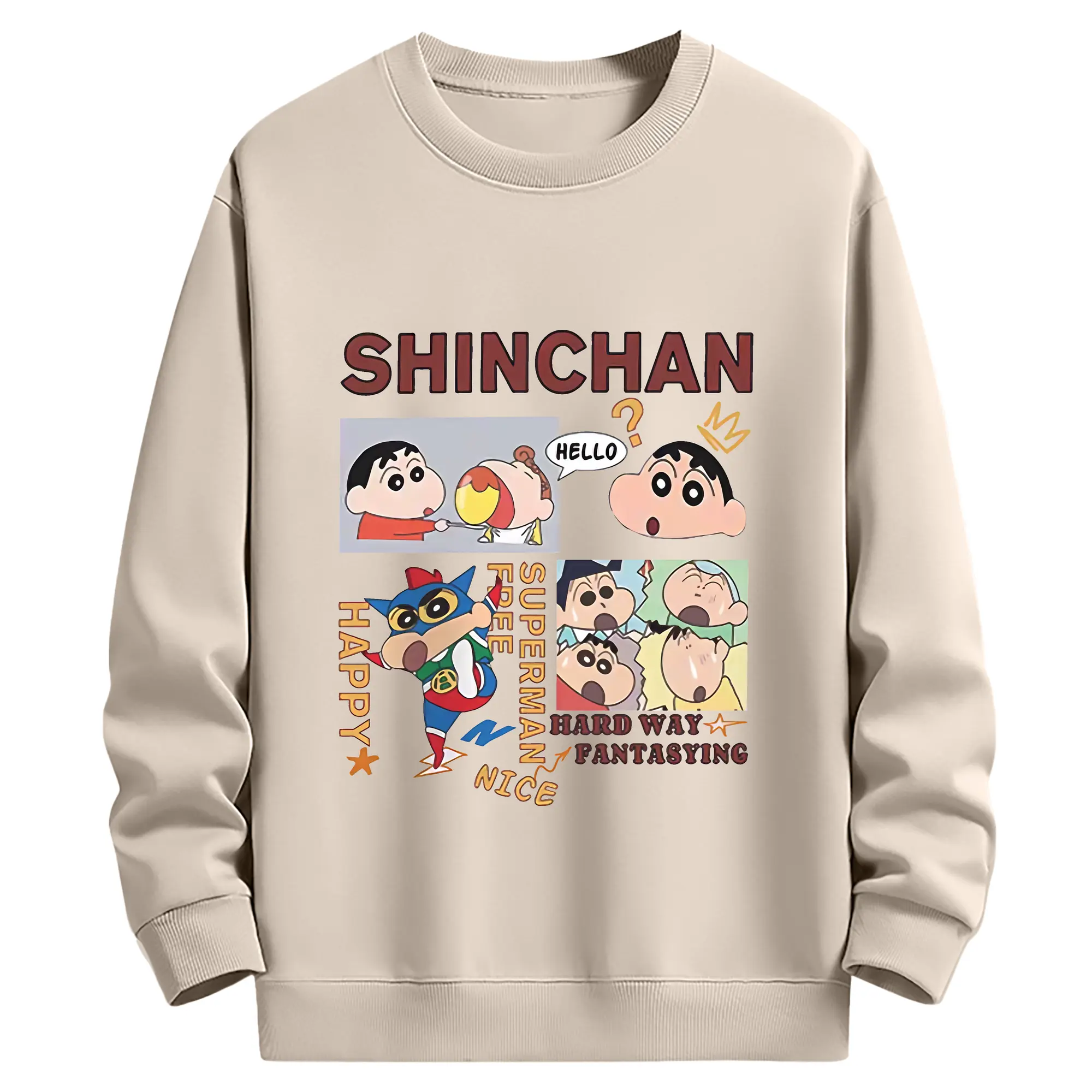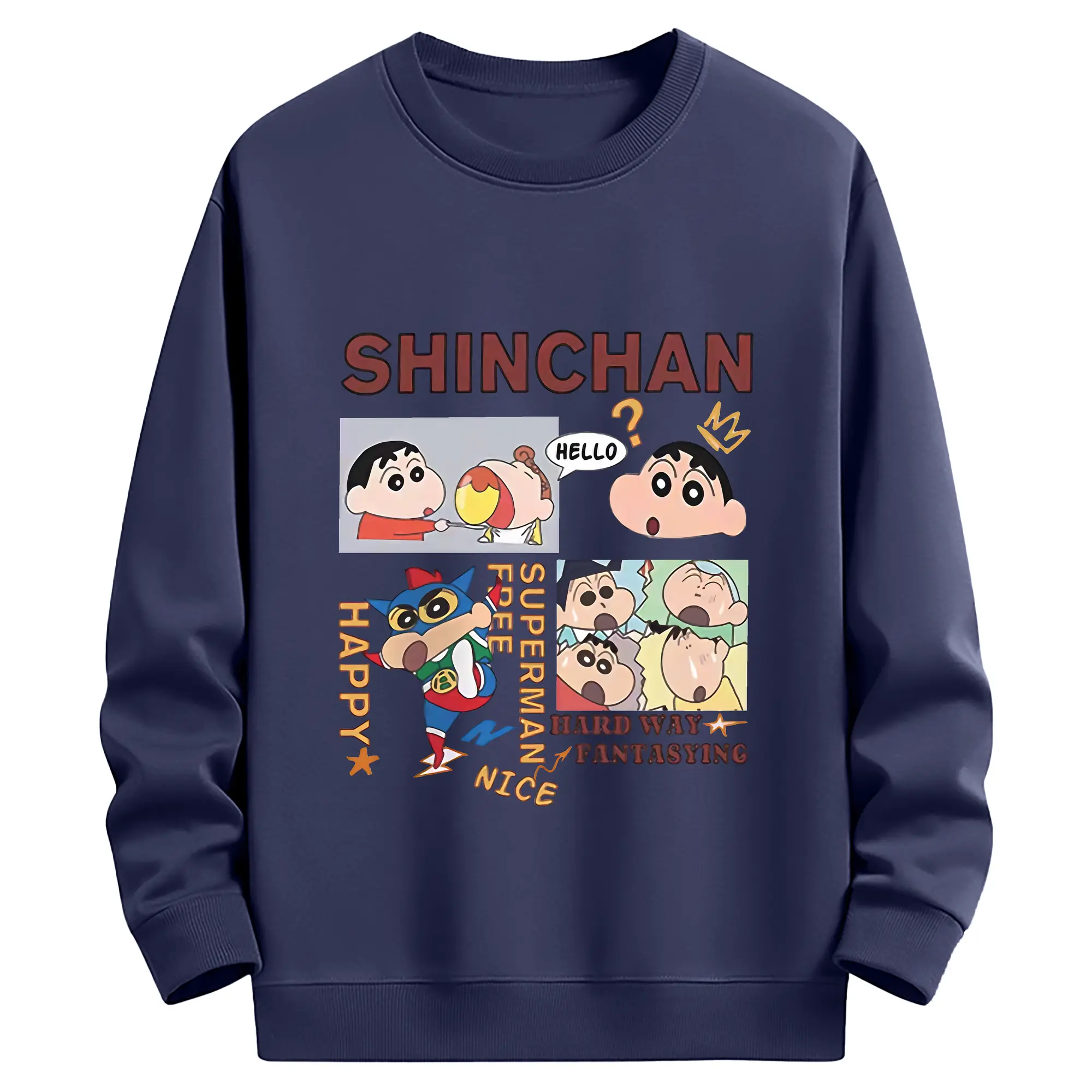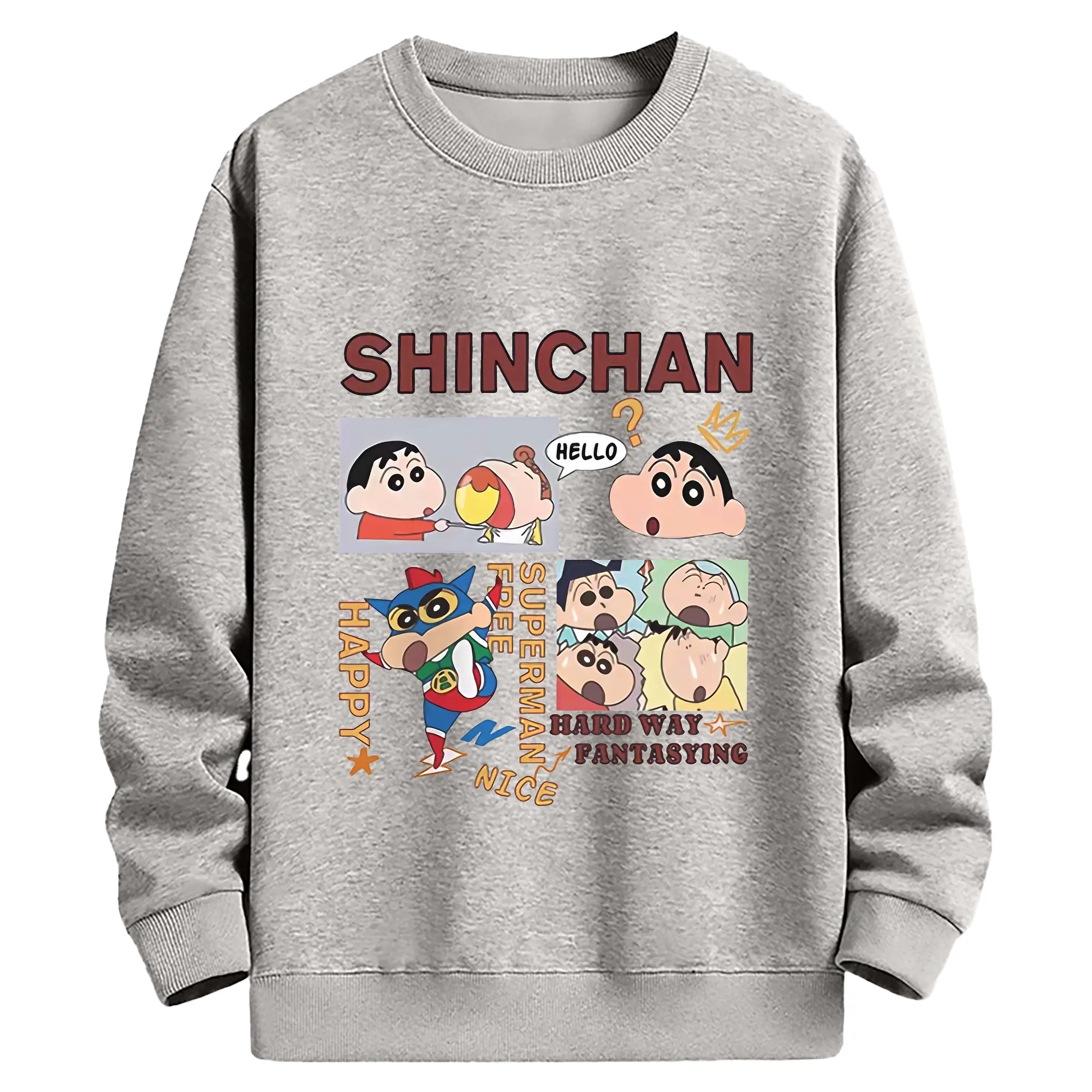クレヨンしんちゃん グッズ 野原 しんのすけ - 薄手 クルーネック スウェット 裏毛260g · ポリエステル 春秋向け カジュアル 男女兼用 · トレーナー デイリー スポーツ 散歩に最適