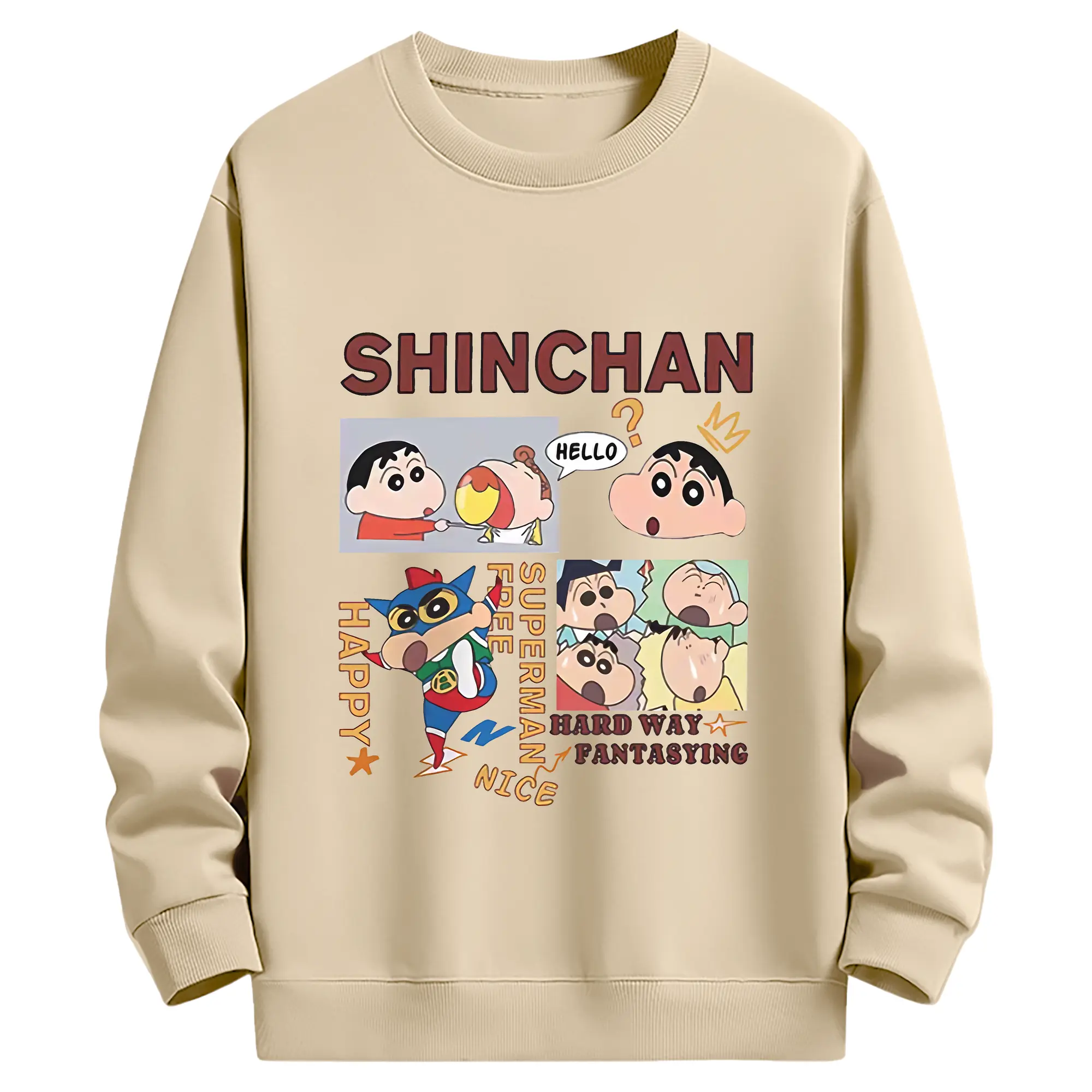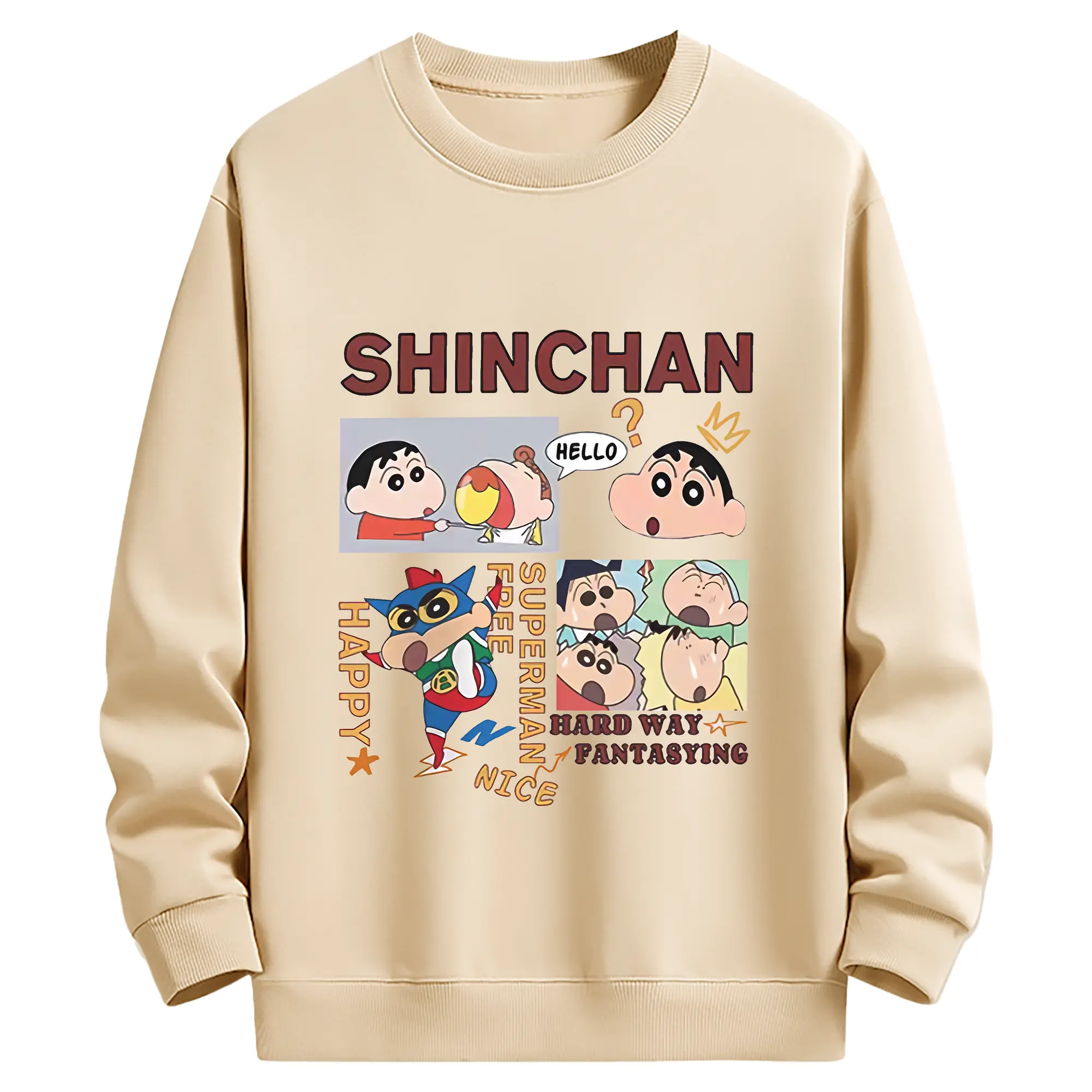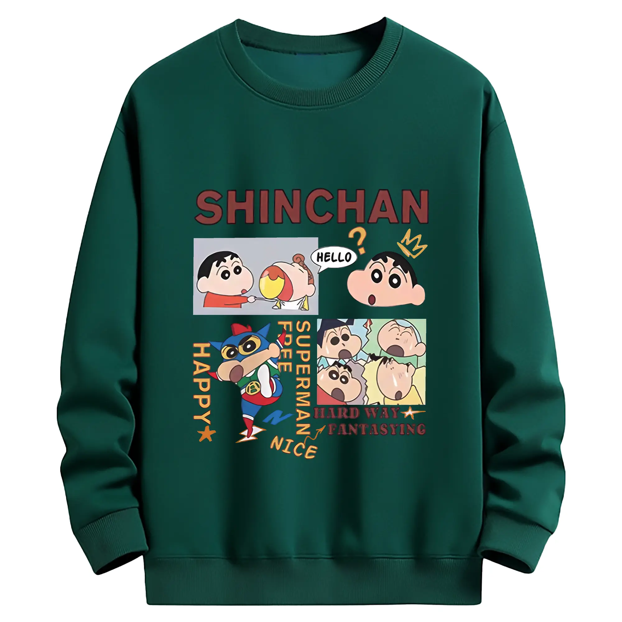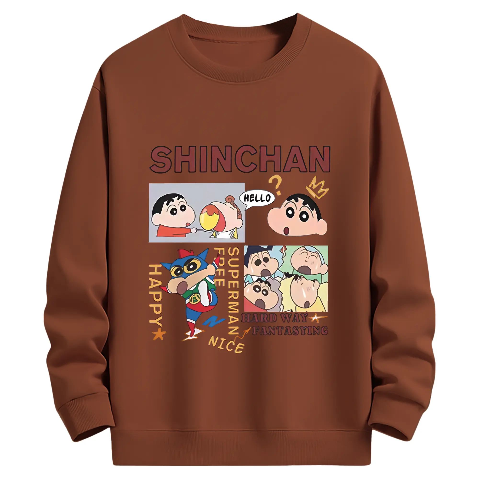 クレヨンしんちゃん グッズ 野原 しんのすけ - 薄手 クルーネック スウェット 裏毛260g · ポリエステル 春秋向け カジュアル 男女兼用 · トレーナー デイリー スポーツ 散歩に最適