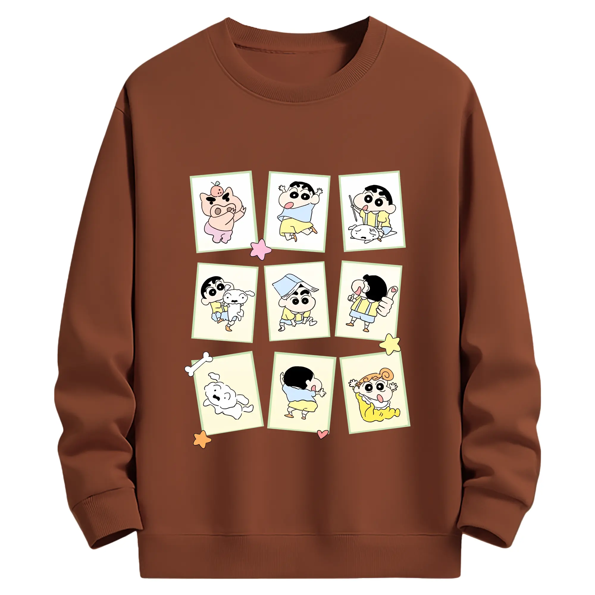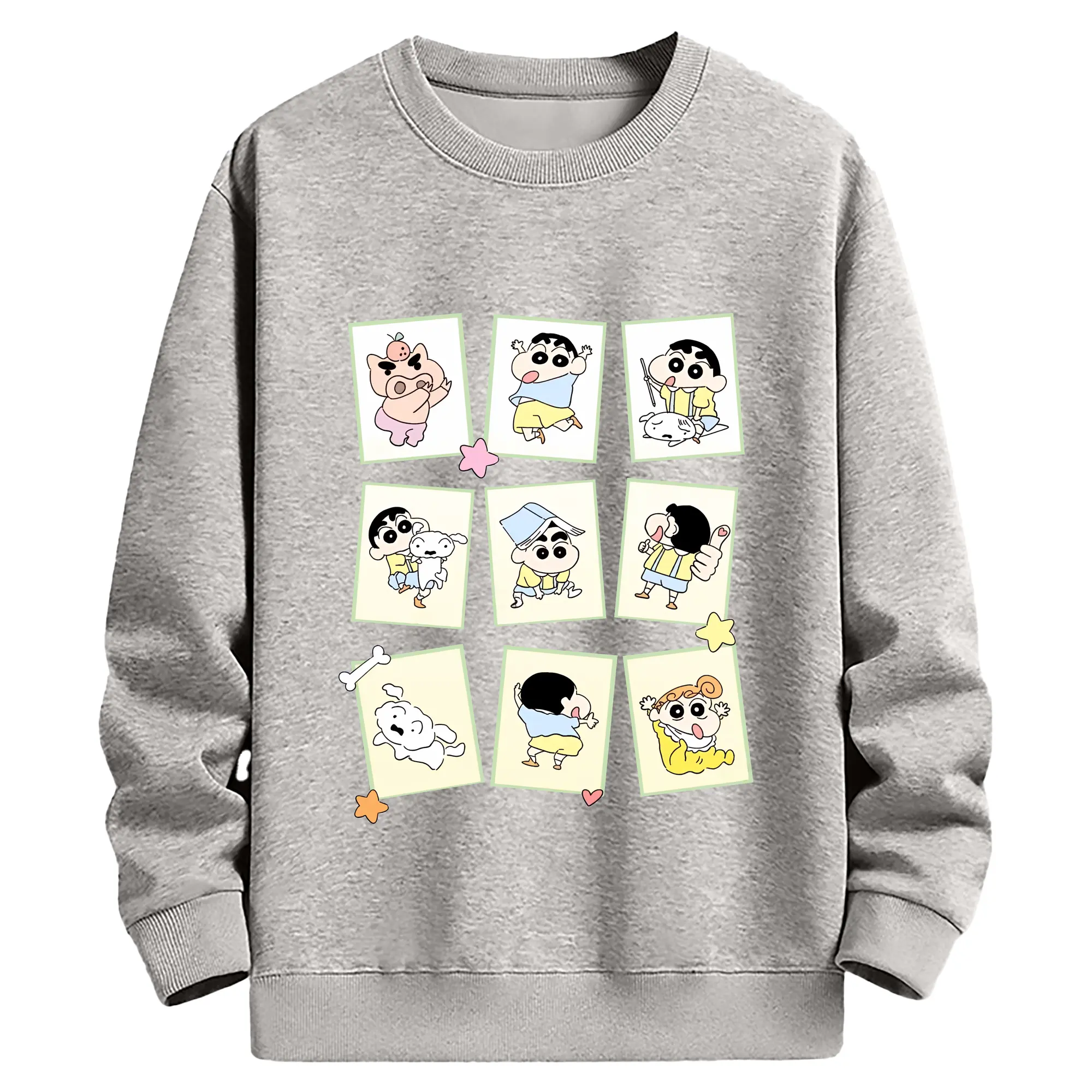 クレヨンしんちゃん グッズ 野原 しんのすけ - 薄手 クルーネック スウェット 裏毛260g · ポリエステル 春秋向け カジュアル 男女兼用 · トレーナー デイリー スポーツ 散歩に最適