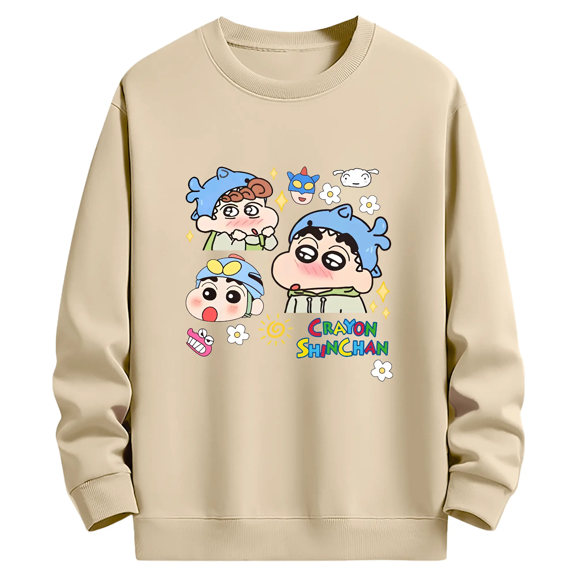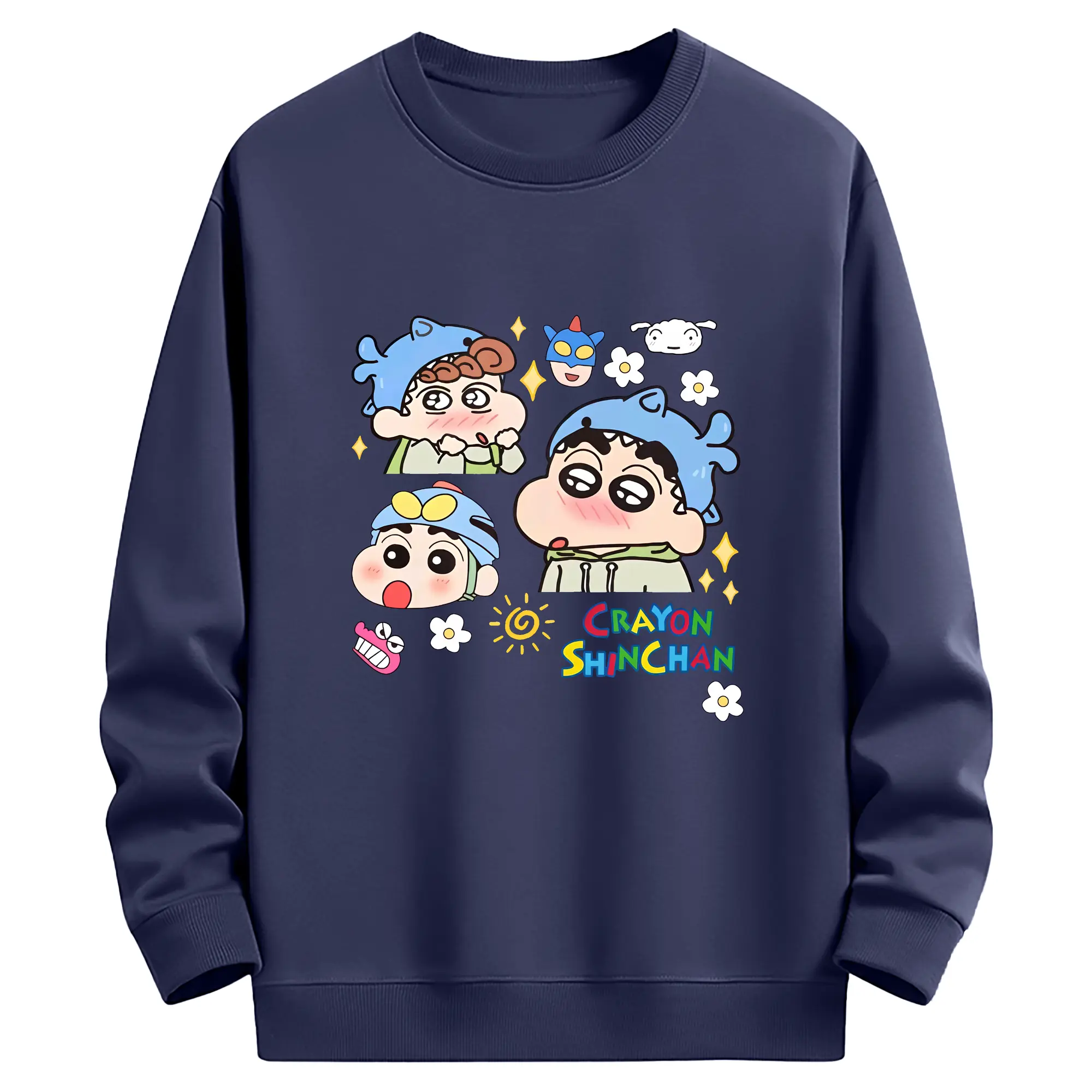 クレヨンしんちゃん グッズ 野原 しんのすけ - 薄手 クルーネック スウェット 裏毛260g · ポリエステル 春秋向け カジュアル 男女兼用 · トレーナー デイリー スポーツ 散歩に最適