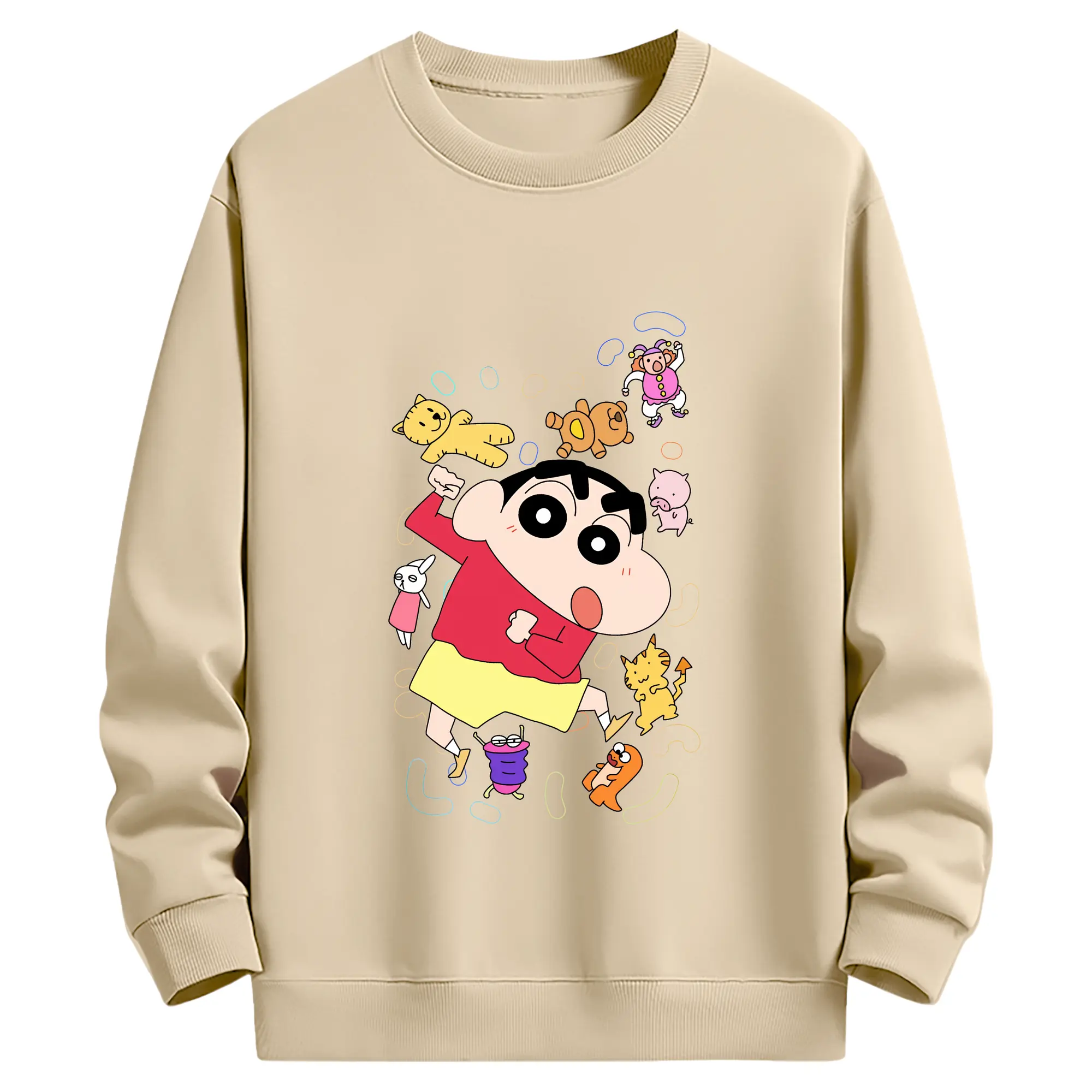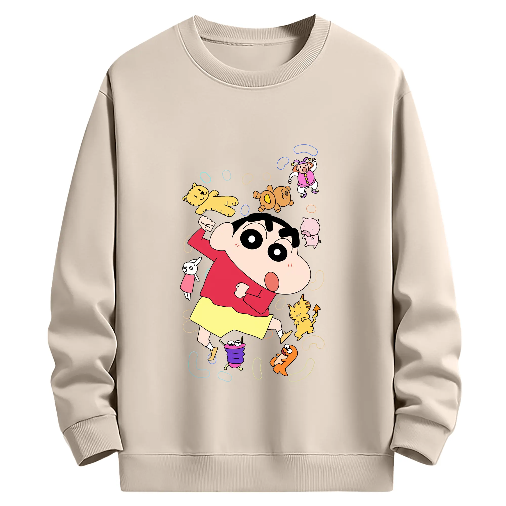 クレヨンしんちゃん グッズ 野原 しんのすけ - 薄手 クルーネック スウェット 裏毛260g · ポリエステル 春秋向け カジュアル 男女兼用 · トレーナー デイリー スポーツ 散歩に最適