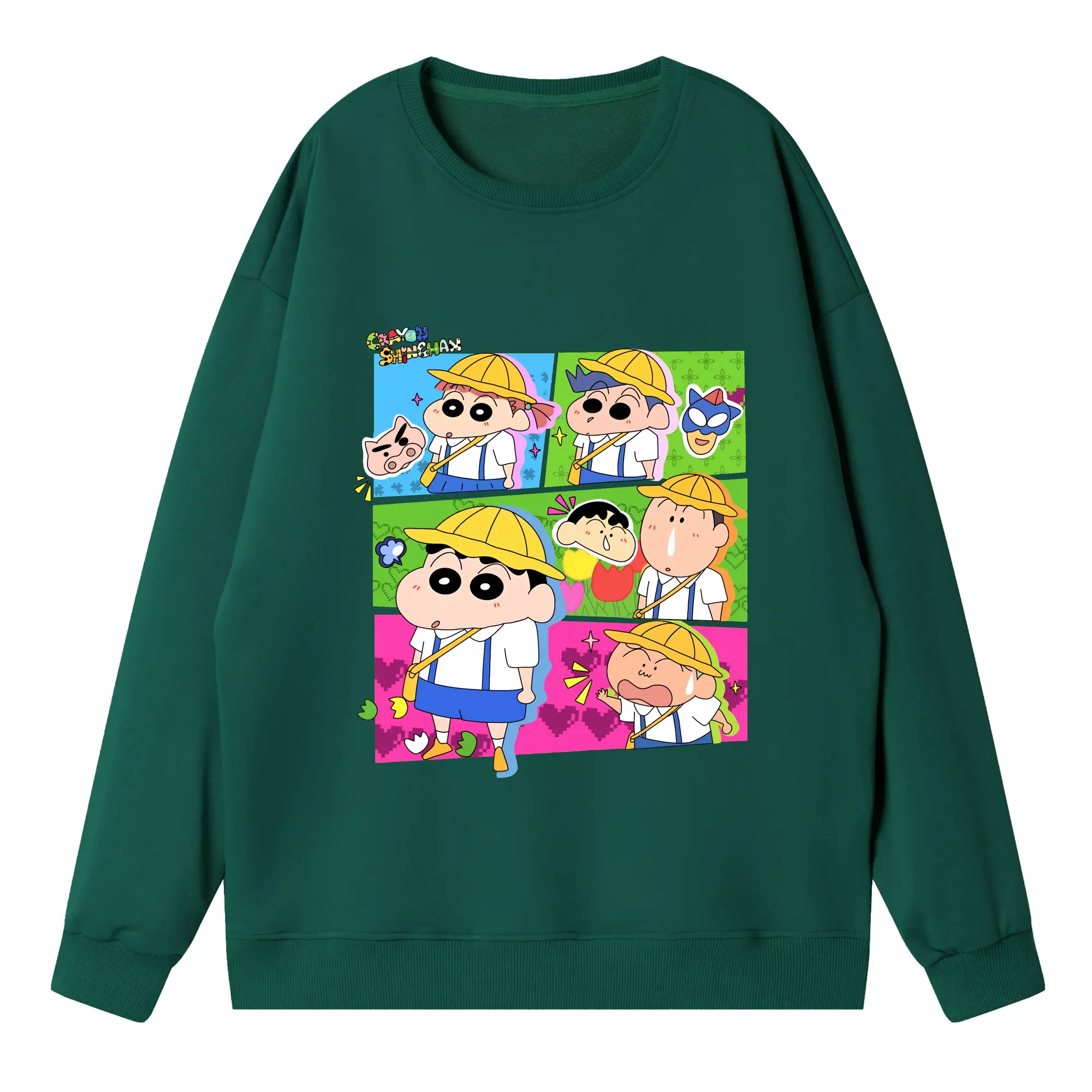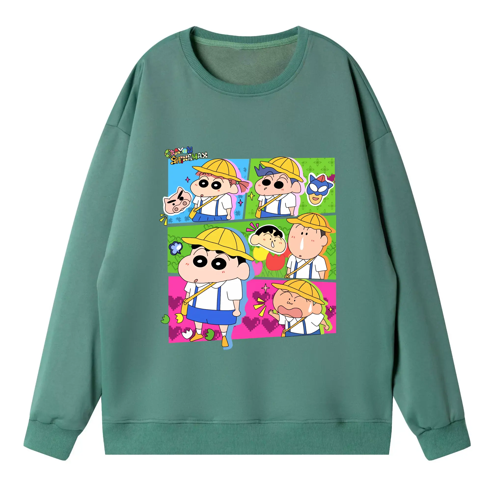 クレヨンしんちゃん グッズ 野原 しんのすけ - 高品質 クルーネック スウェット ・ コットン59% ポリエステル41% ・ ユニセックス 長袖 トレーナー ・ カジュアル デイリー スポーツ 散歩用