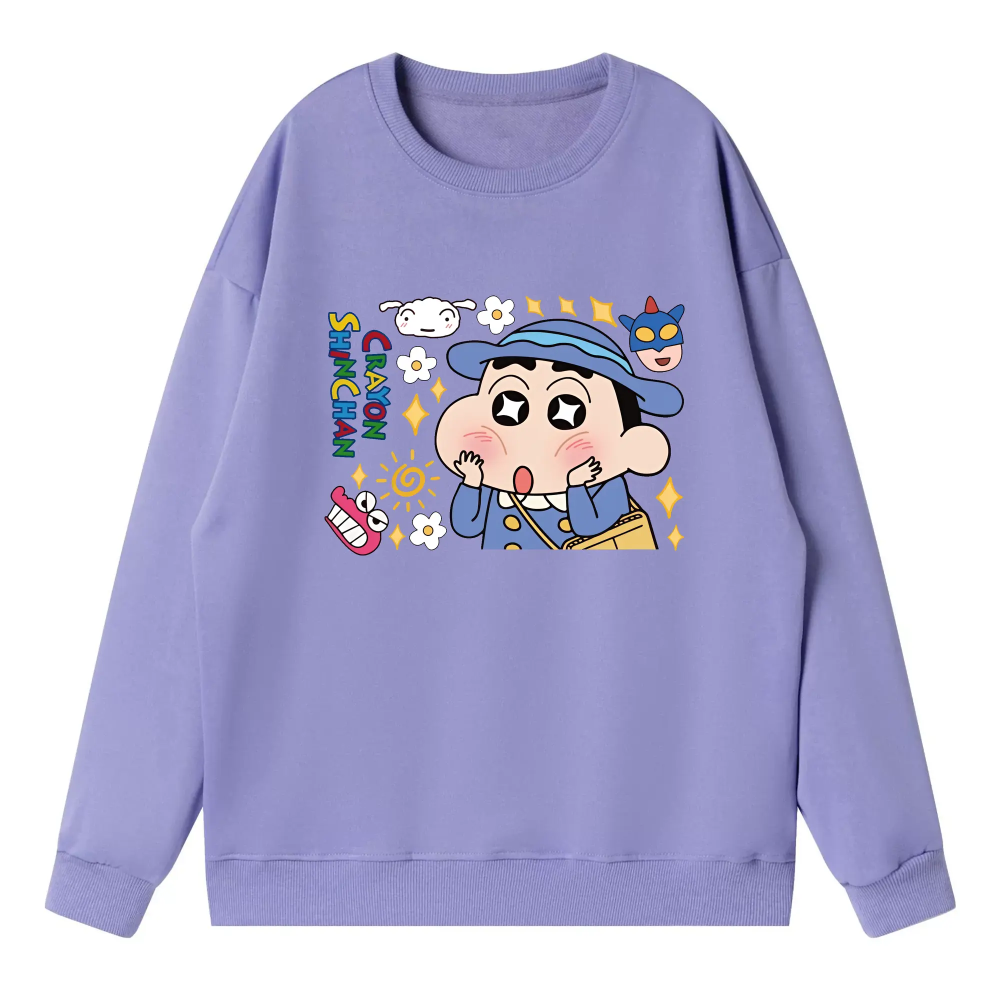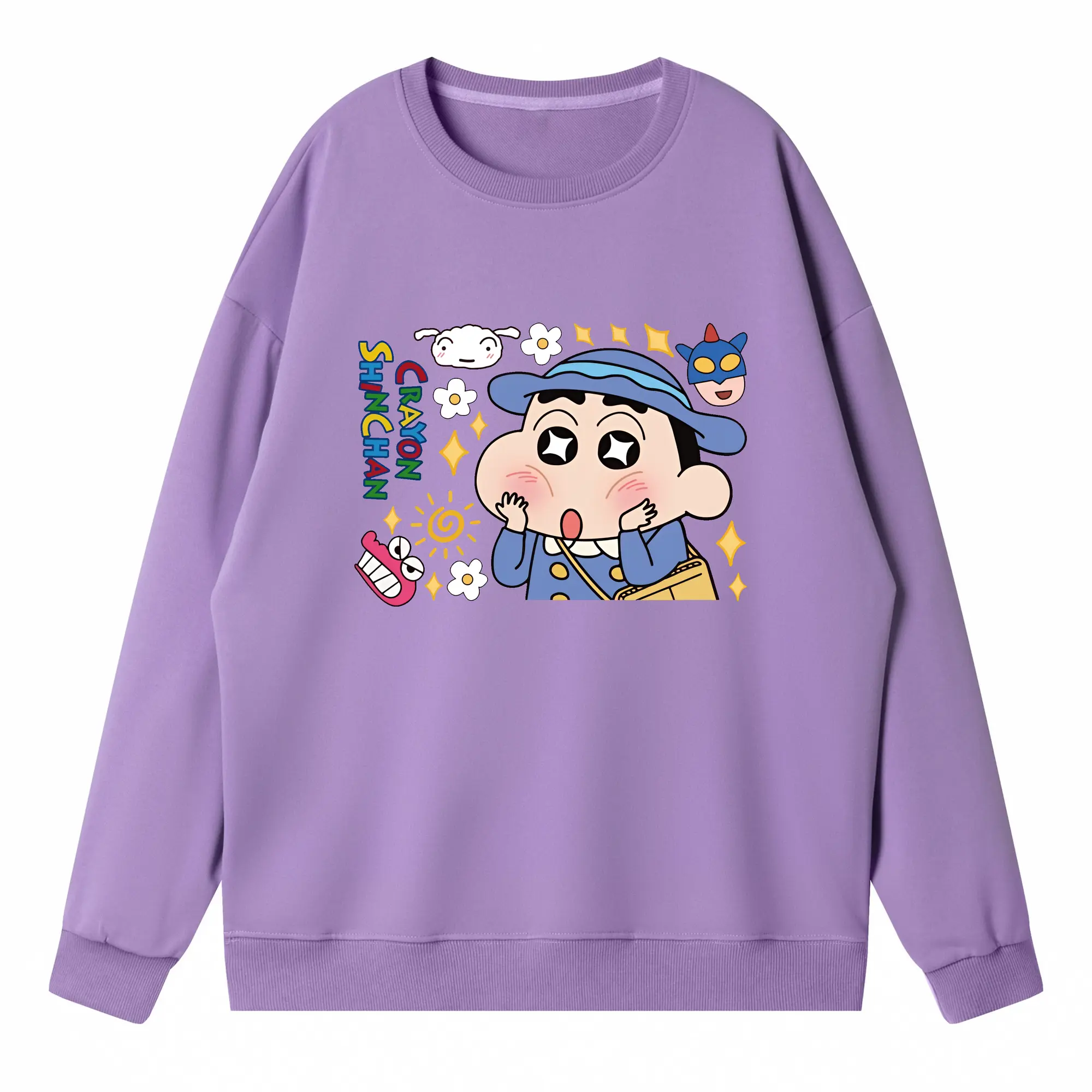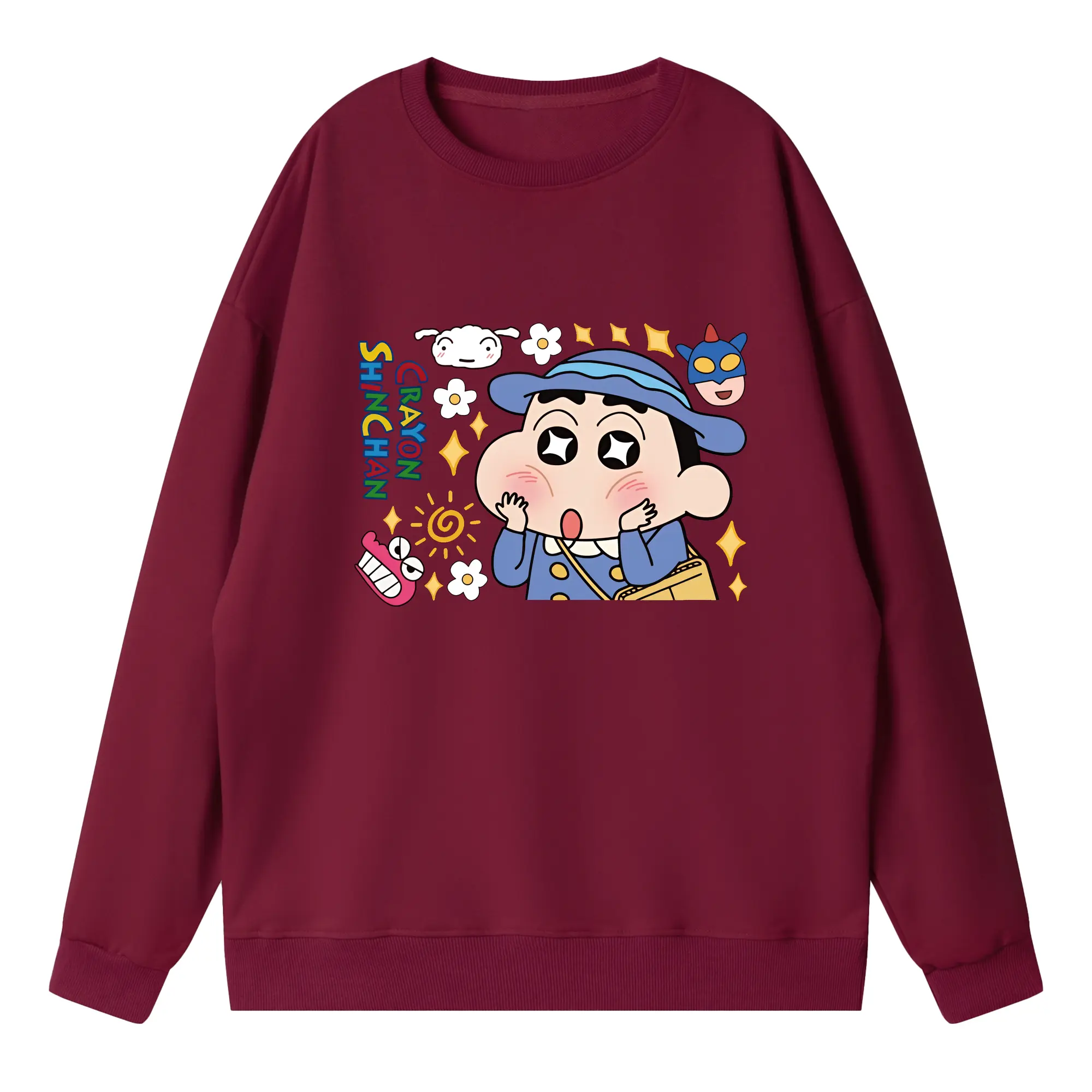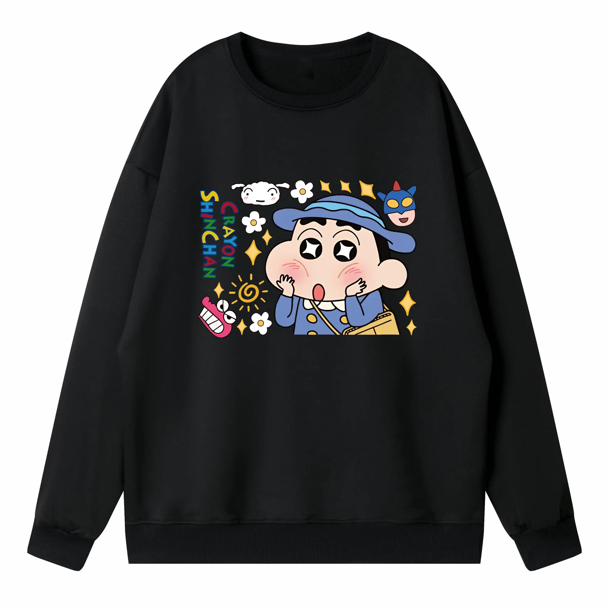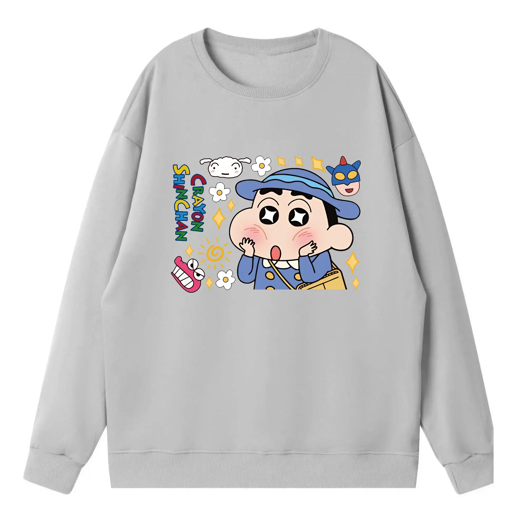 クレヨンしんちゃん グッズ 野原 しんのすけ - 高品質 クルーネック スウェット ・ コットン59% ポリエステル41% ・ ユニセックス 長袖 トレーナー ・ カジュアル デイリー スポーツ 散歩用