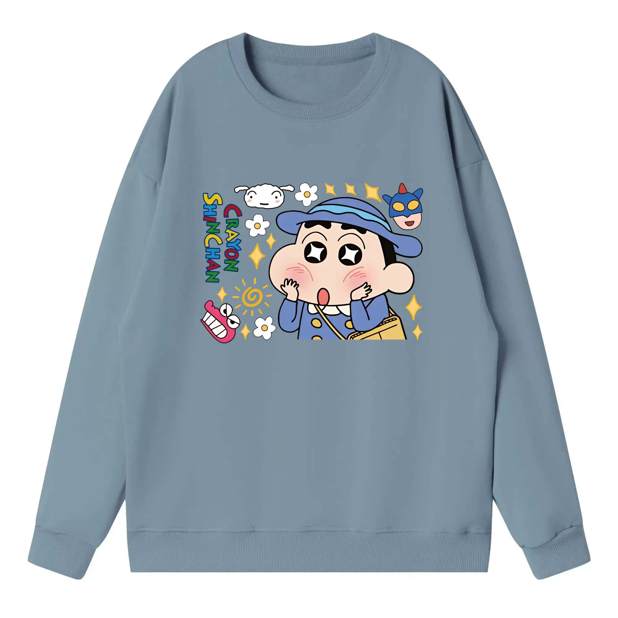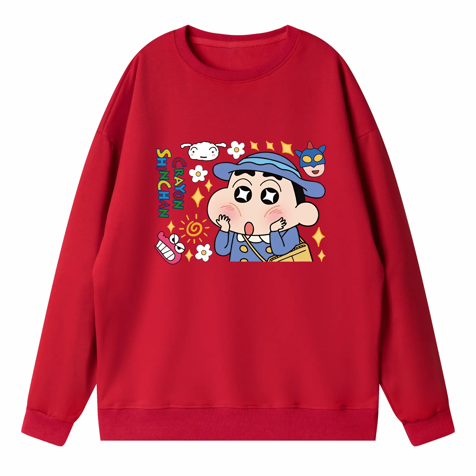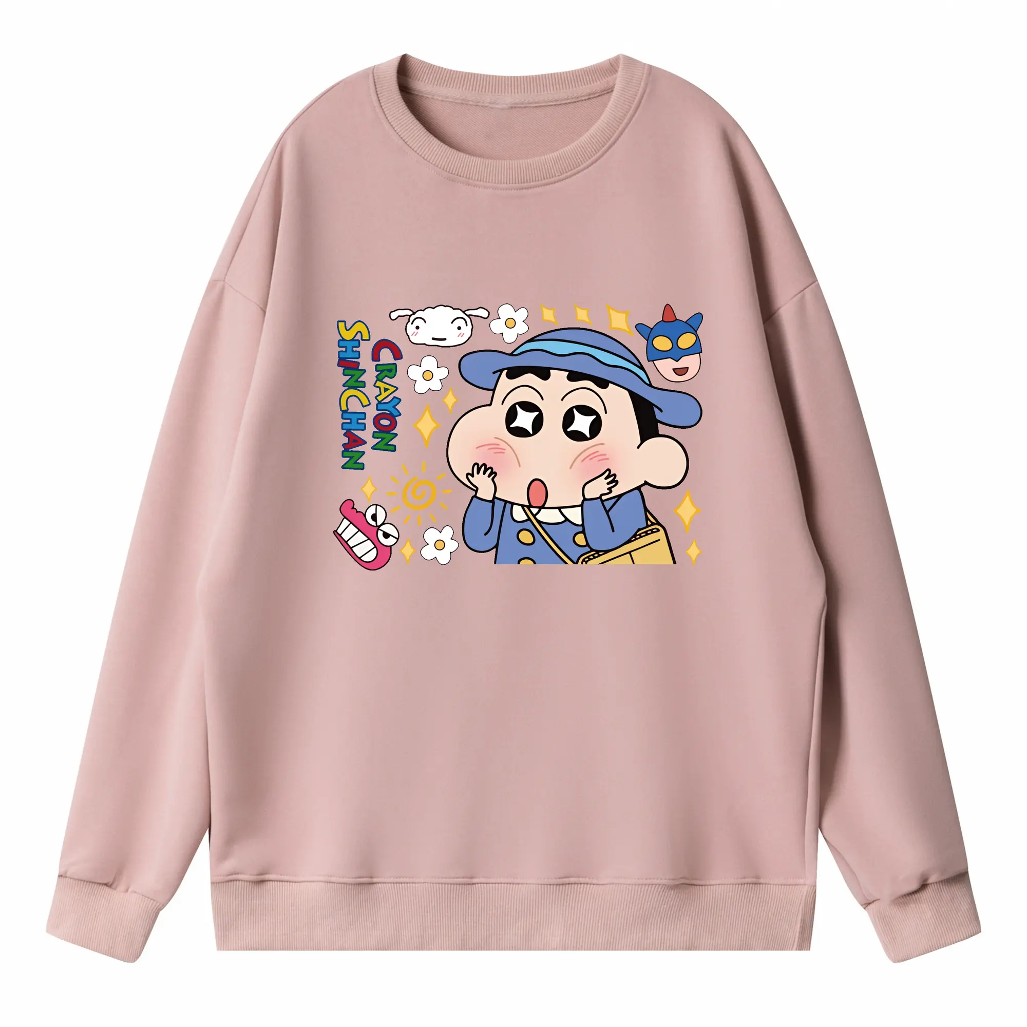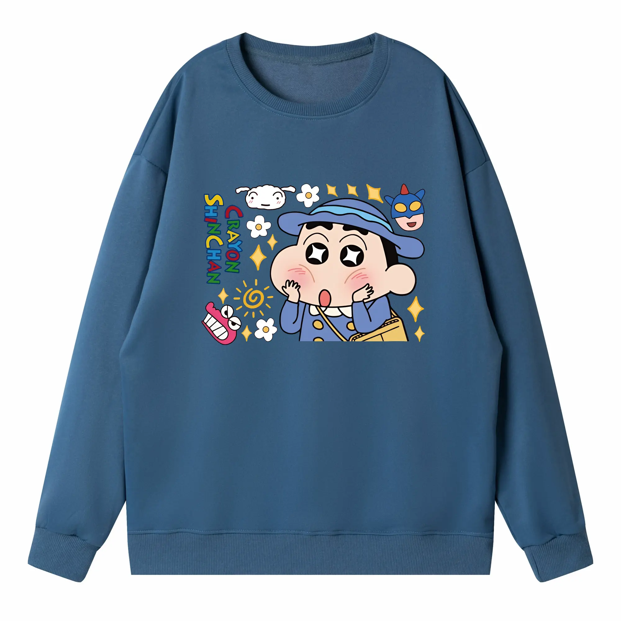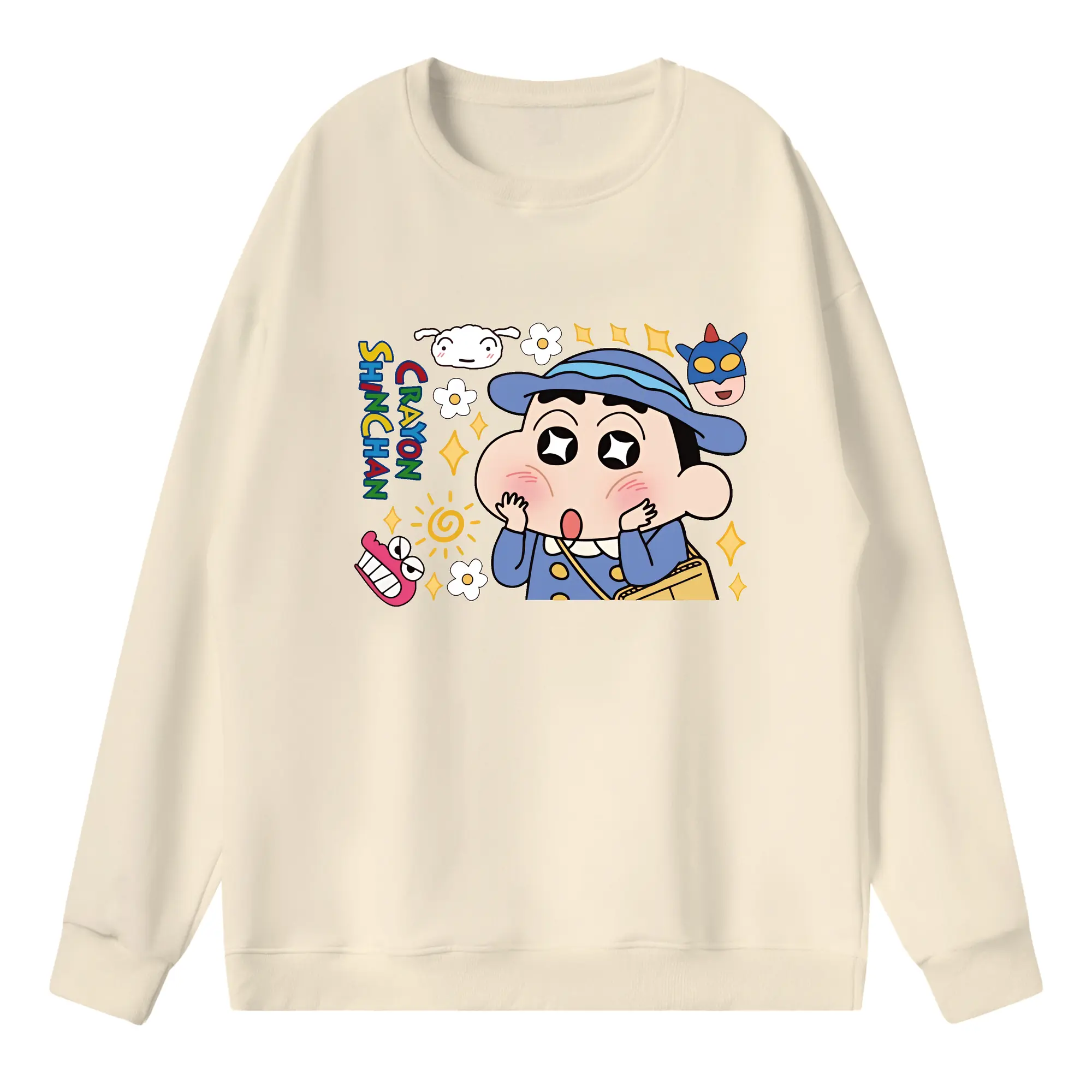 クレヨンしんちゃん グッズ 野原 しんのすけ - 高品質 クルーネック スウェット ・ コットン59% ポリエステル41% ・ ユニセックス 長袖 トレーナー ・ カジュアル デイリー スポーツ 散歩用