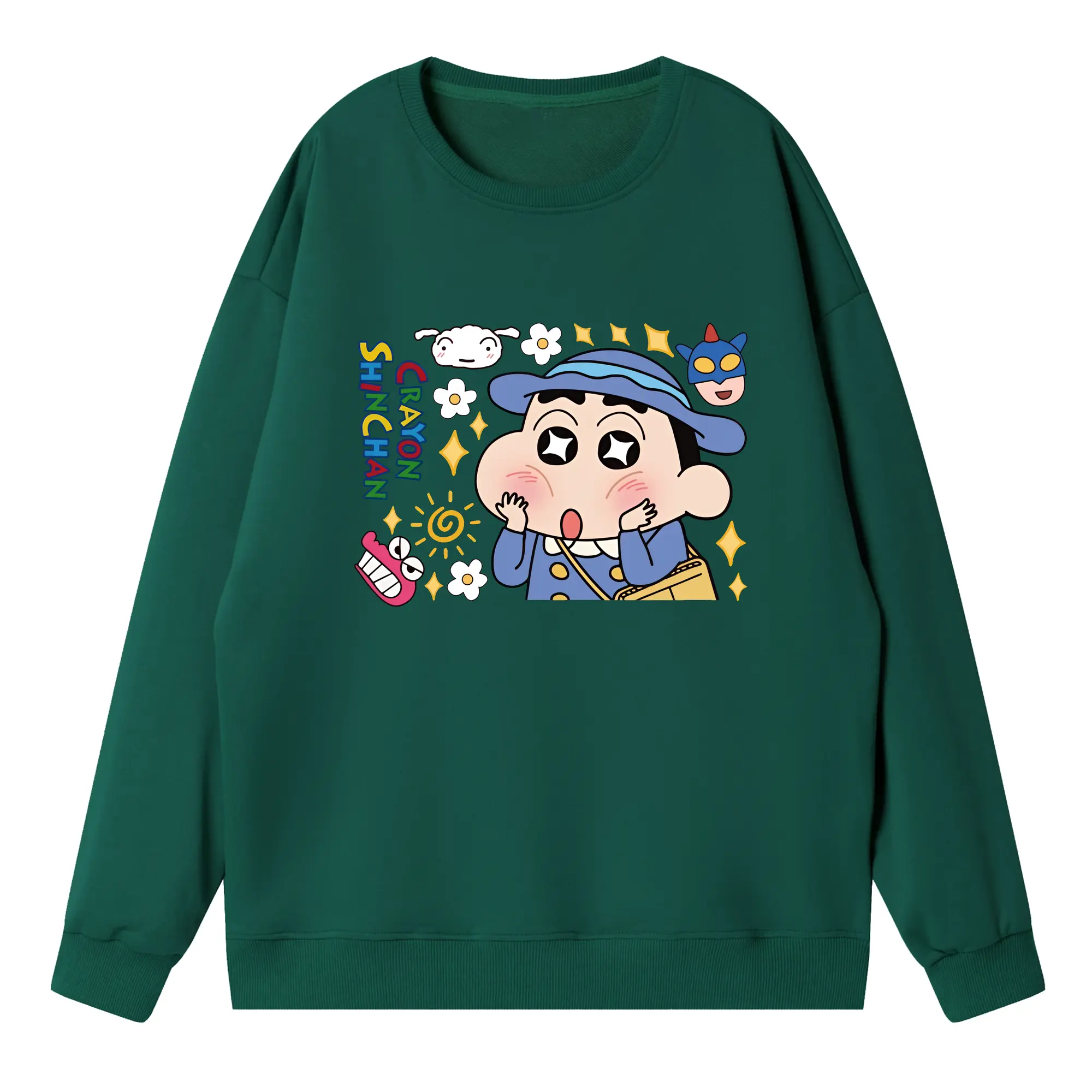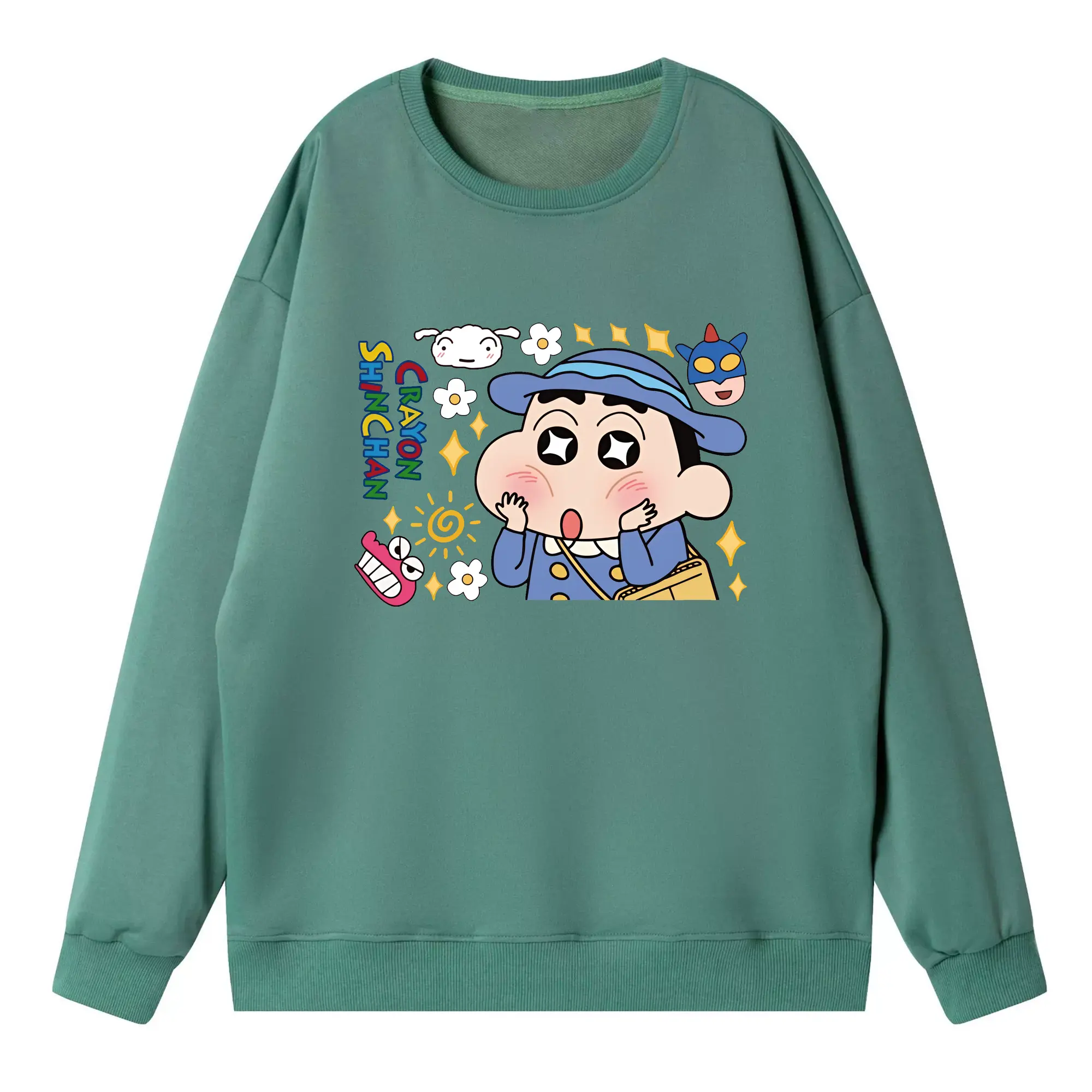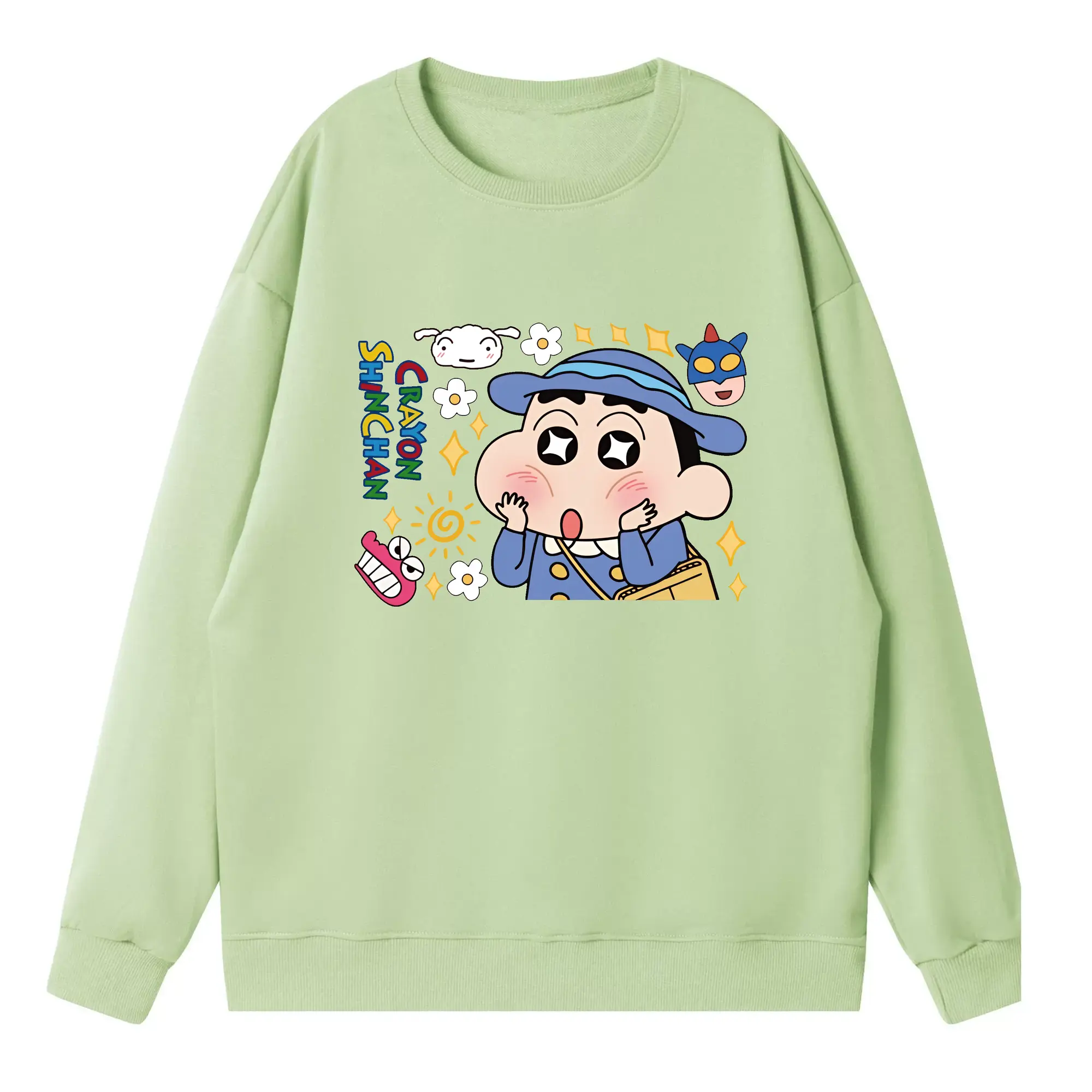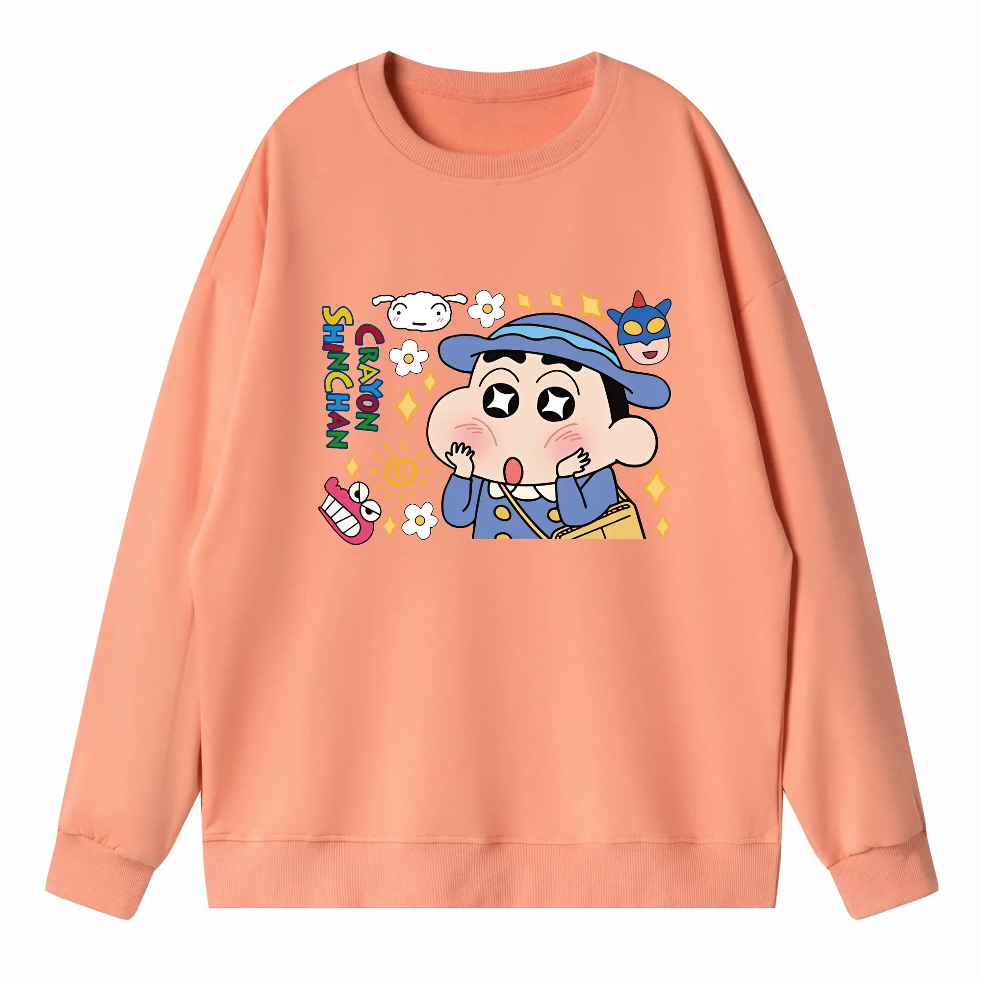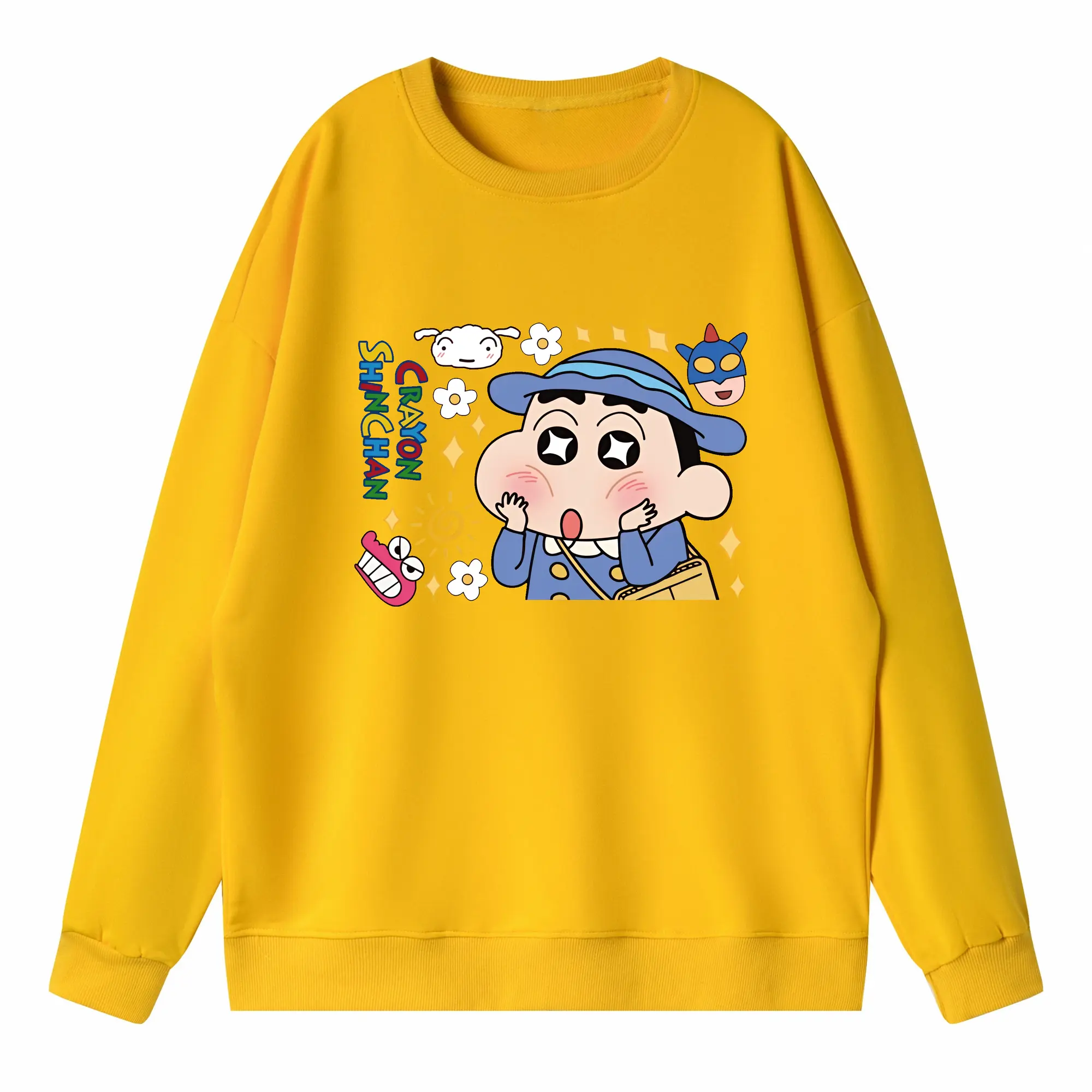 クレヨンしんちゃん グッズ 野原 しんのすけ - 高品質 クルーネック スウェット ・ コットン59% ポリエステル41% ・ ユニセックス 長袖 トレーナー ・ カジュアル デイリー スポーツ 散歩用