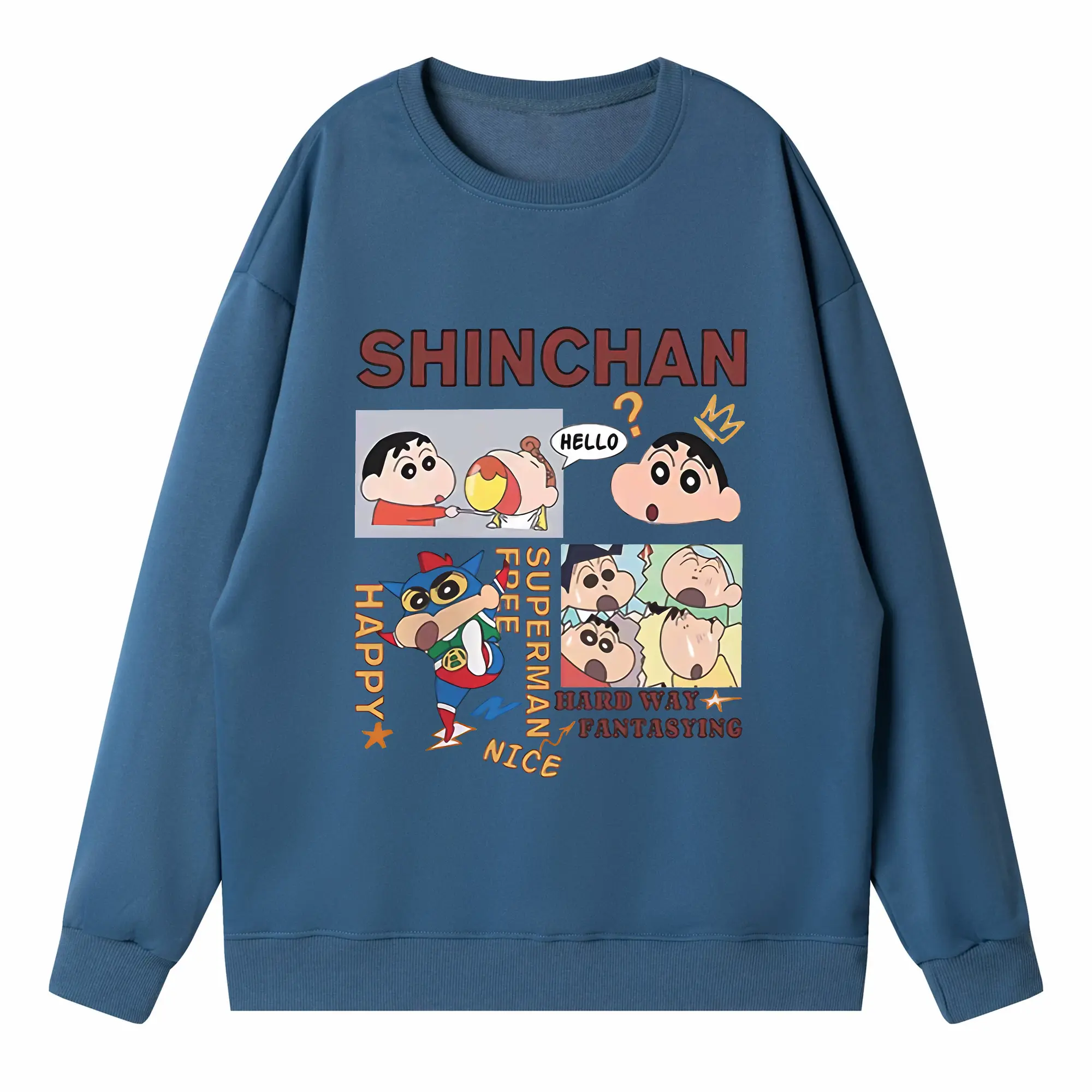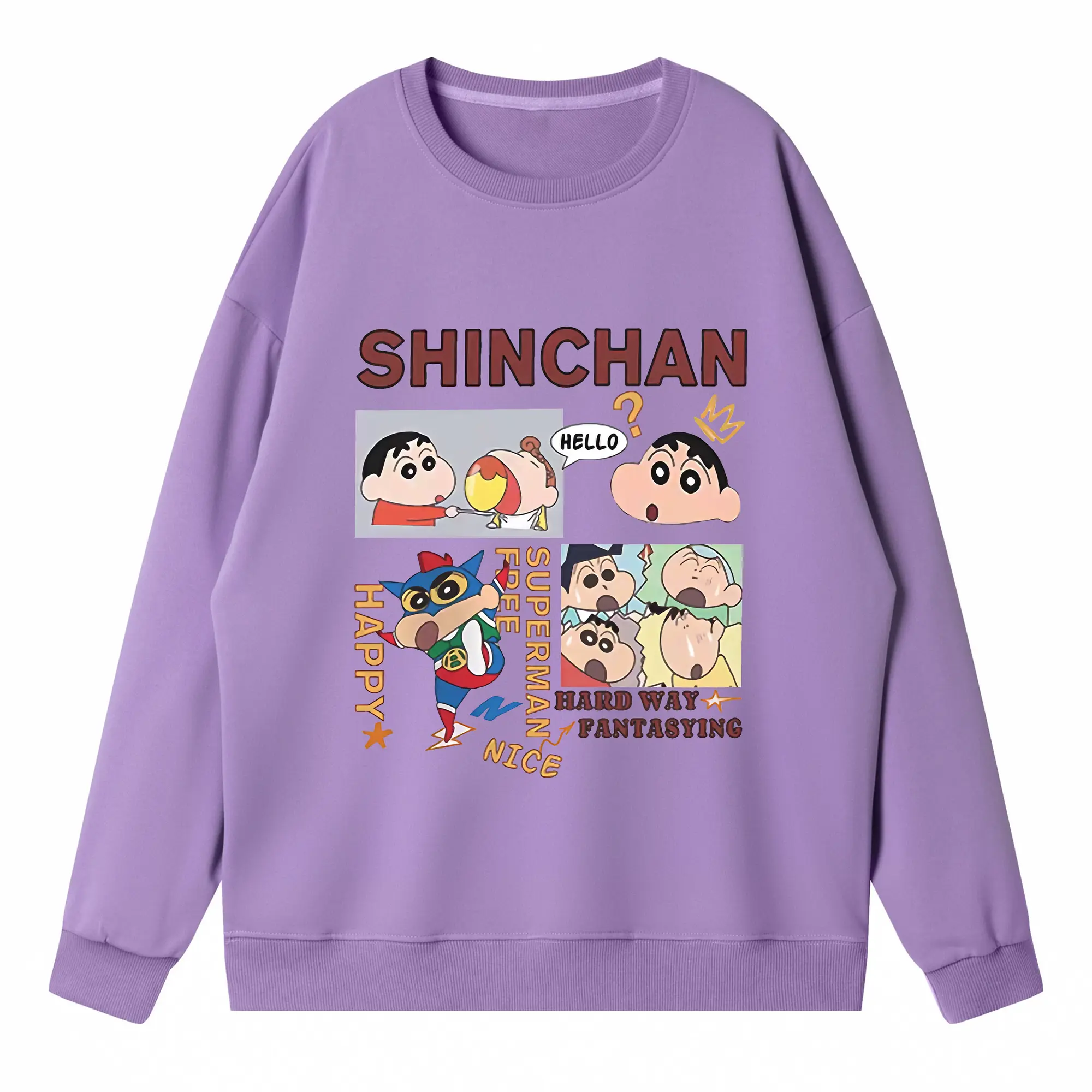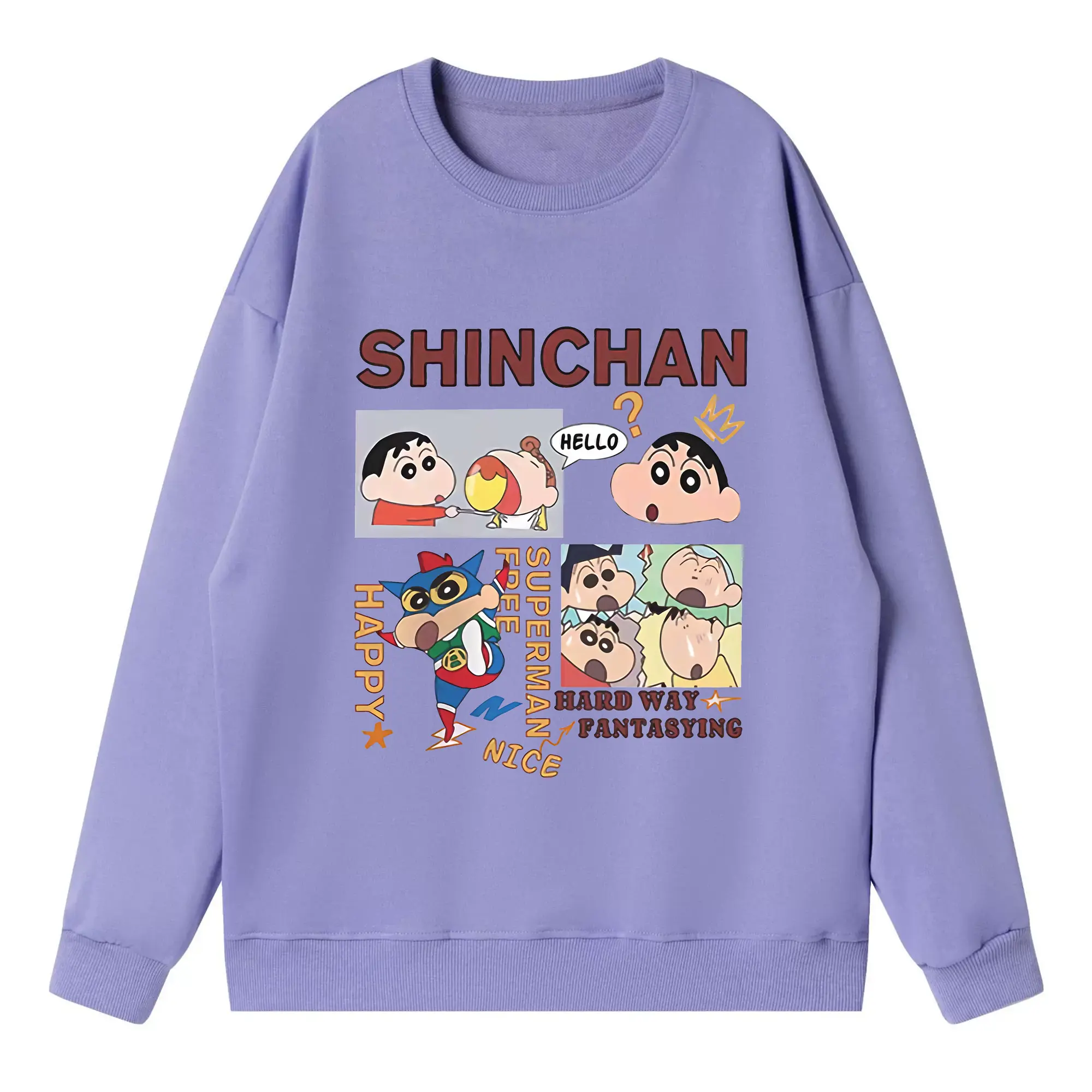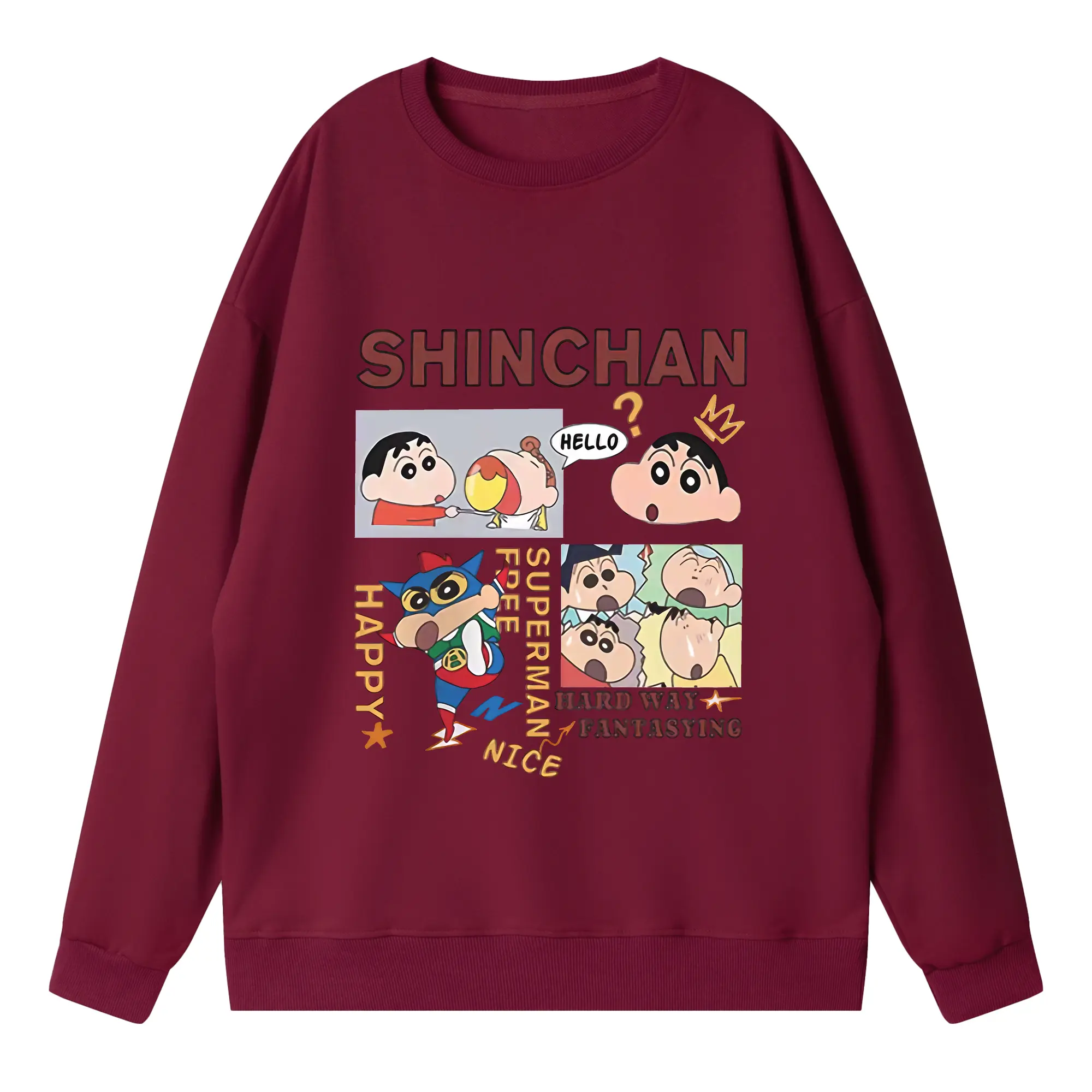 クレヨンしんちゃん グッズ 野原 しんのすけ - 高品質 クルーネック スウェット ・ コットン59% ポリエステル41% ・ ユニセックス 長袖 トレーナー ・ カジュアル デイリー スポーツ 散歩用