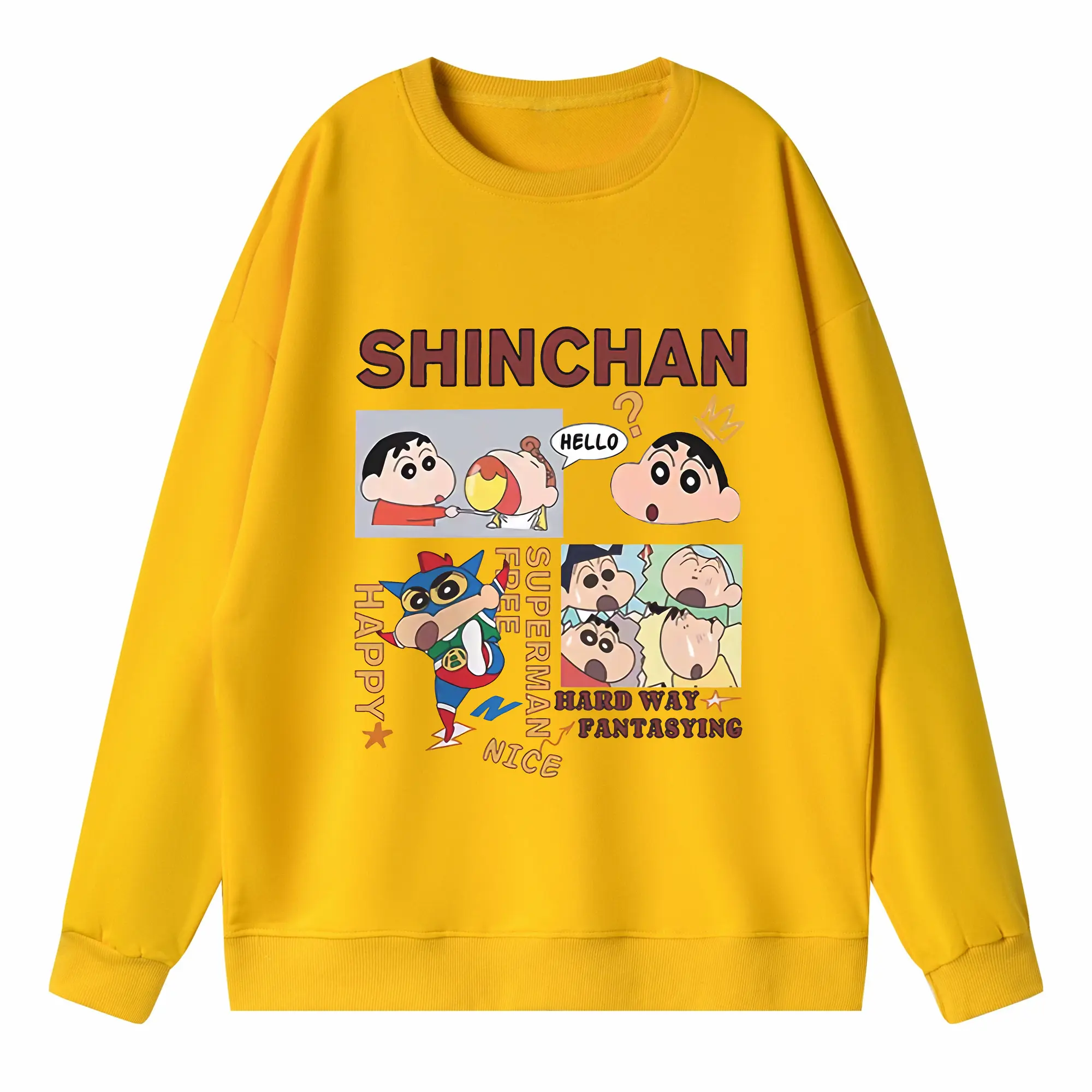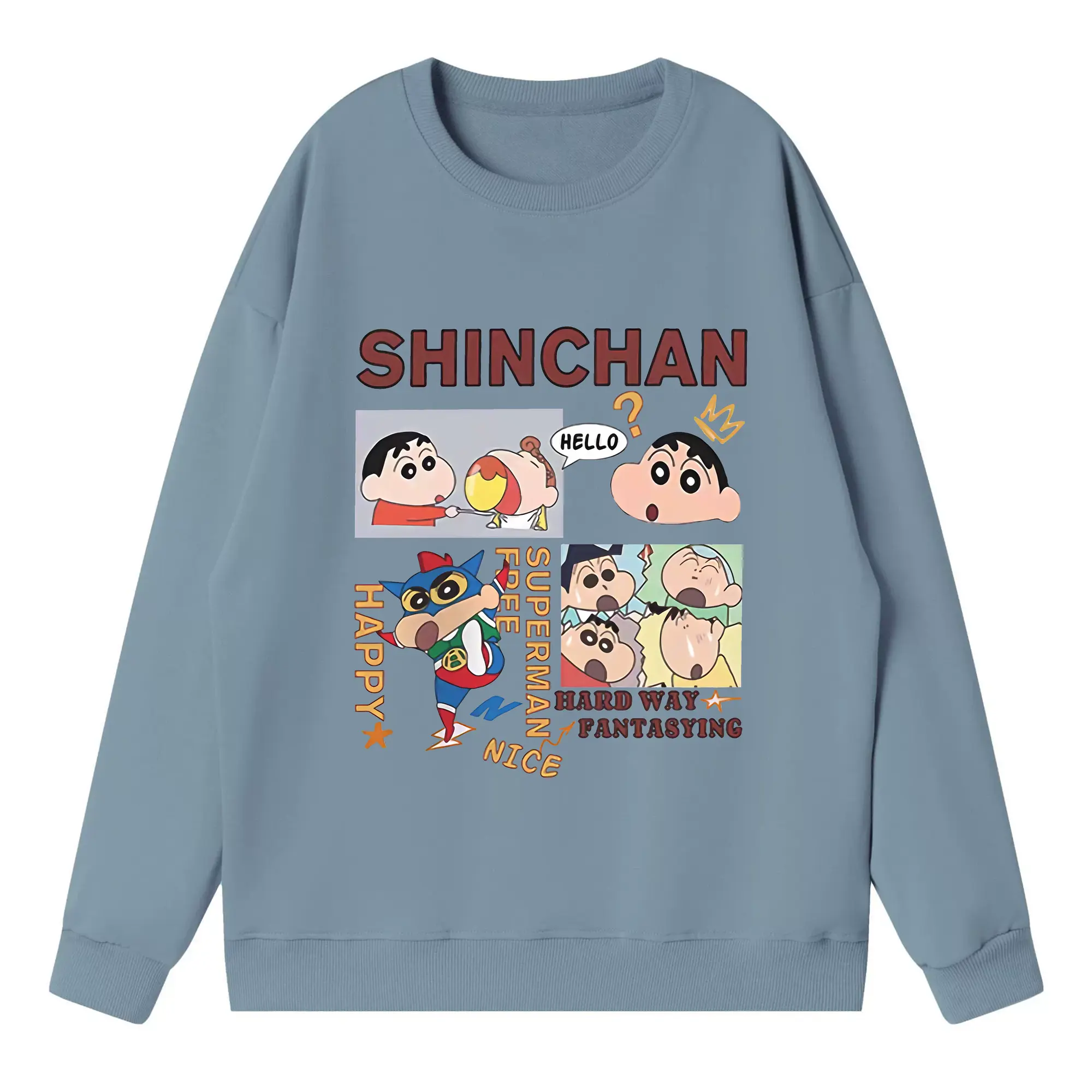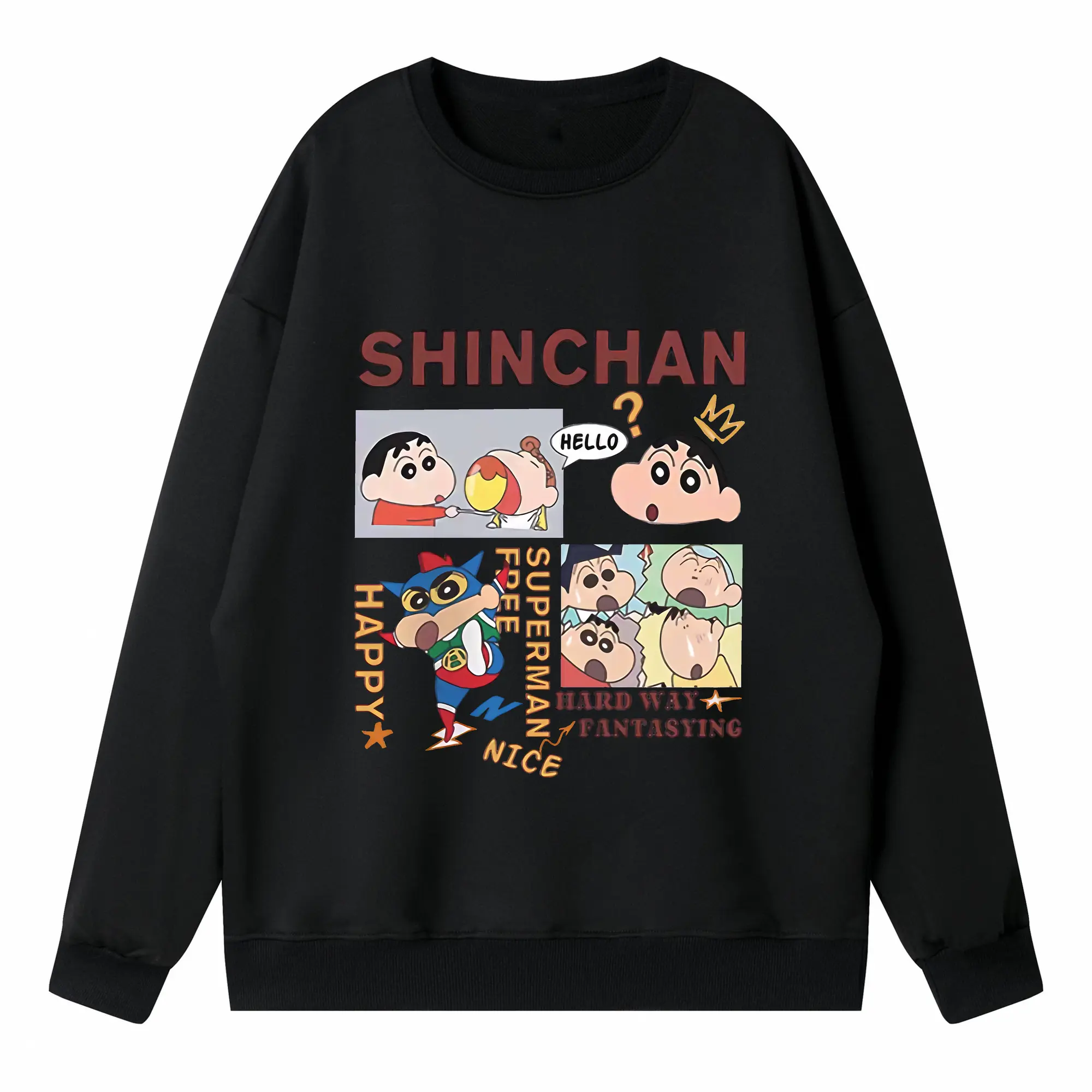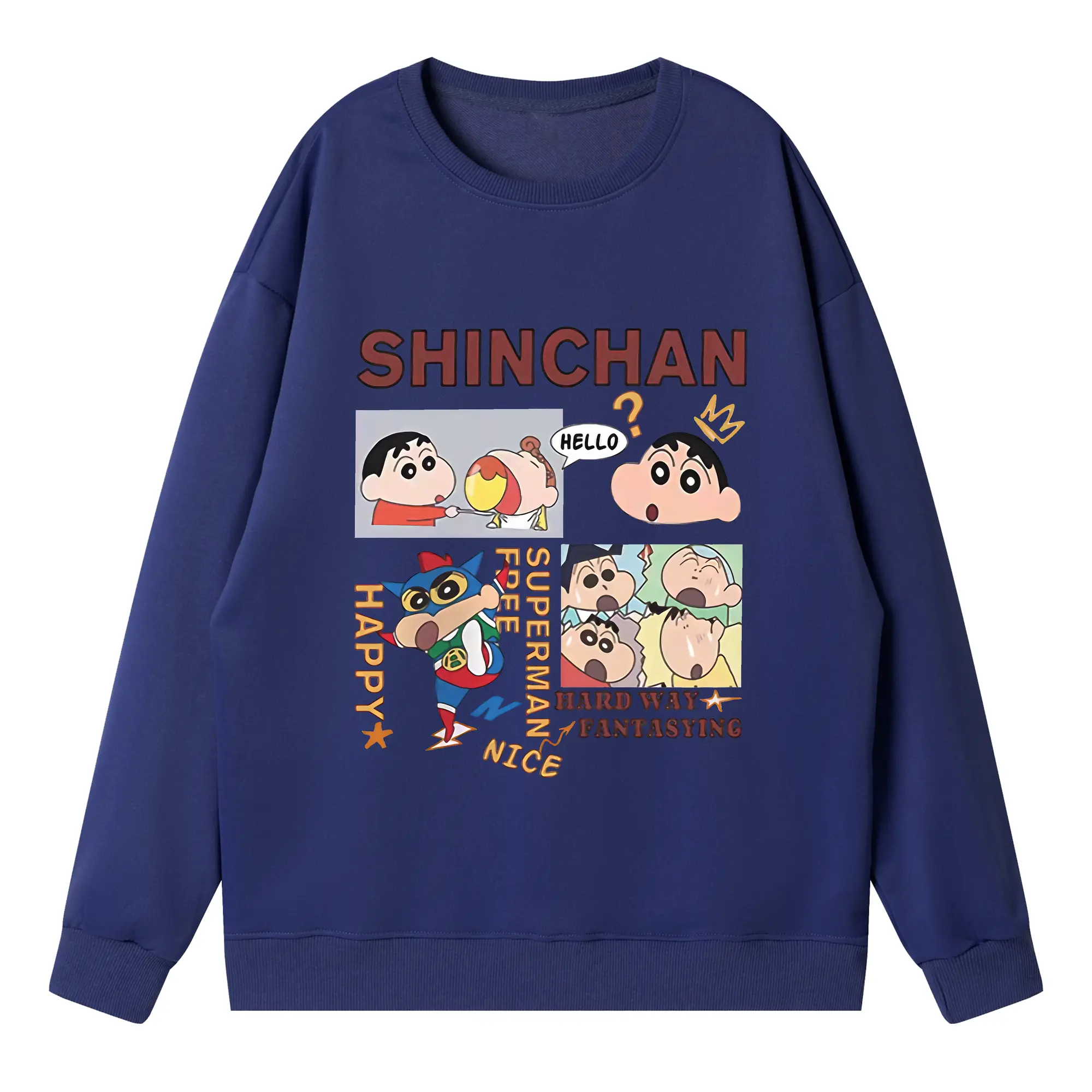 クレヨンしんちゃん グッズ 野原 しんのすけ - 高品質 クルーネック スウェット ・ コットン59% ポリエステル41% ・ ユニセックス 長袖 トレーナー ・ カジュアル デイリー スポーツ 散歩用