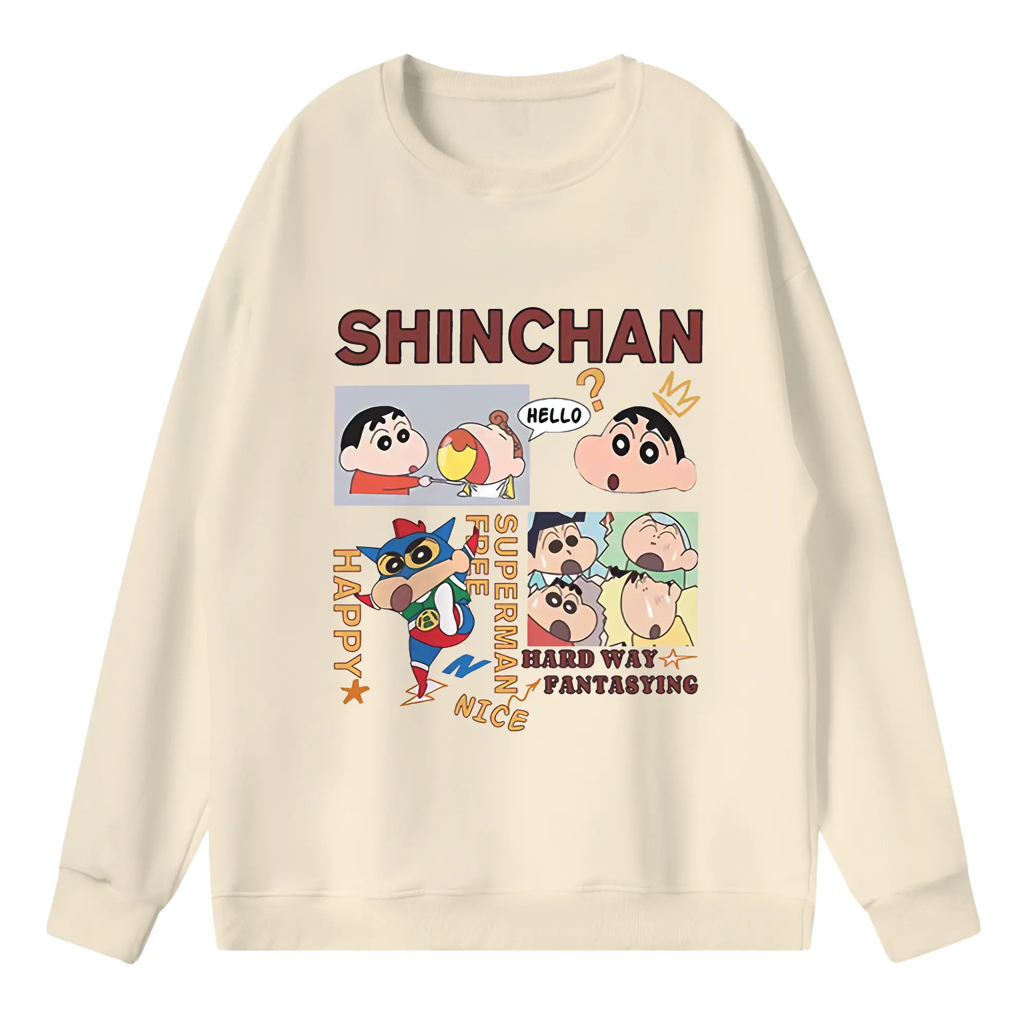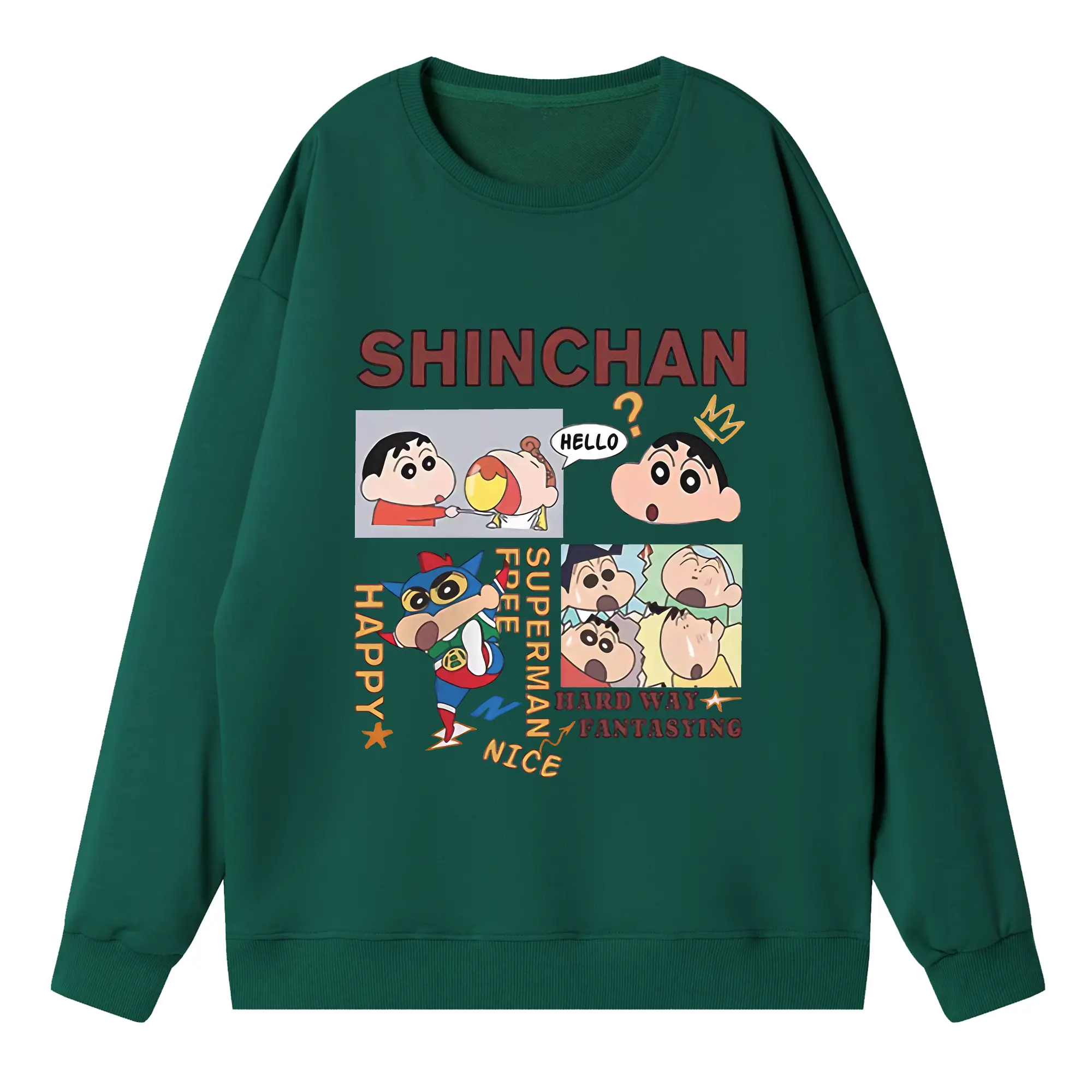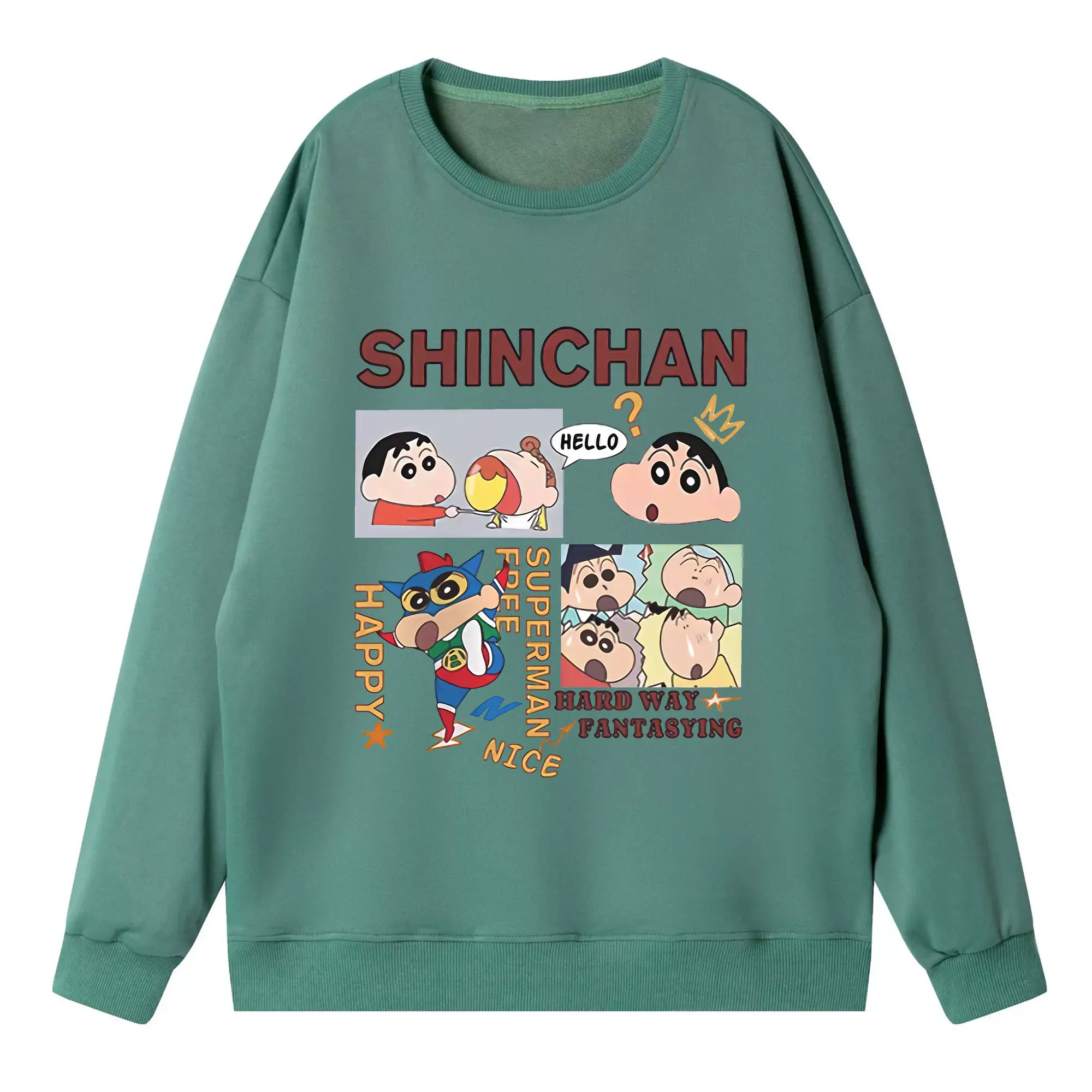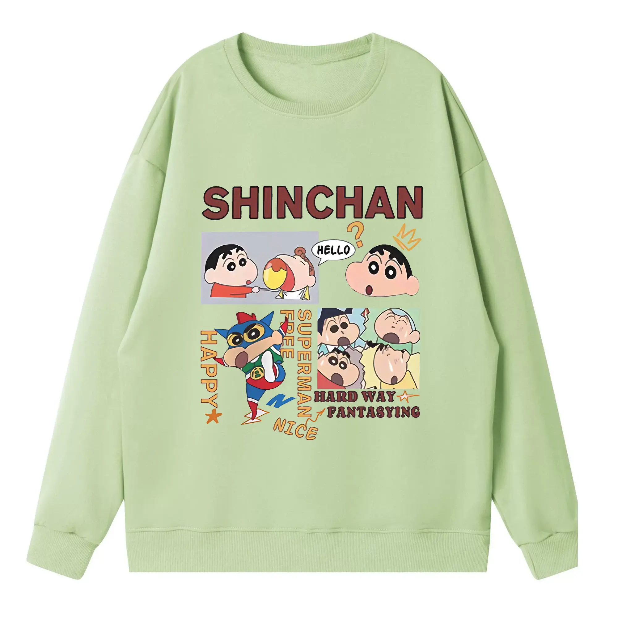 クレヨンしんちゃん グッズ 野原 しんのすけ - 高品質 クルーネック スウェット ・ コットン59% ポリエステル41% ・ ユニセックス 長袖 トレーナー ・ カジュアル デイリー スポーツ 散歩用