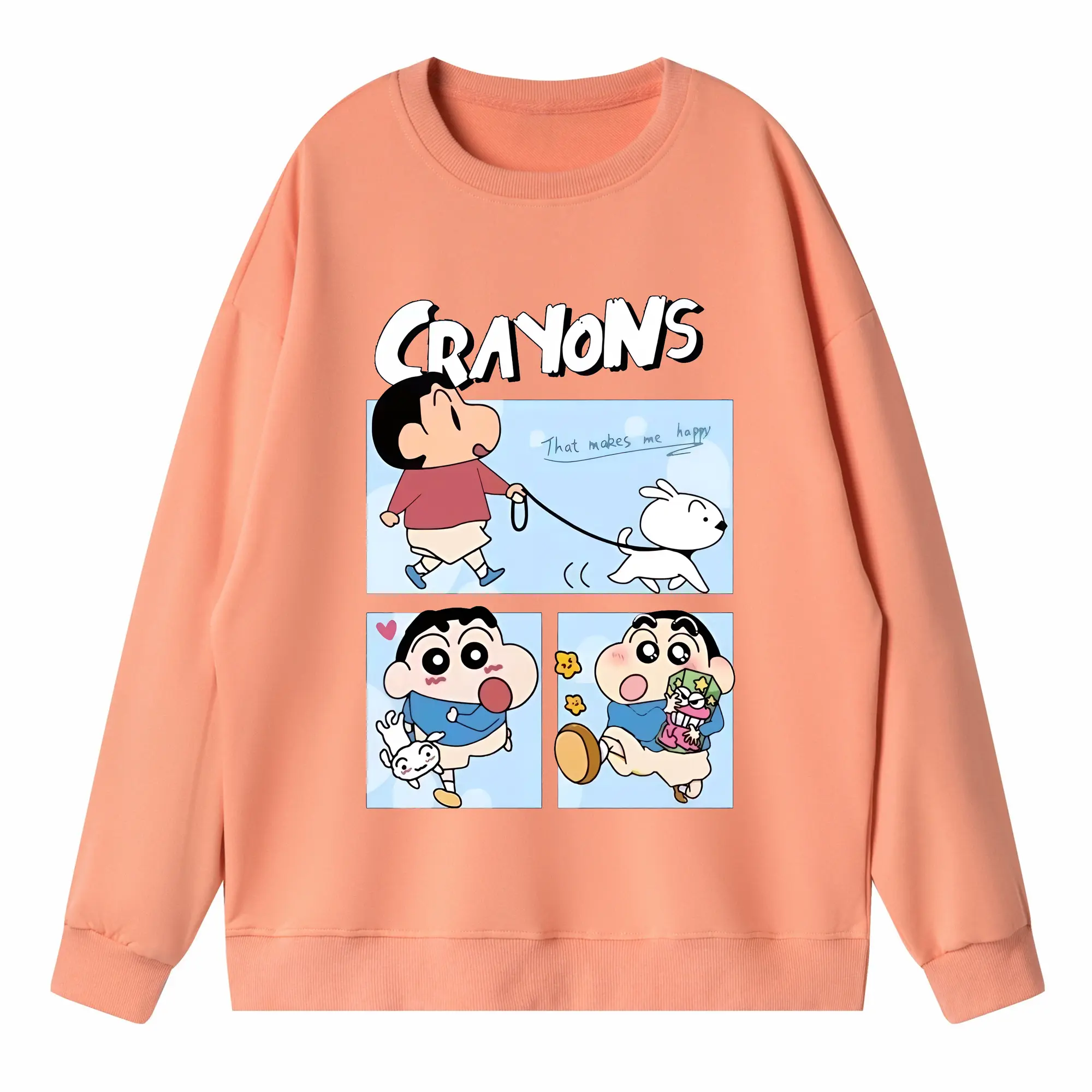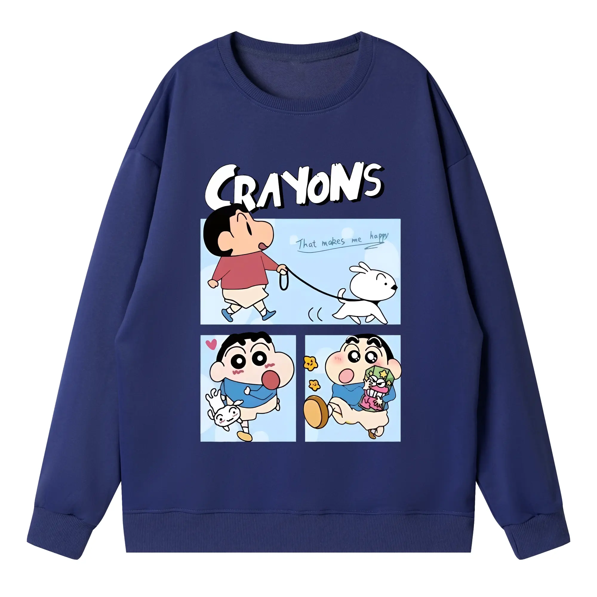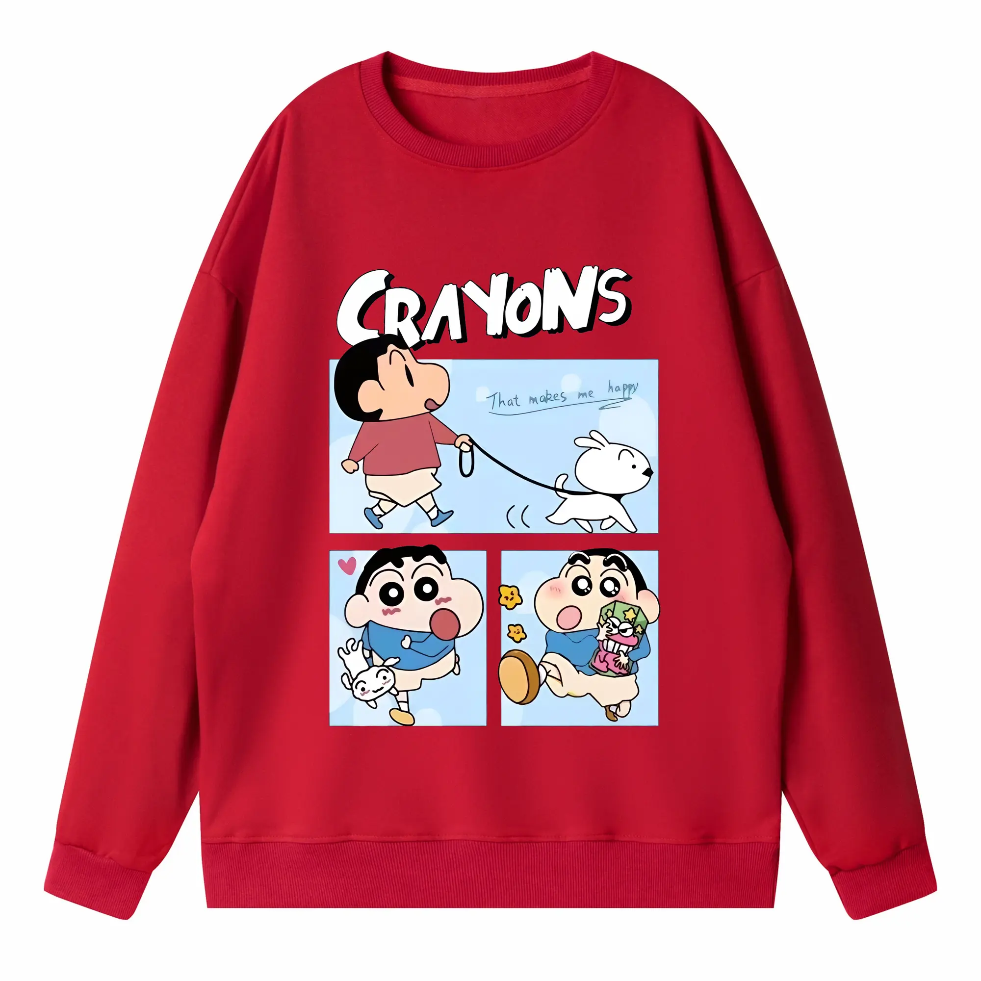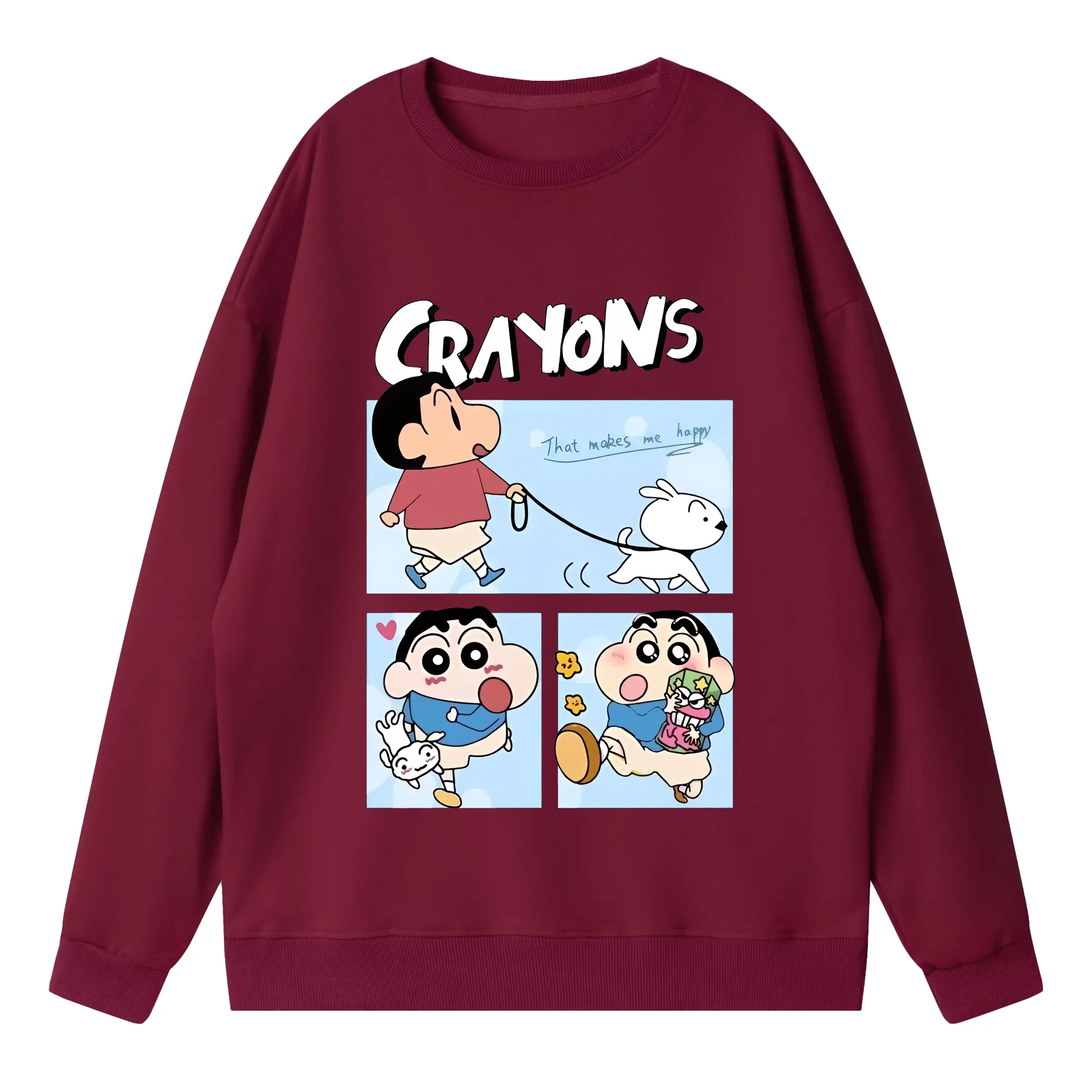 クレヨンしんちゃん グッズ 野原 しんのすけ - 高品質 クルーネック スウェット ・ コットン59% ポリエステル41% ・ ユニセックス 長袖 トレーナー ・ カジュアル デイリー スポーツ 散歩用