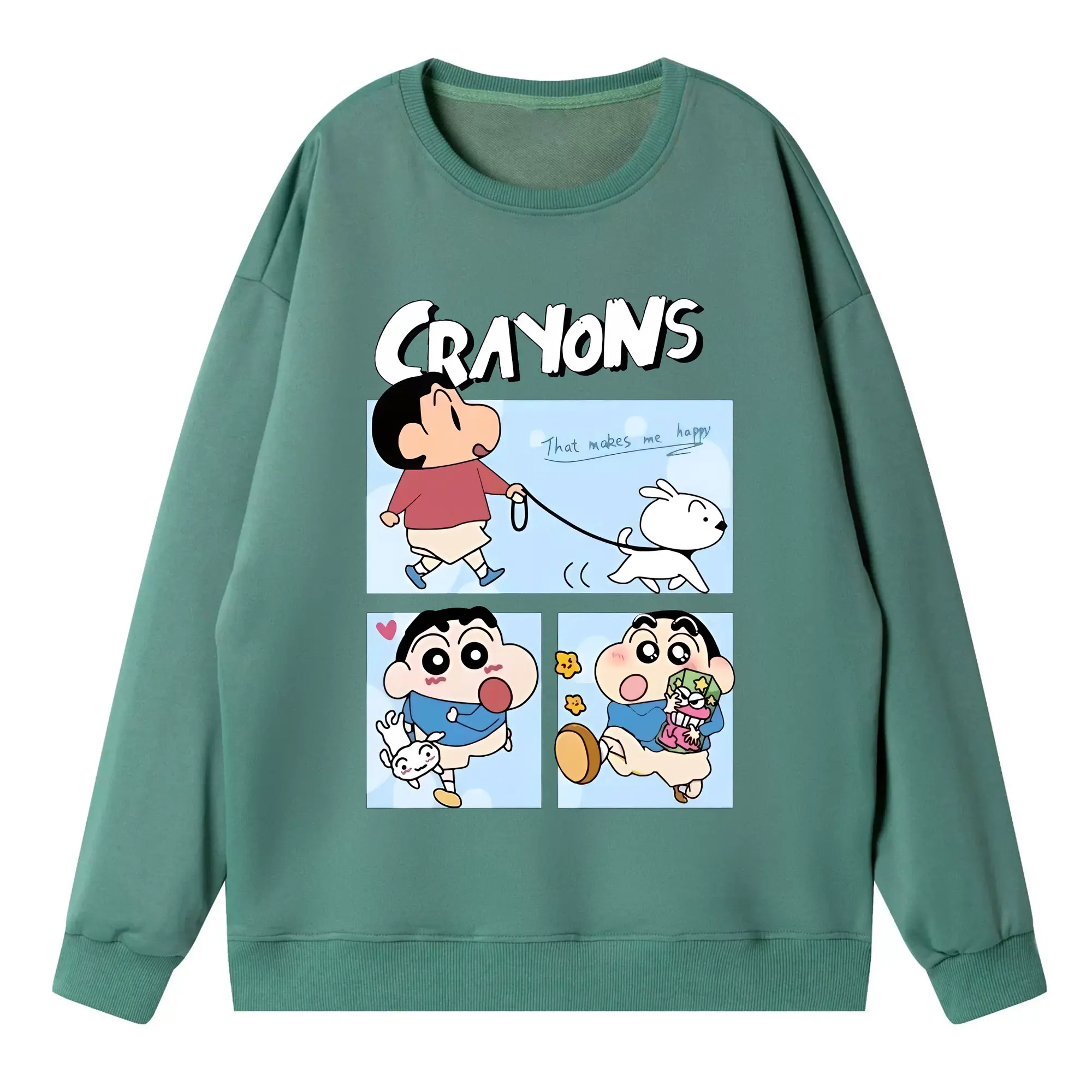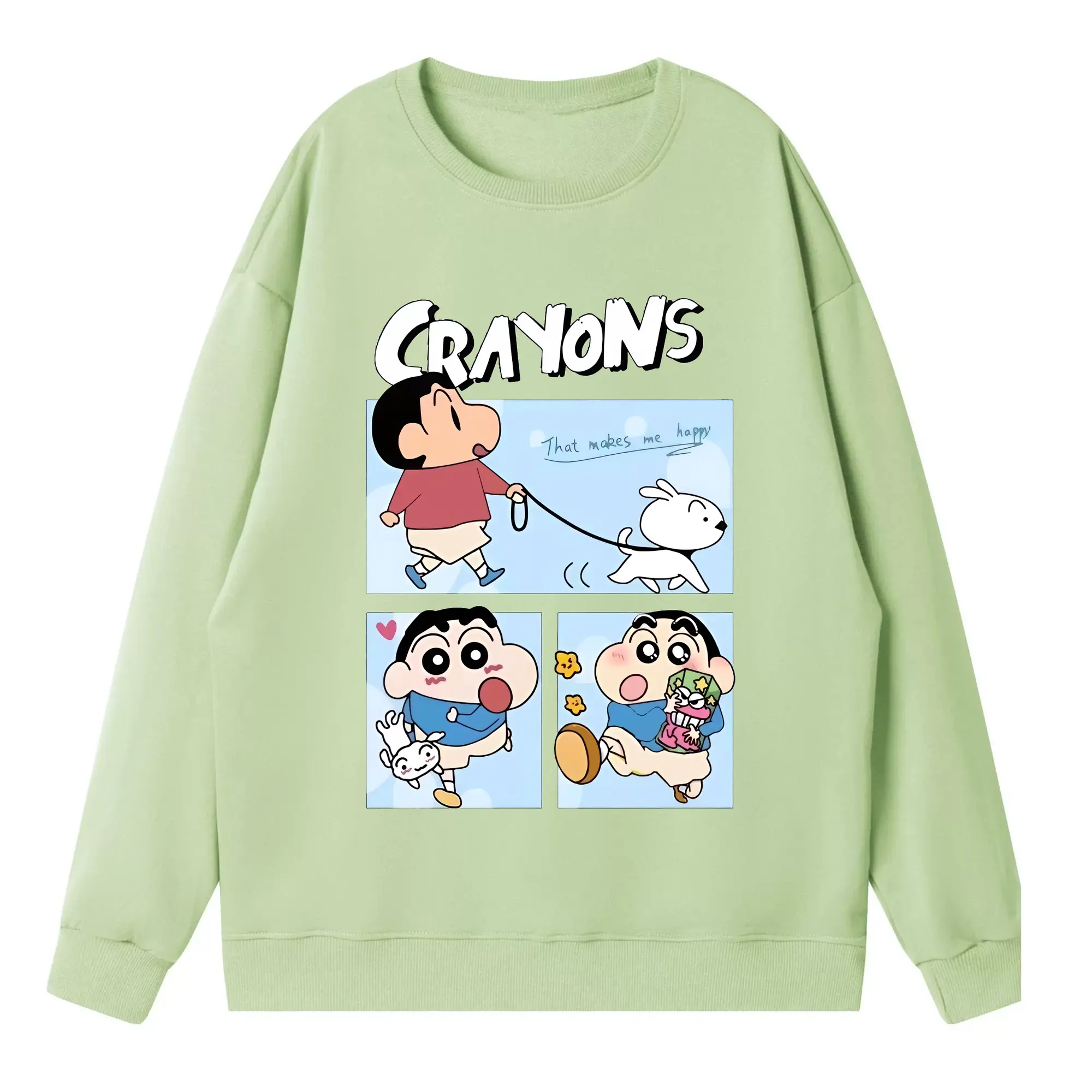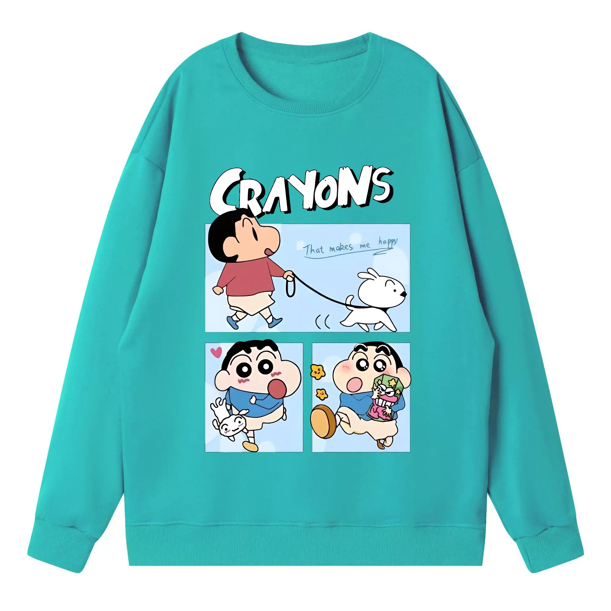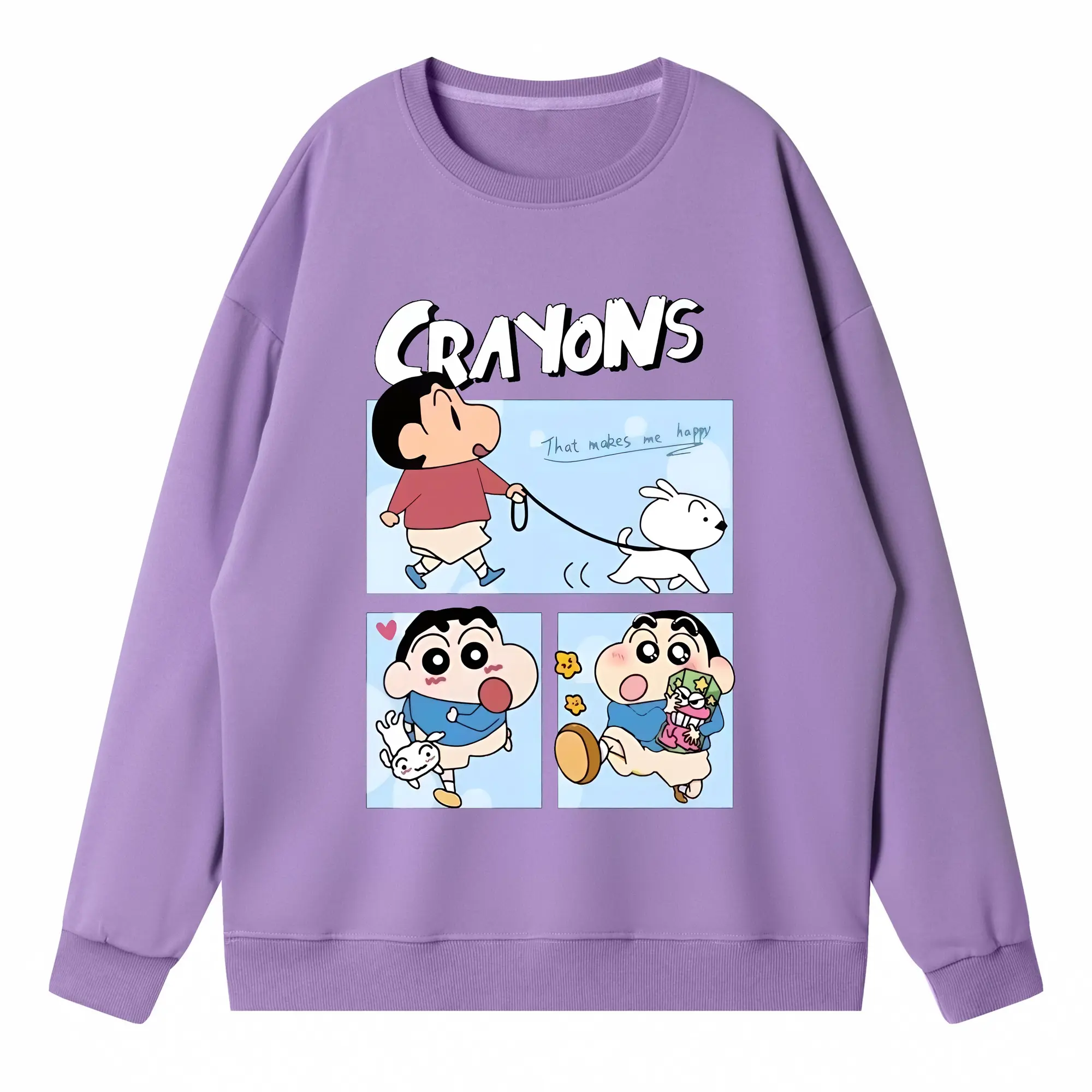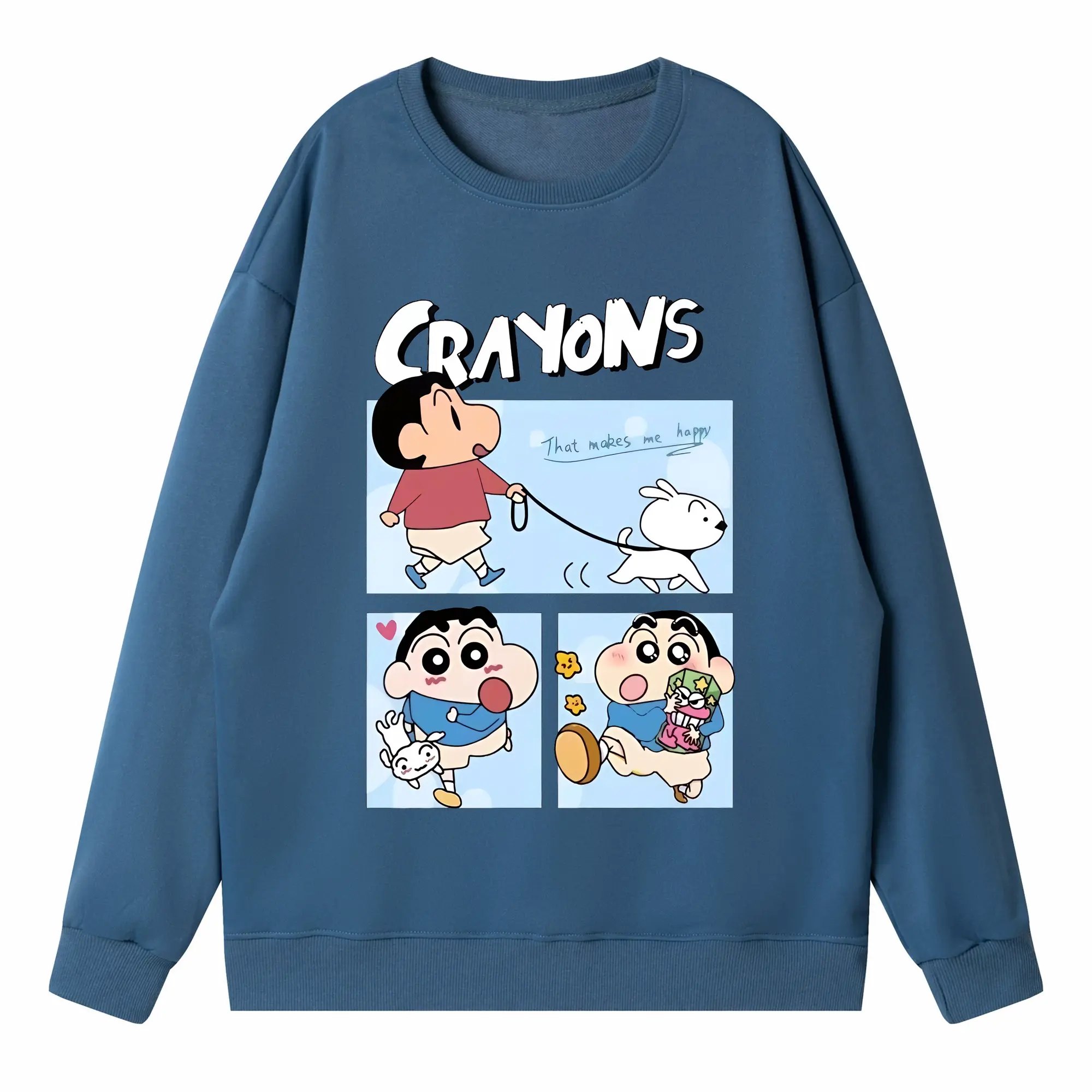クレヨンしんちゃん グッズ 野原 しんのすけ - 高品質 クルーネック スウェット ・ コットン59% ポリエステル41% ・ ユニセックス 長袖 トレーナー ・ カジュアル デイリー スポーツ 散歩用