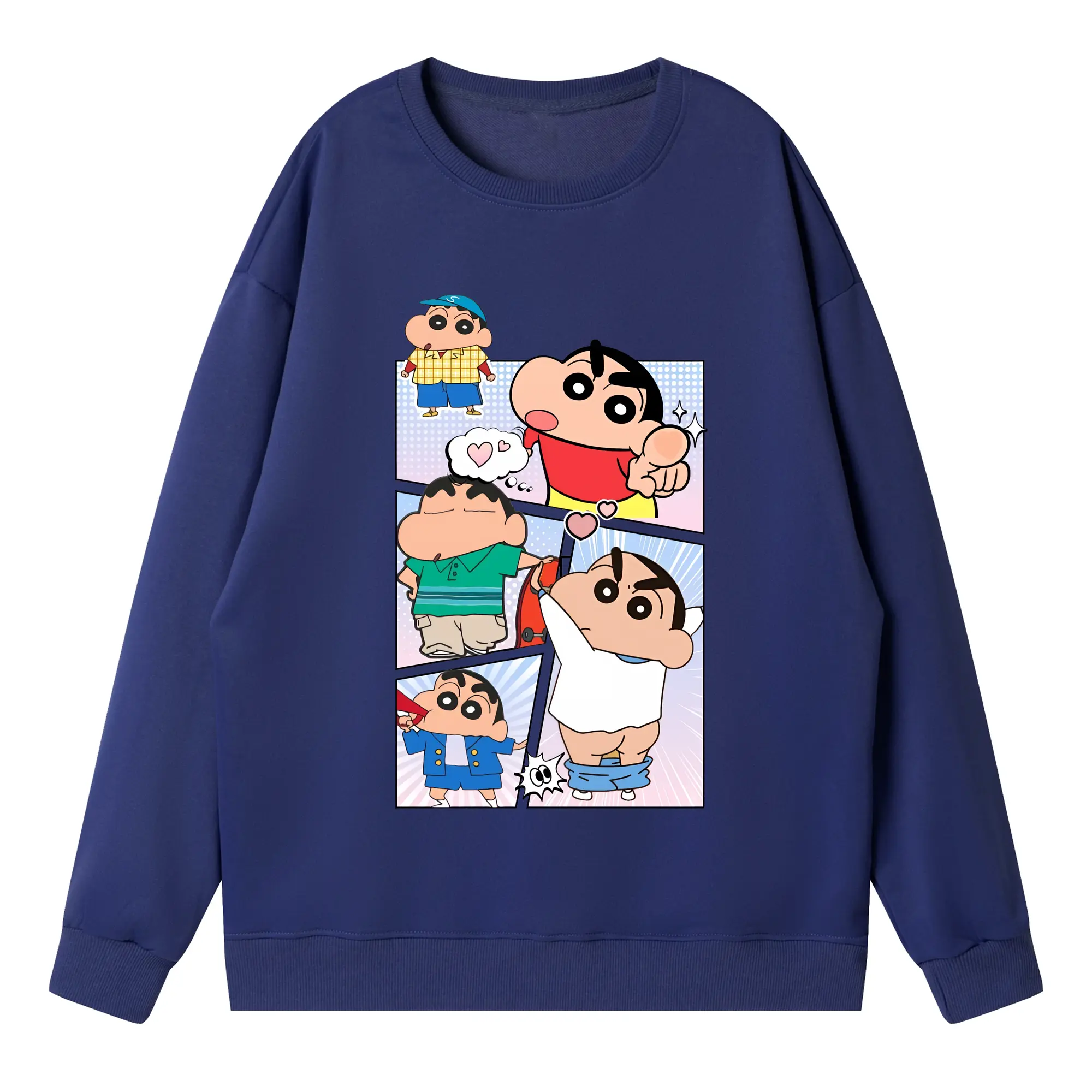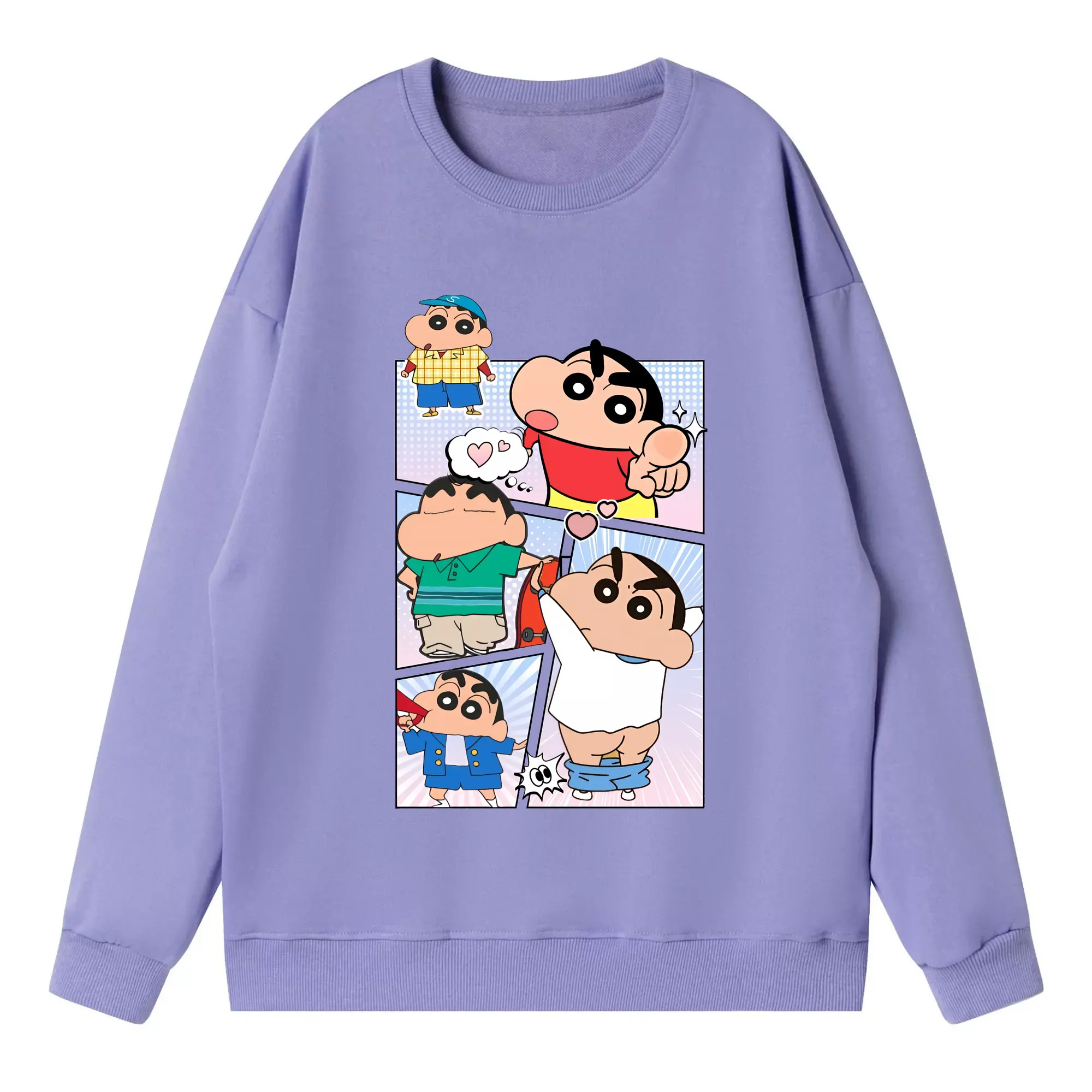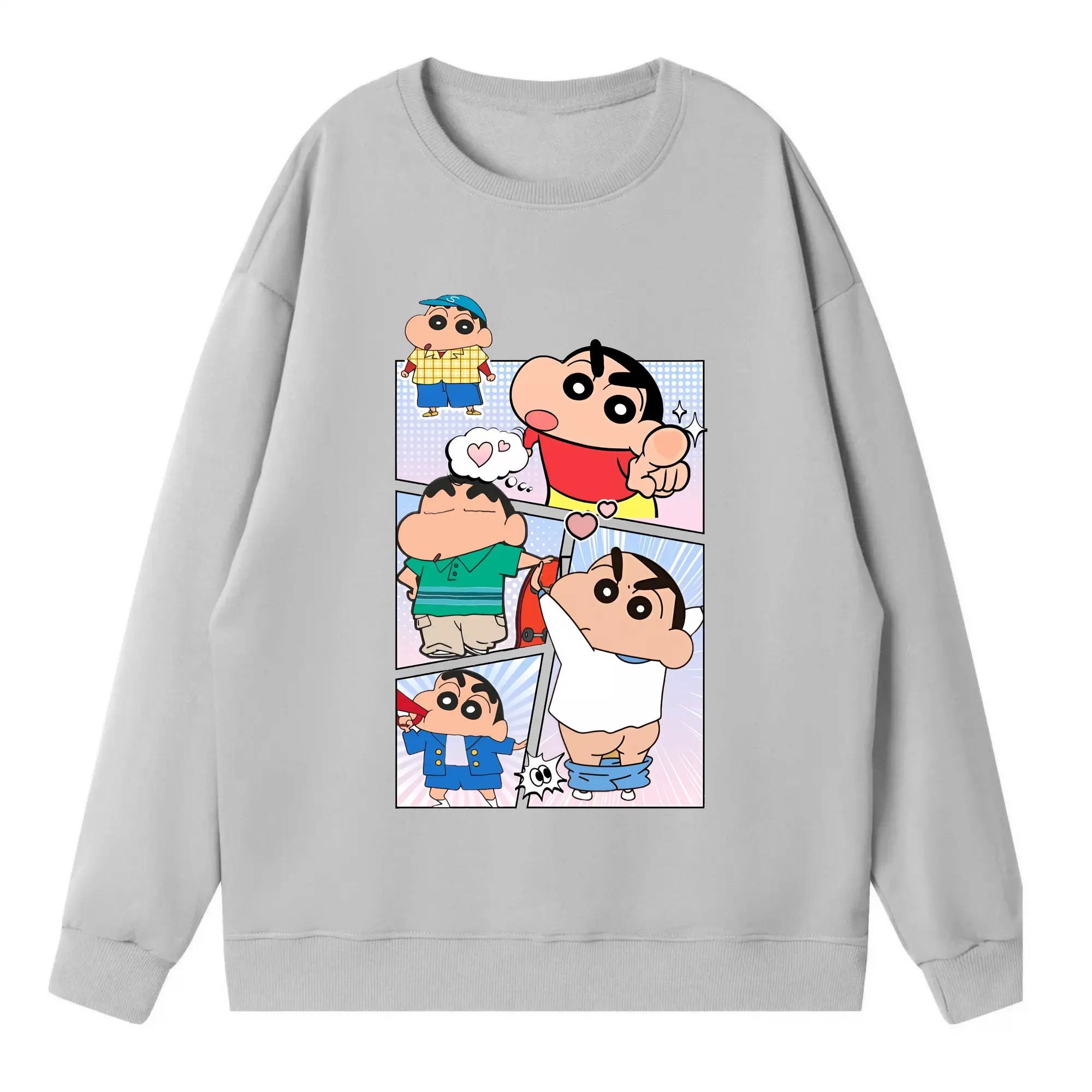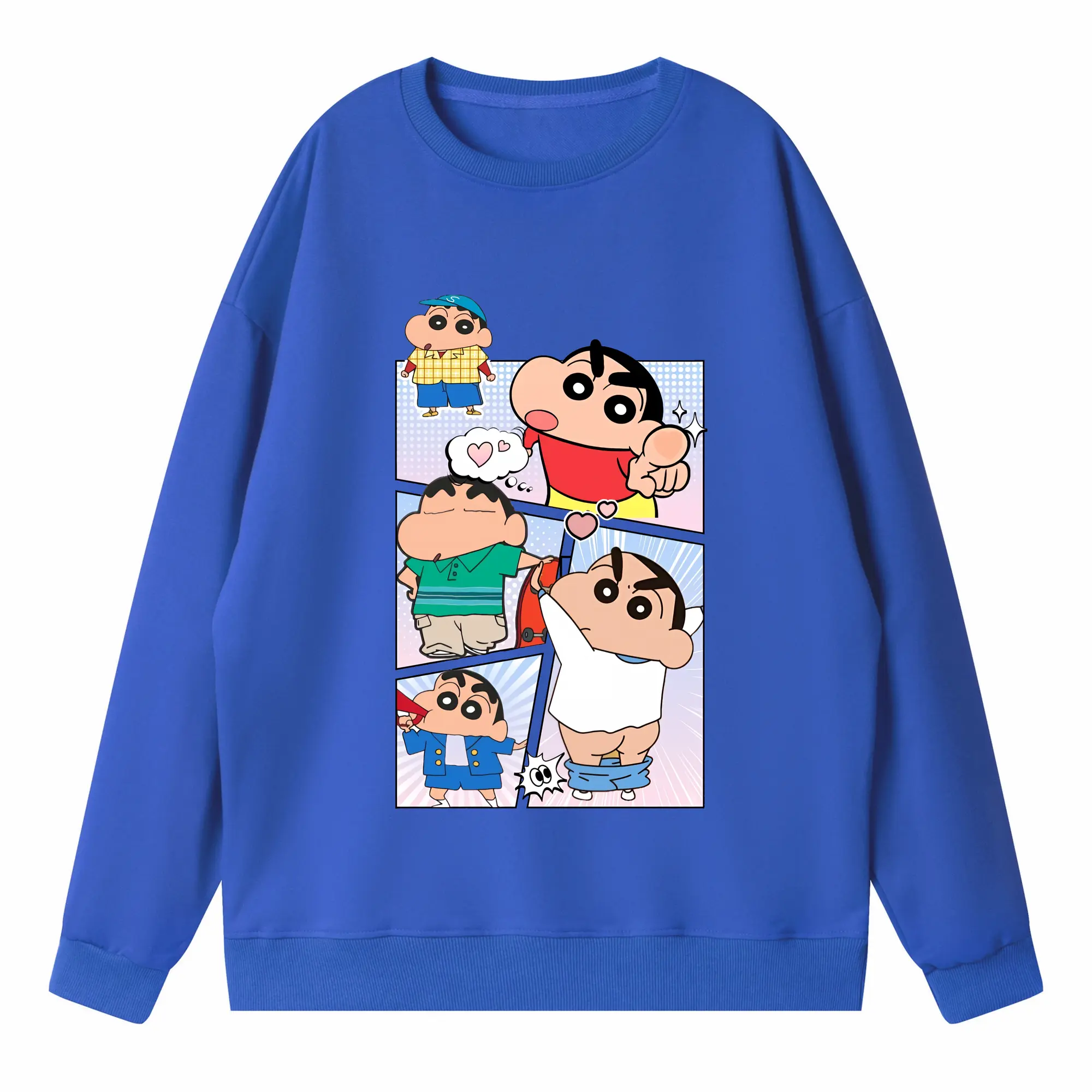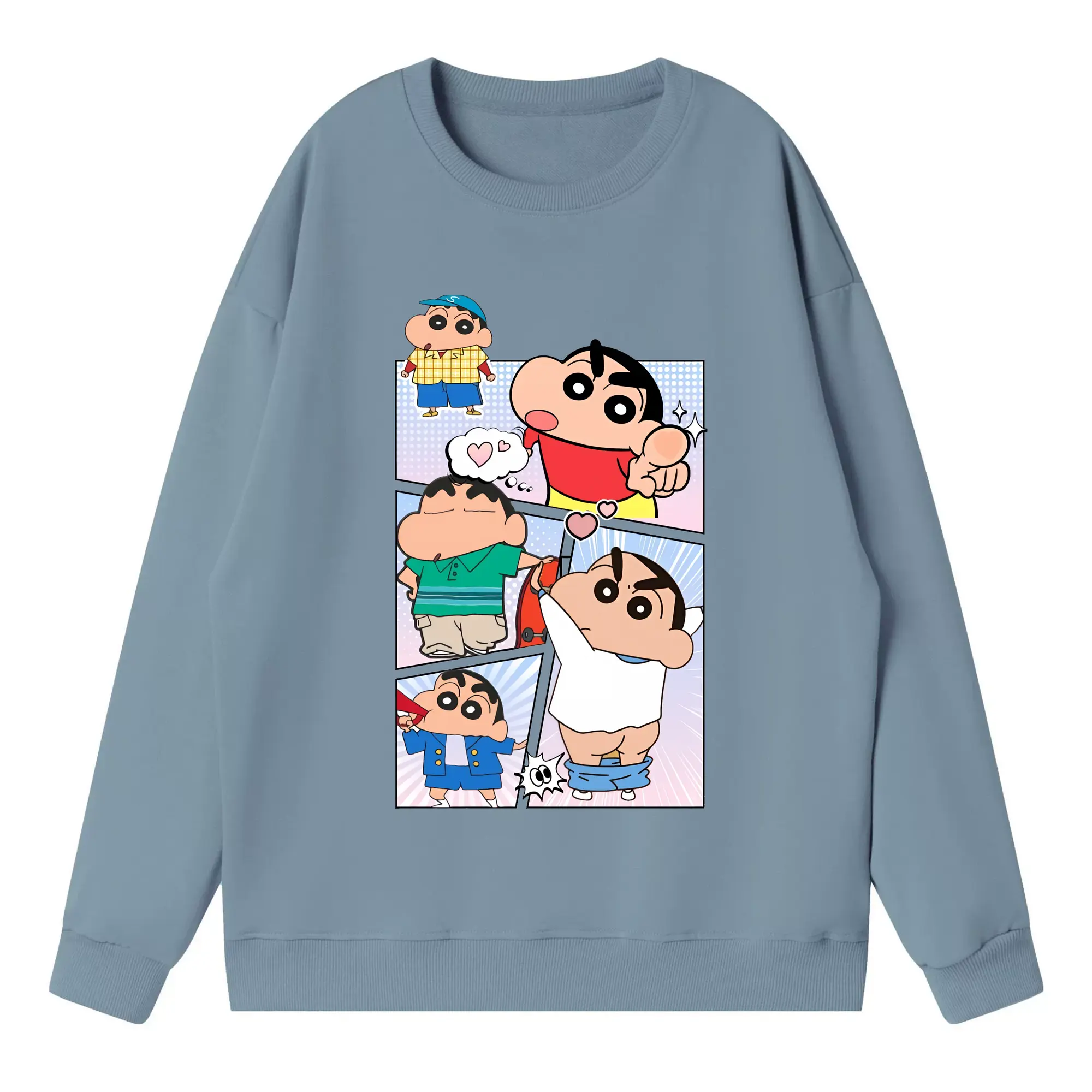 クレヨンしんちゃん グッズ 野原 しんのすけ - 高品質 クルーネック スウェット ・ コットン59% ポリエステル41% ・ ユニセックス 長袖 トレーナー ・ カジュアル デイリー スポーツ 散歩用