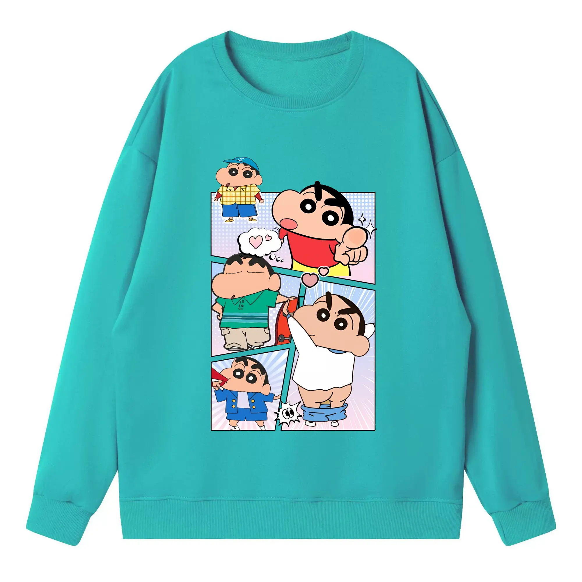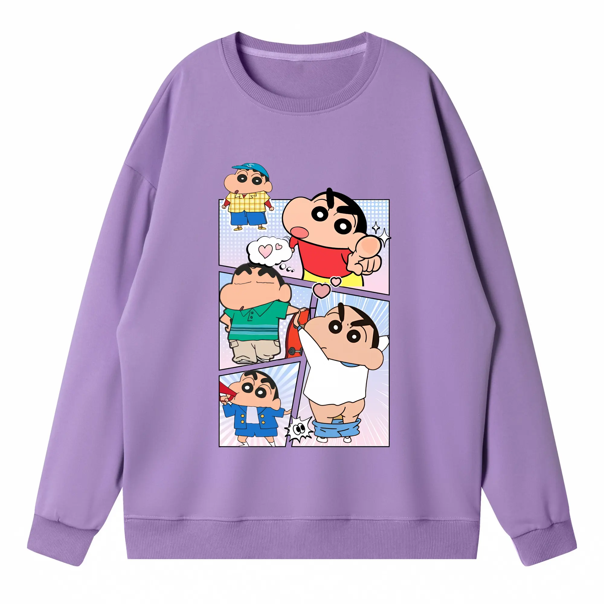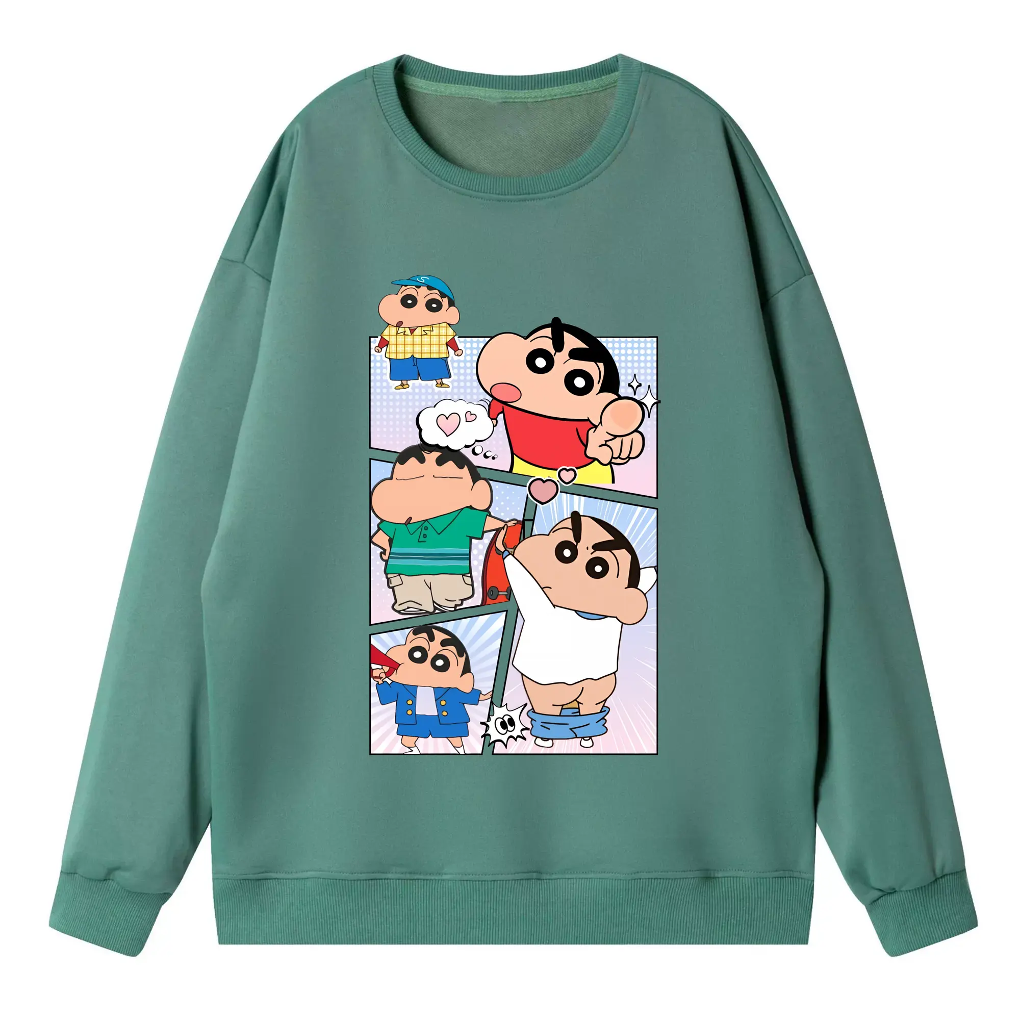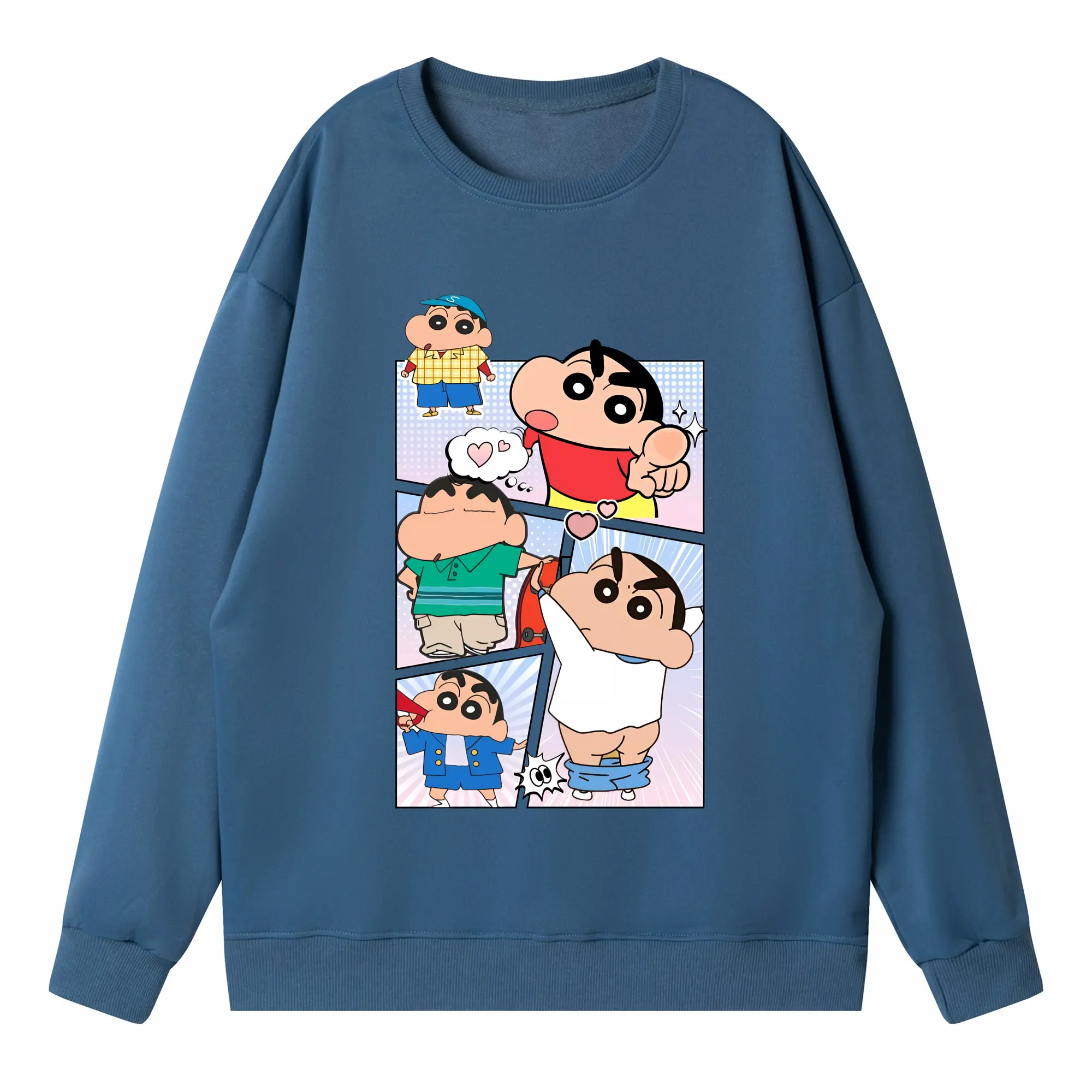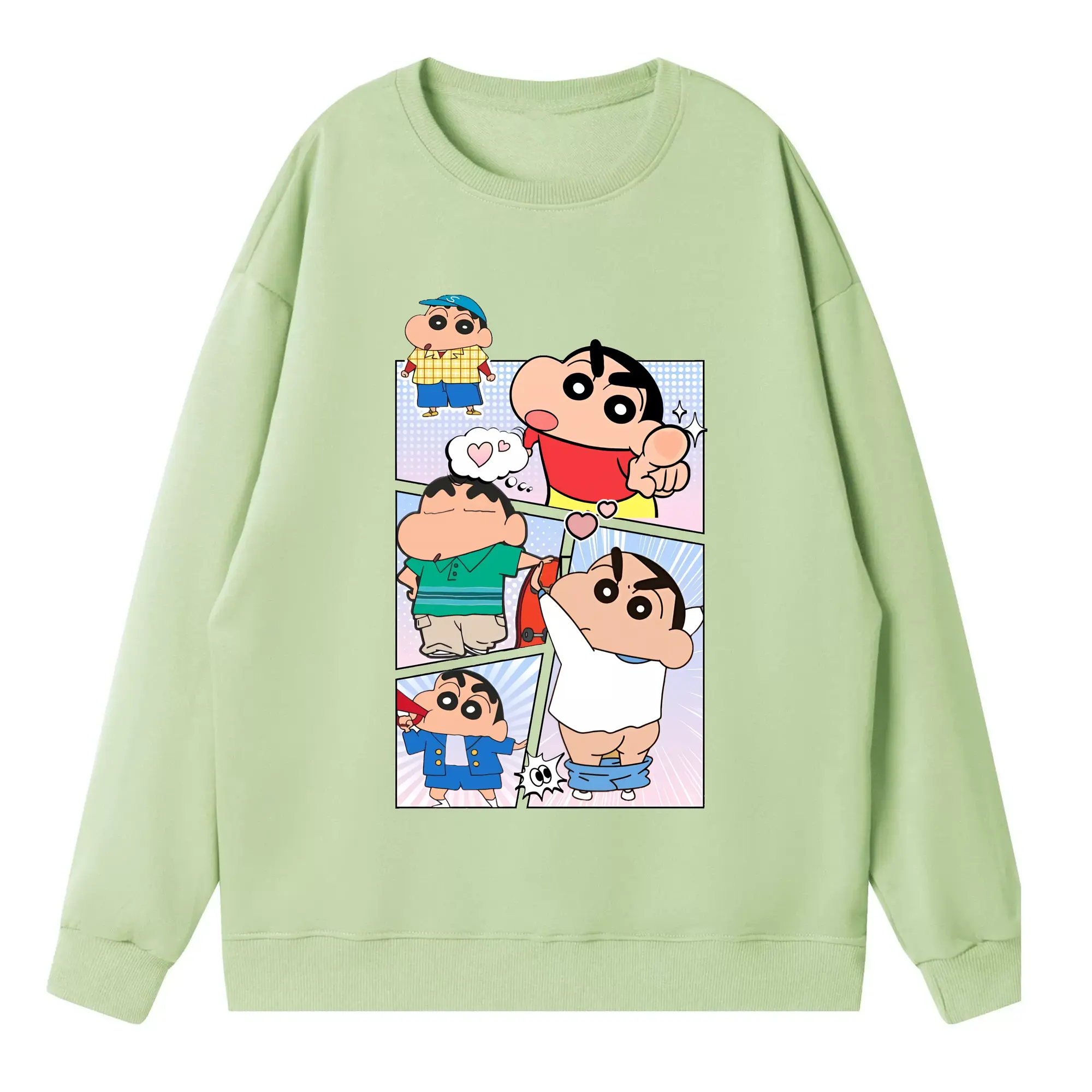 クレヨンしんちゃん グッズ 野原 しんのすけ - 高品質 クルーネック スウェット ・ コットン59% ポリエステル41% ・ ユニセックス 長袖 トレーナー ・ カジュアル デイリー スポーツ 散歩用