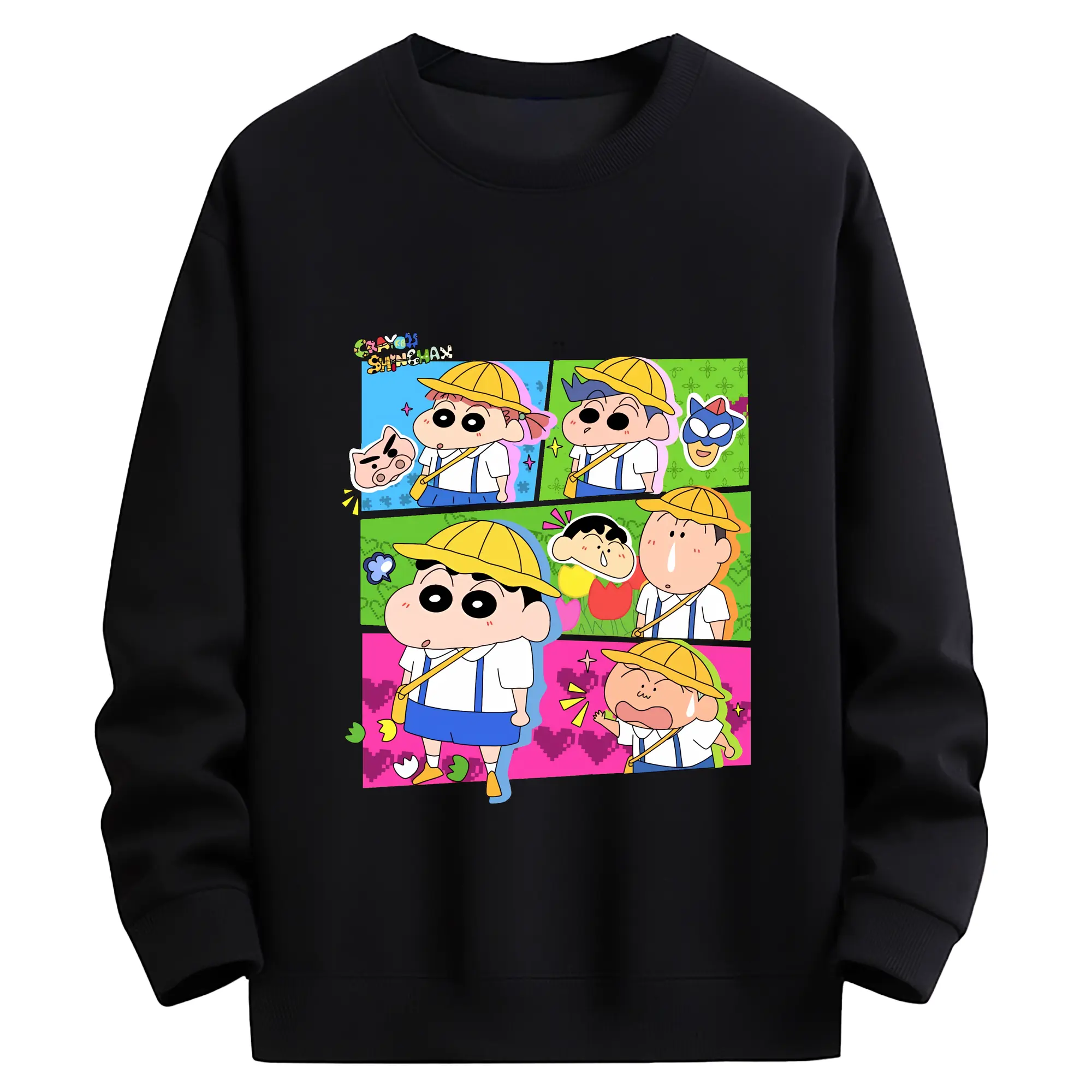 クレヨンしんちゃん グッズ 野原 しんのすけ - 高品質 クルーネック スウェット ・ コットン59% ポリエステル41% ・ ユニセックス 長袖 トレーナー ・ カジュアル デイリー スポーツ 散歩用