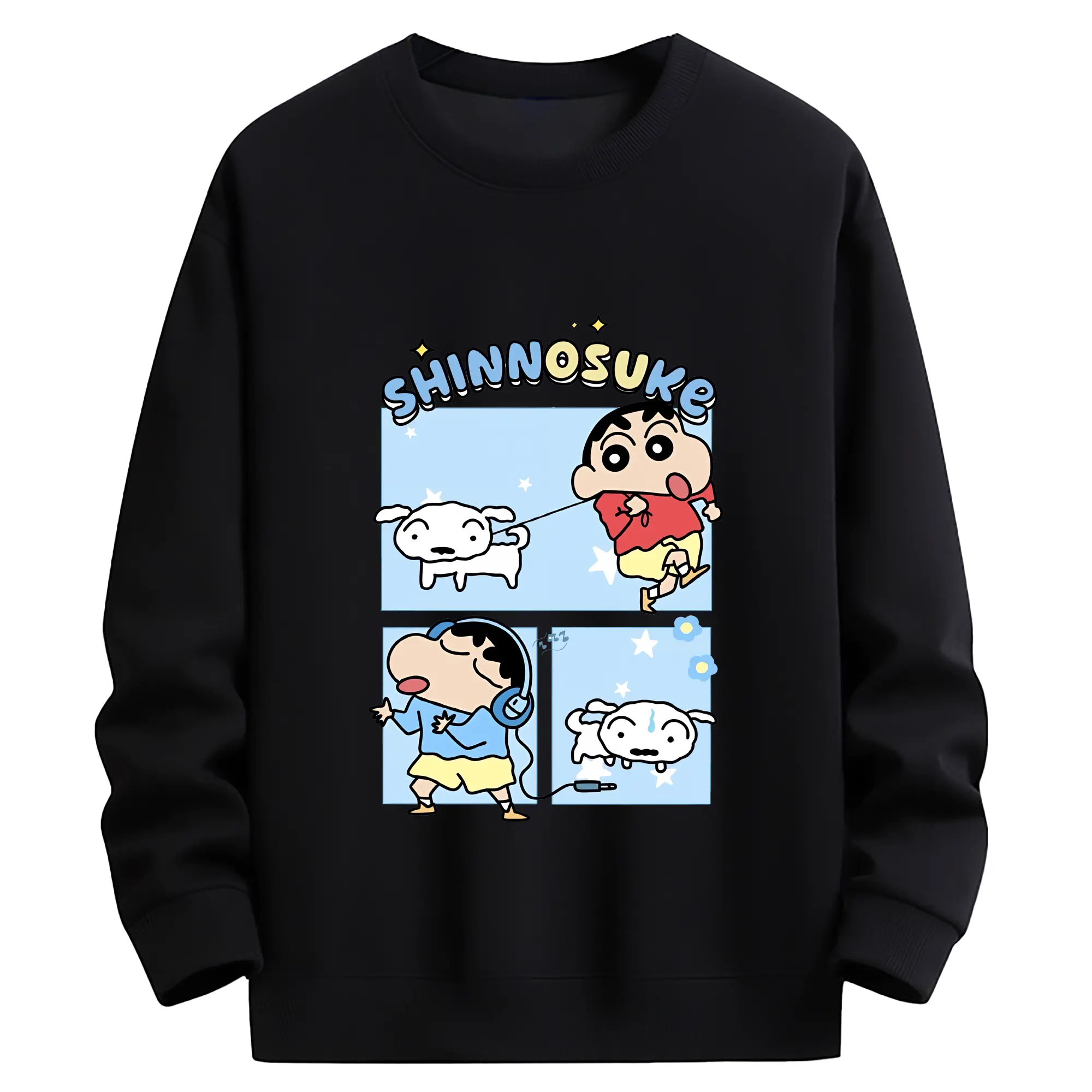 クレヨンしんちゃん グッズ 野原 しんのすけ - 高品質 クルーネック スウェット ・ コットン59% ポリエステル41% ・ ユニセックス 長袖 トレーナー ・ カジュアル デイリー スポーツ 散歩用