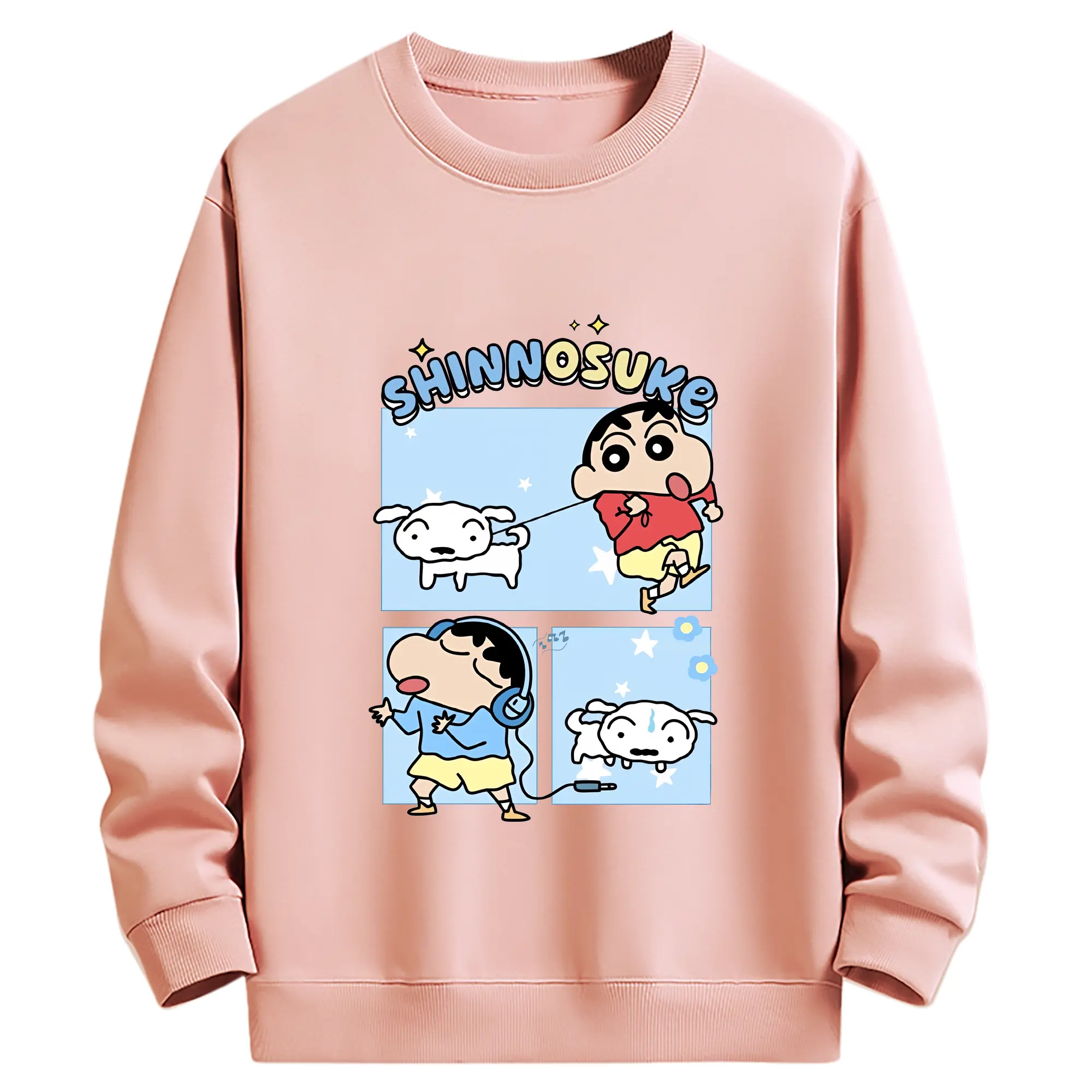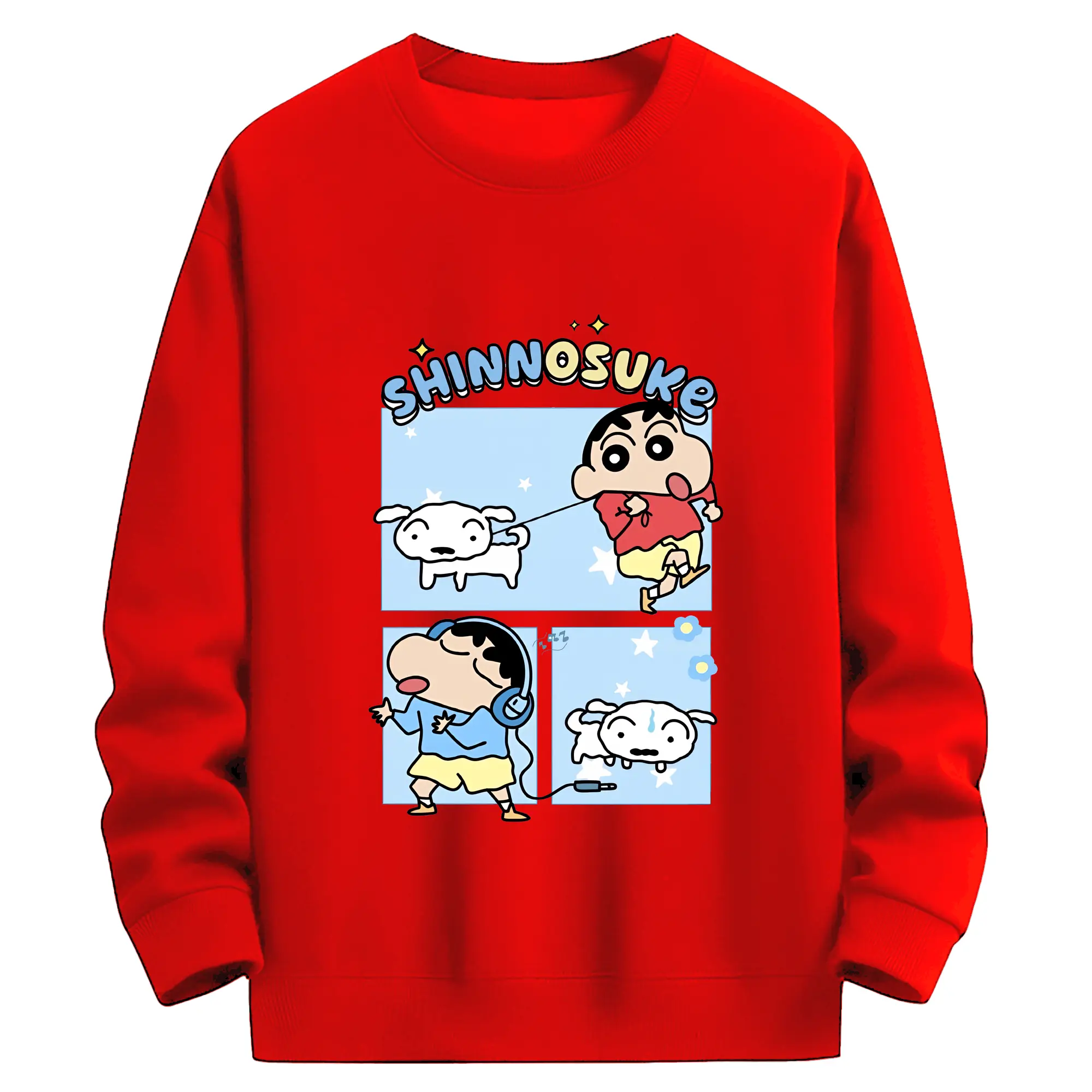 クレヨンしんちゃん グッズ 野原 しんのすけ - 薄手 クルーネック スウェット 裏毛260g · ポリエステル 春秋向け カジュアル 男女兼用 · トレーナー デイリー スポーツ 散歩に最適