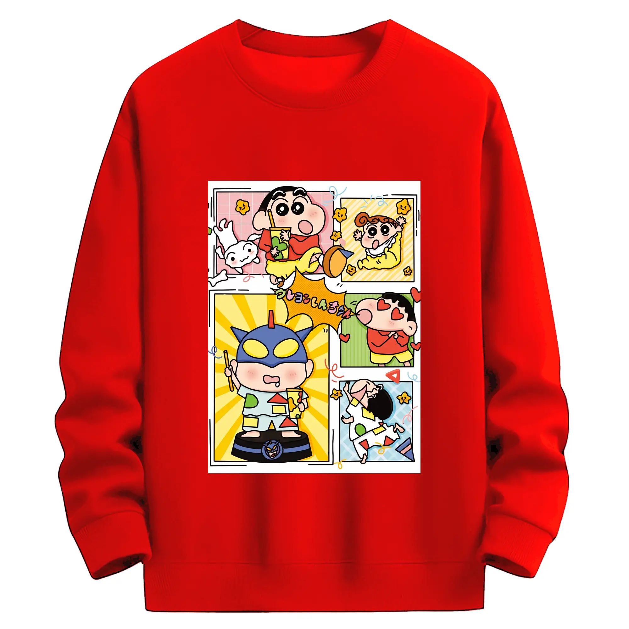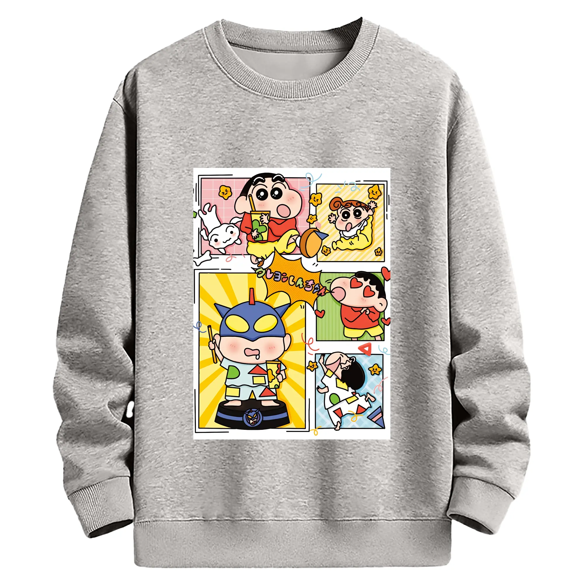 クレヨンしんちゃん グッズ 野原 しんのすけ - 高品質 クルーネック スウェット ・ コットン59% ポリエステル41% ・ ユニセックス 長袖 トレーナー ・ カジュアル デイリー スポーツ 散歩用