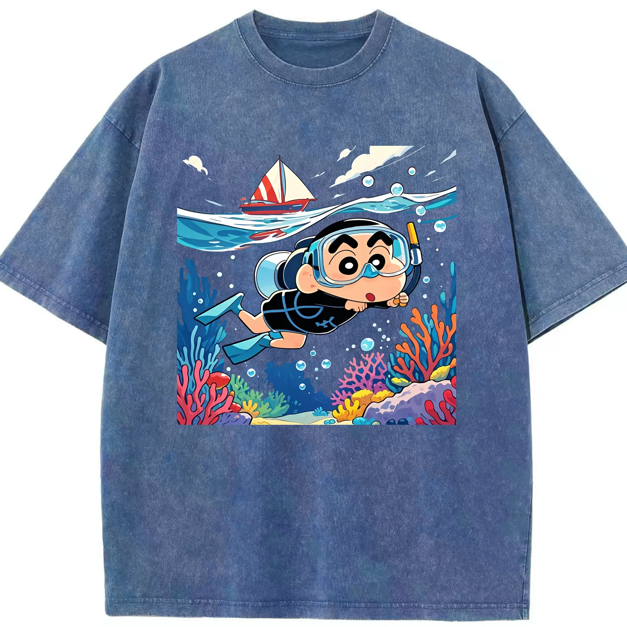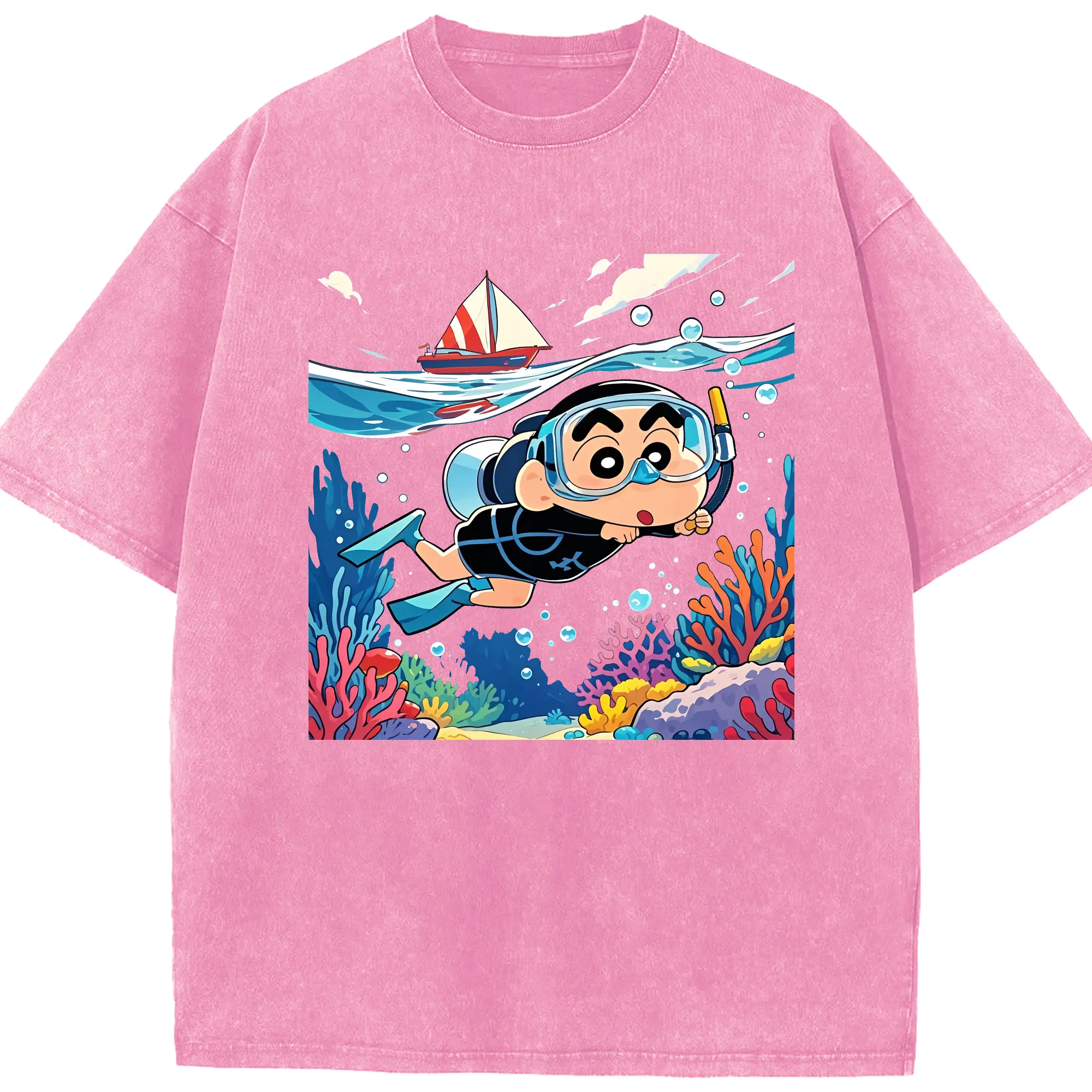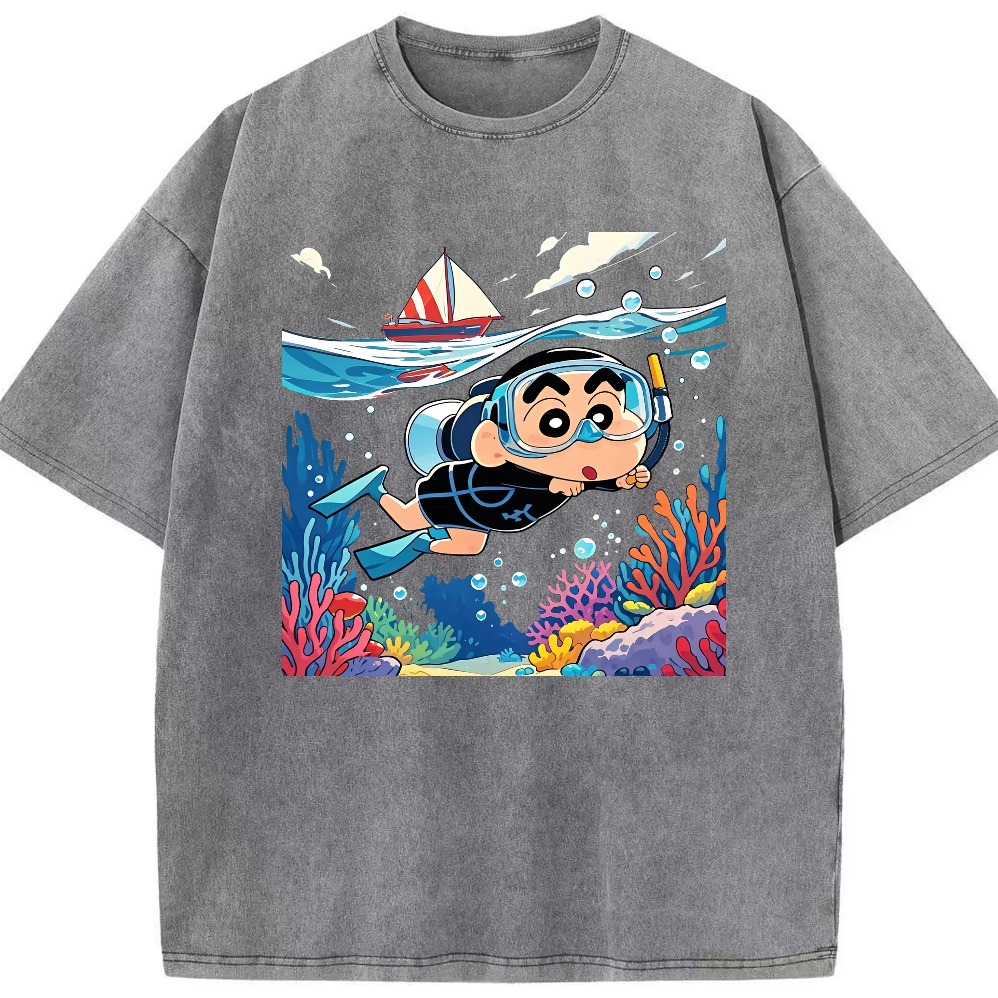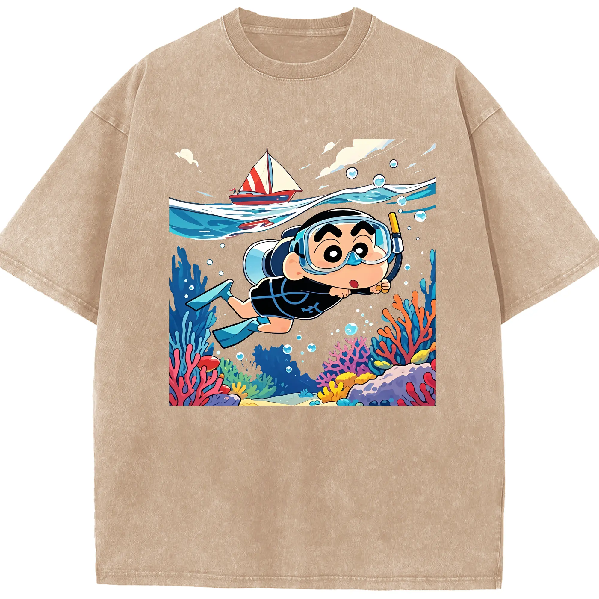 クレヨンしんちゃん グッズ 野原 しんのすけ - 綿100% ヴィンテージ風 半袖Tシャツ ・ 背面プリント ・ 柔らか肌触り ・ 通気性 快適 ・ スポーツ カジュアル 外出用