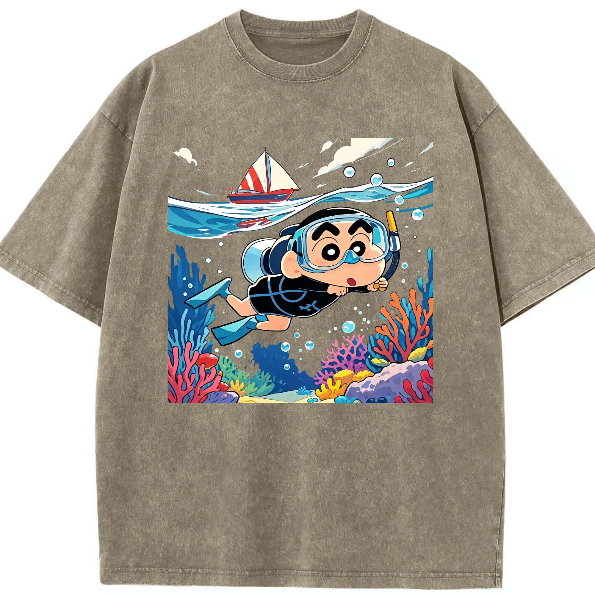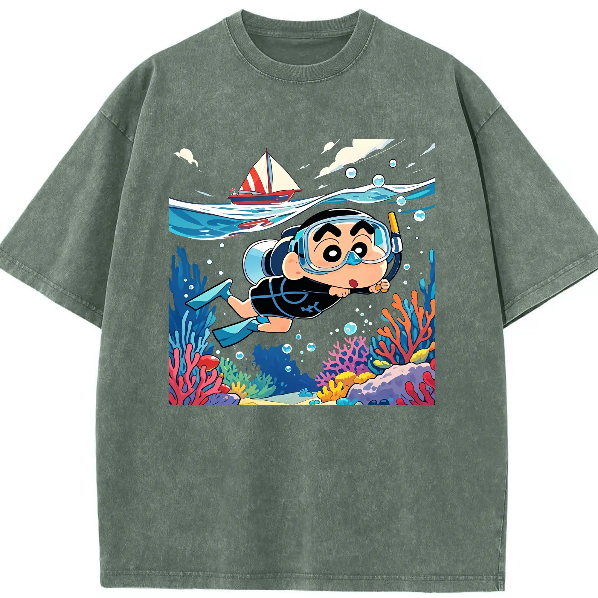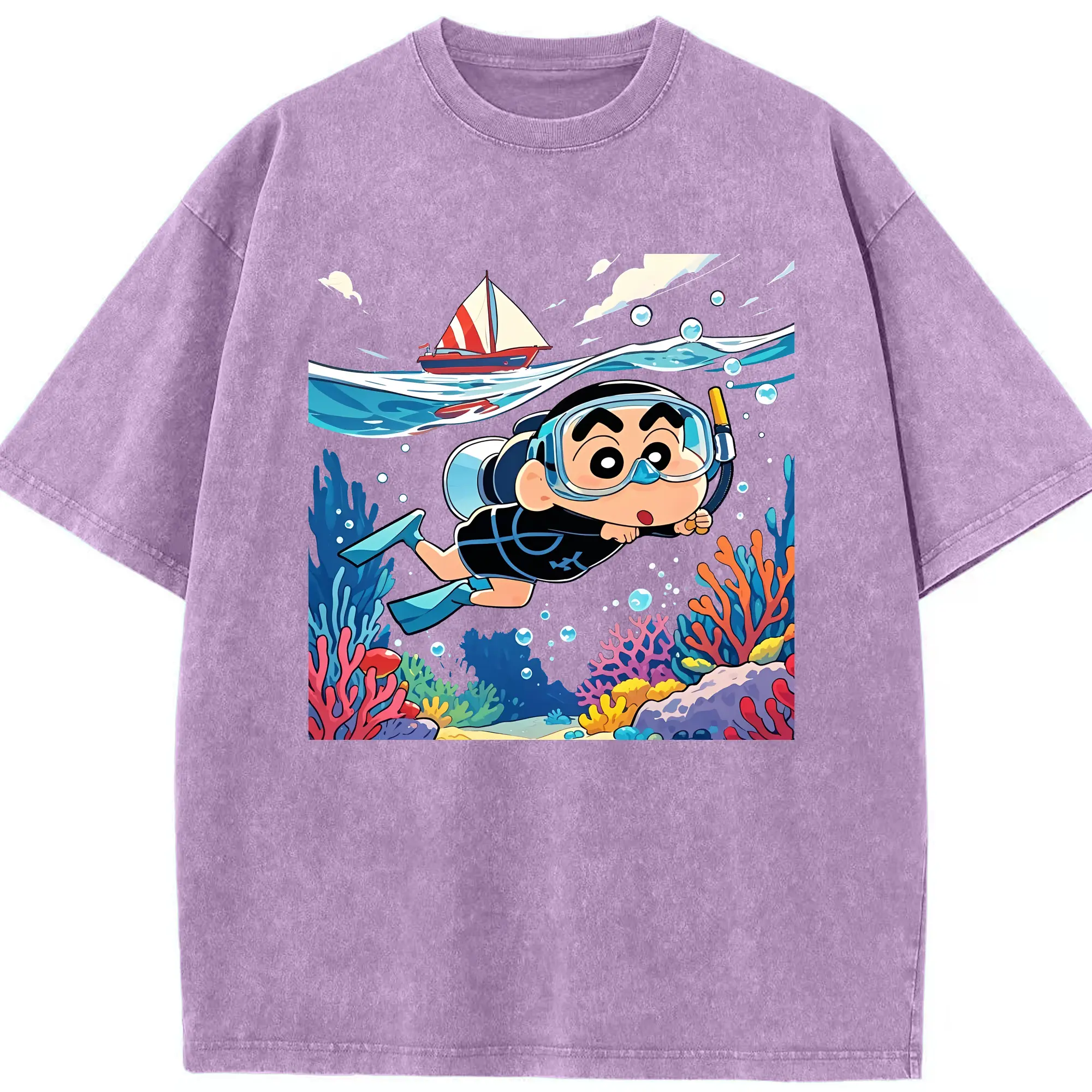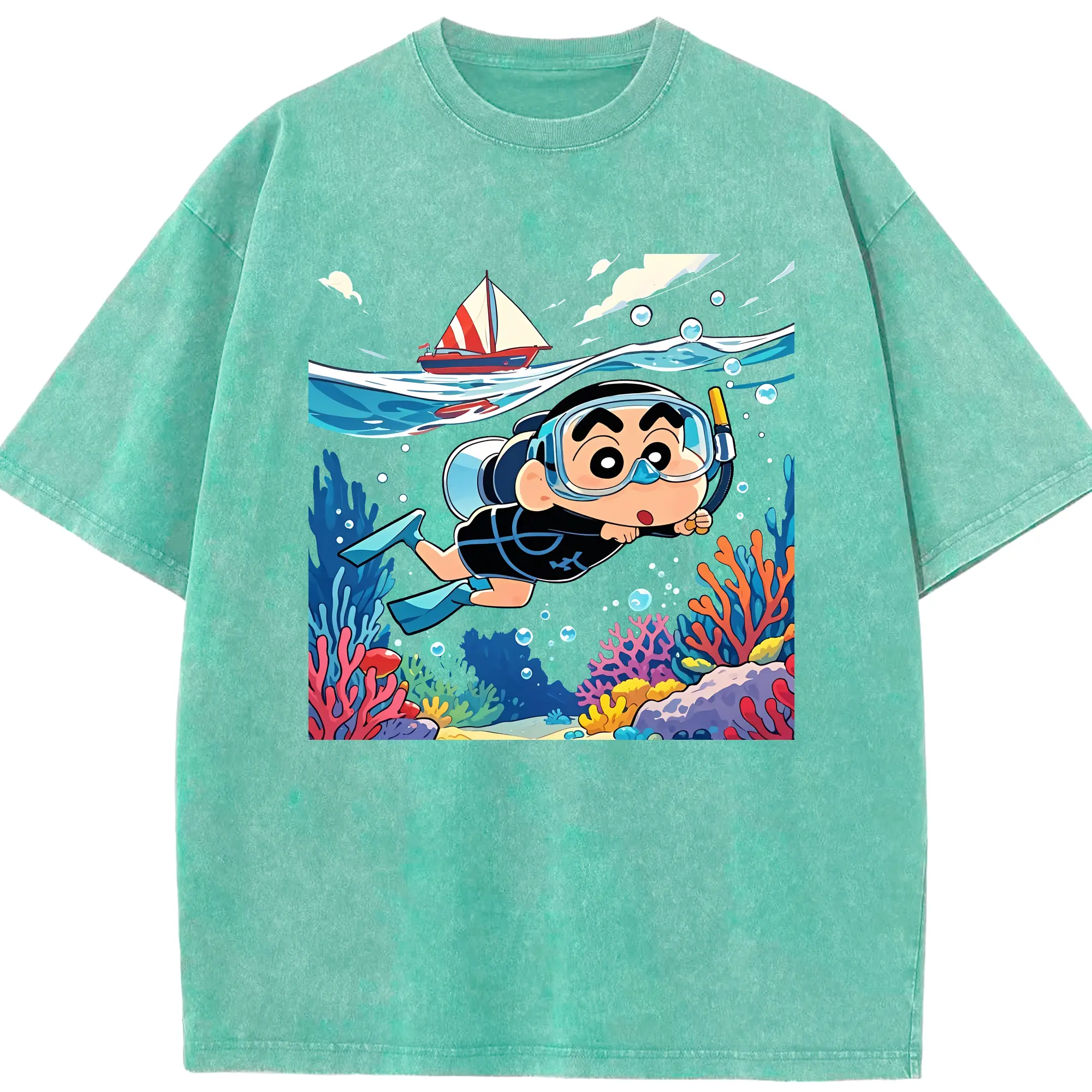 クレヨンしんちゃん グッズ 野原 しんのすけ - 綿100% ヴィンテージ風 半袖Tシャツ ・ 背面プリント ・ 柔らか肌触り ・ 通気性 快適 ・ スポーツ カジュアル 外出用