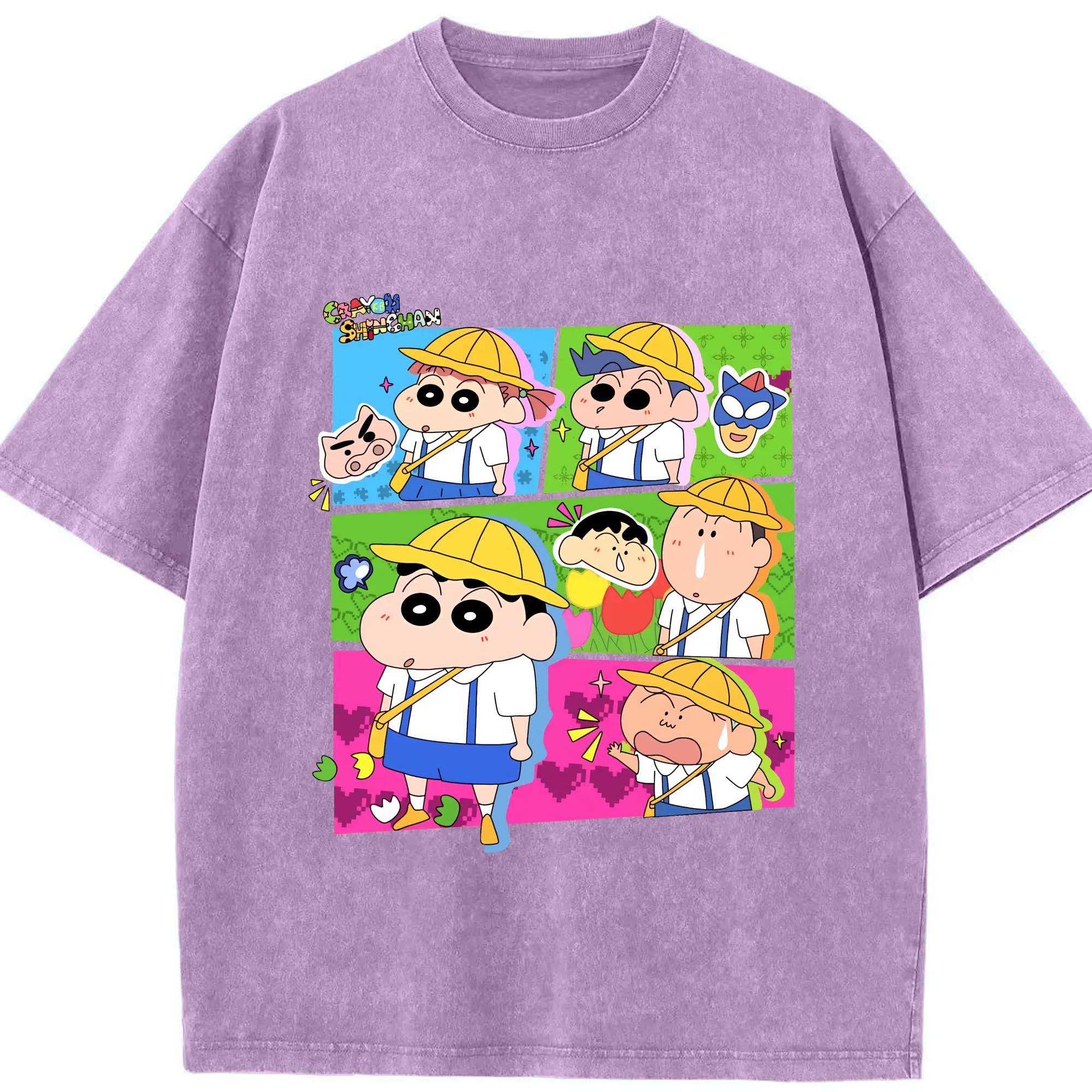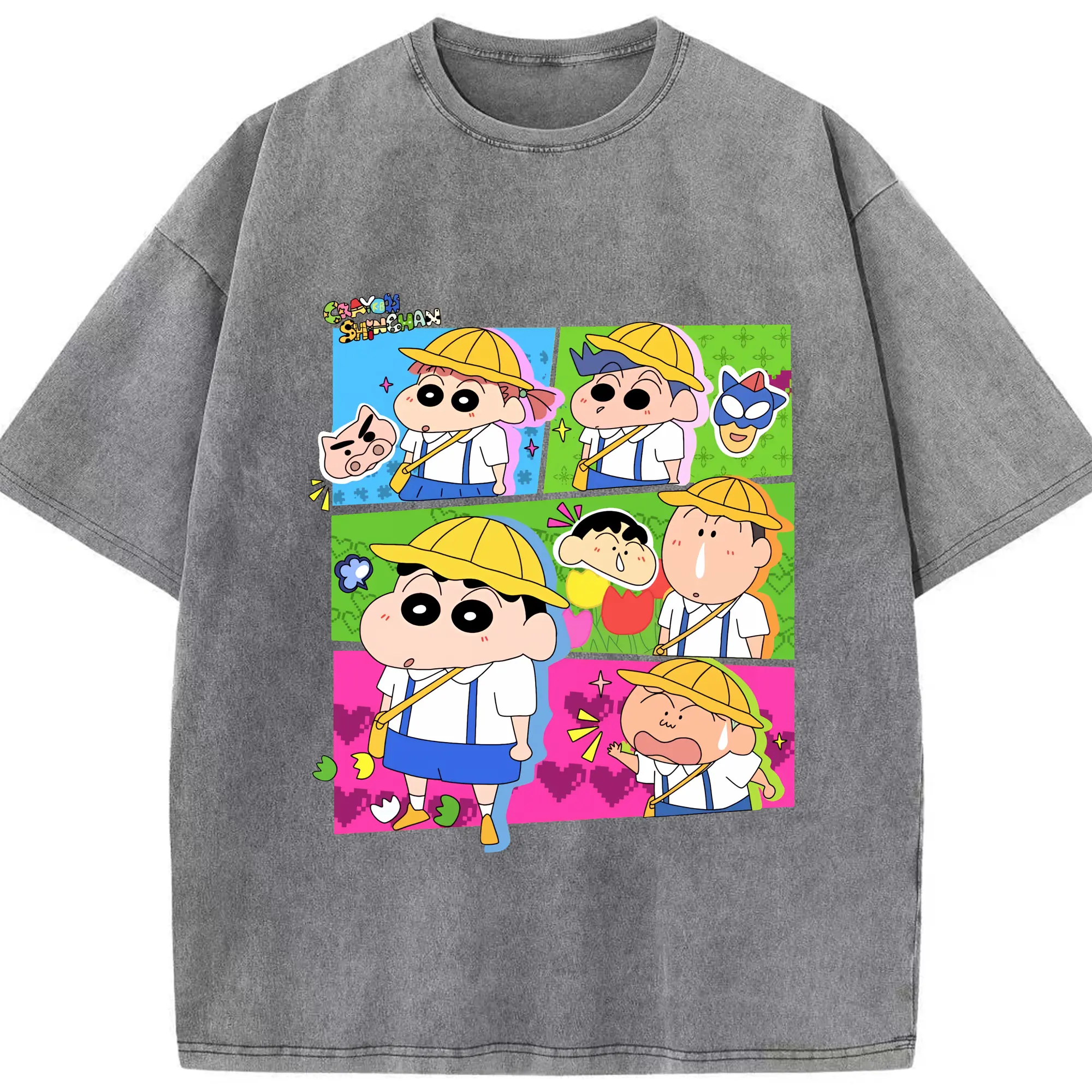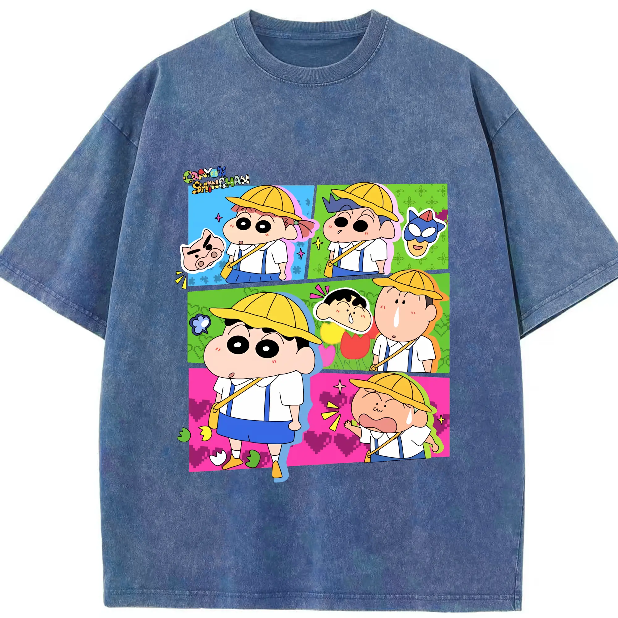 クレヨンしんちゃん グッズ 野原 しんのすけ - 綿100% ヴィンテージ風 半袖Tシャツ ・ 背面プリント ・ 柔らか肌触り ・ 通気性 快適 ・ スポーツ カジュアル 外出用