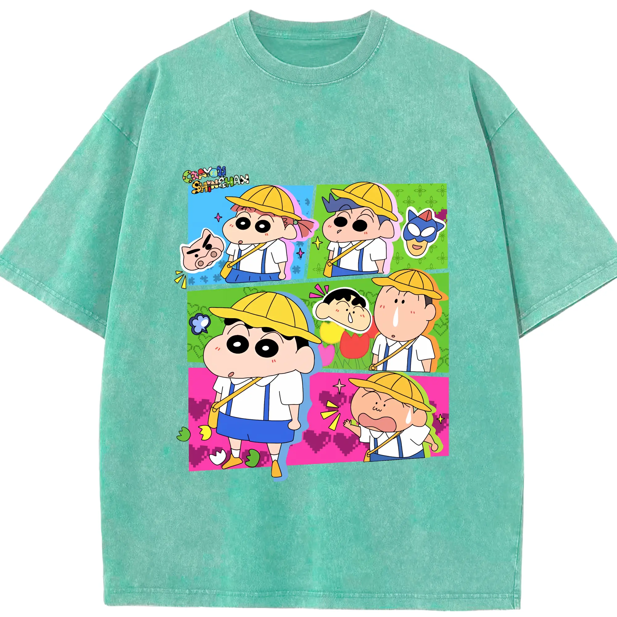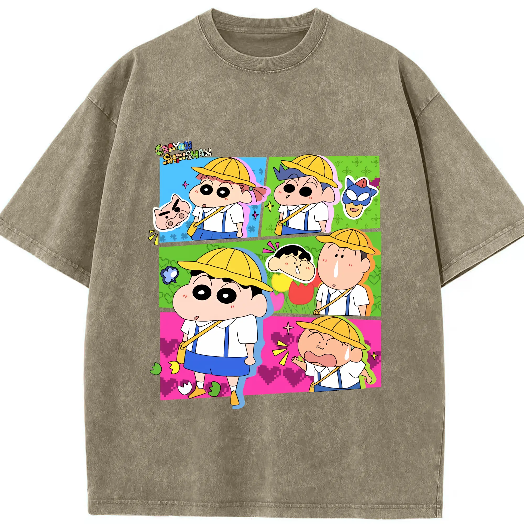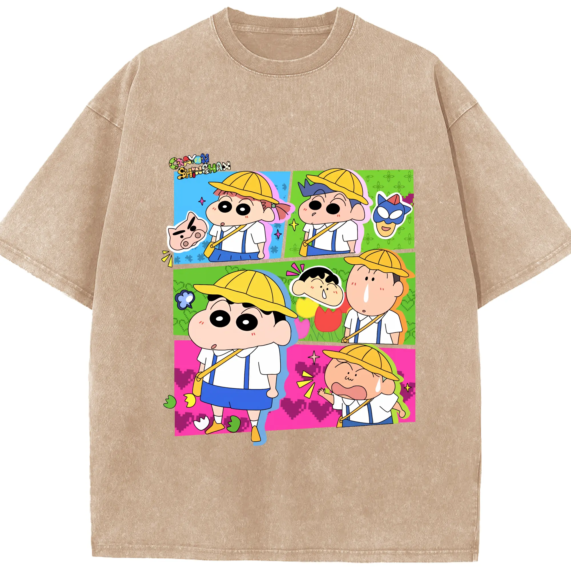 クレヨンしんちゃん グッズ 野原 しんのすけ - 綿100% ヴィンテージ風 半袖Tシャツ ・ 背面プリント ・ 柔らか肌触り ・ 通気性 快適 ・ スポーツ カジュアル 外出用