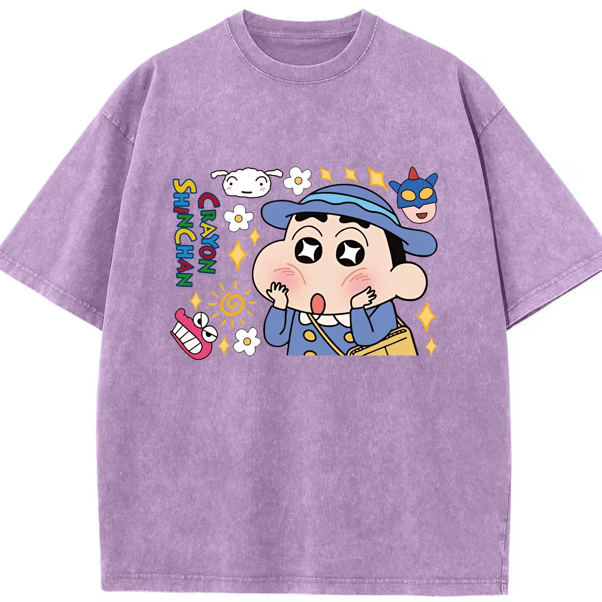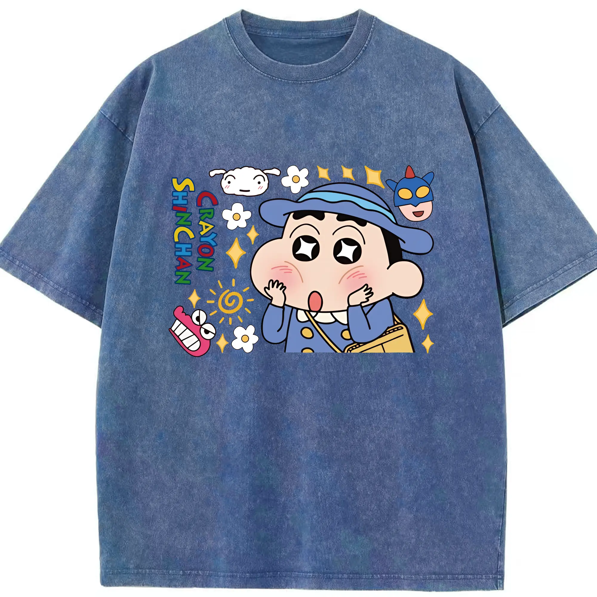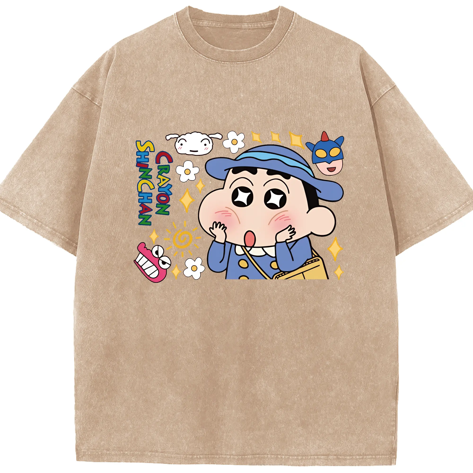 クレヨンしんちゃん グッズ 野原 しんのすけ - 綿100% ヴィンテージ風 半袖Tシャツ ・ 背面プリント ・ 柔らか肌触り ・ 通気性 快適 ・ スポーツ カジュアル 外出用
