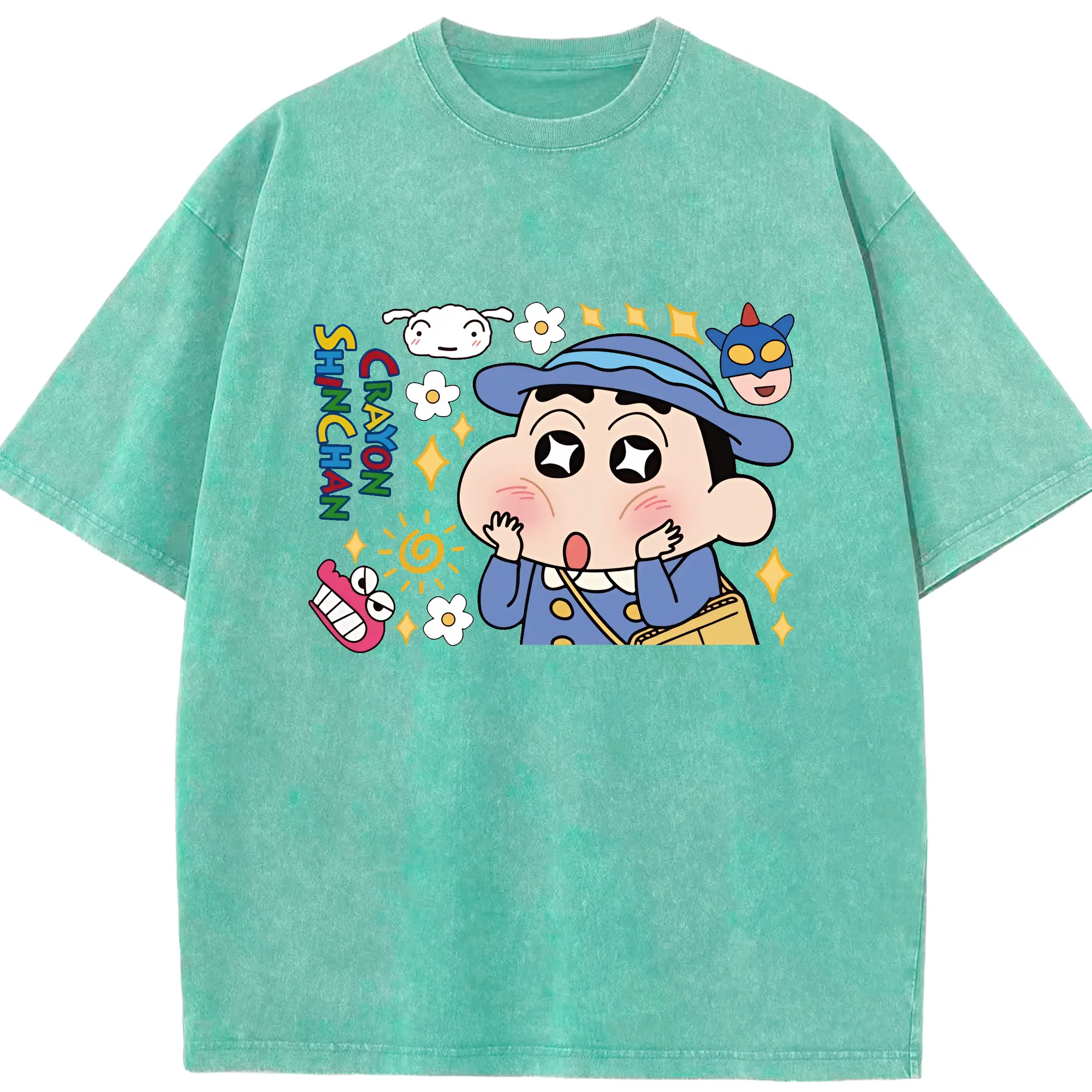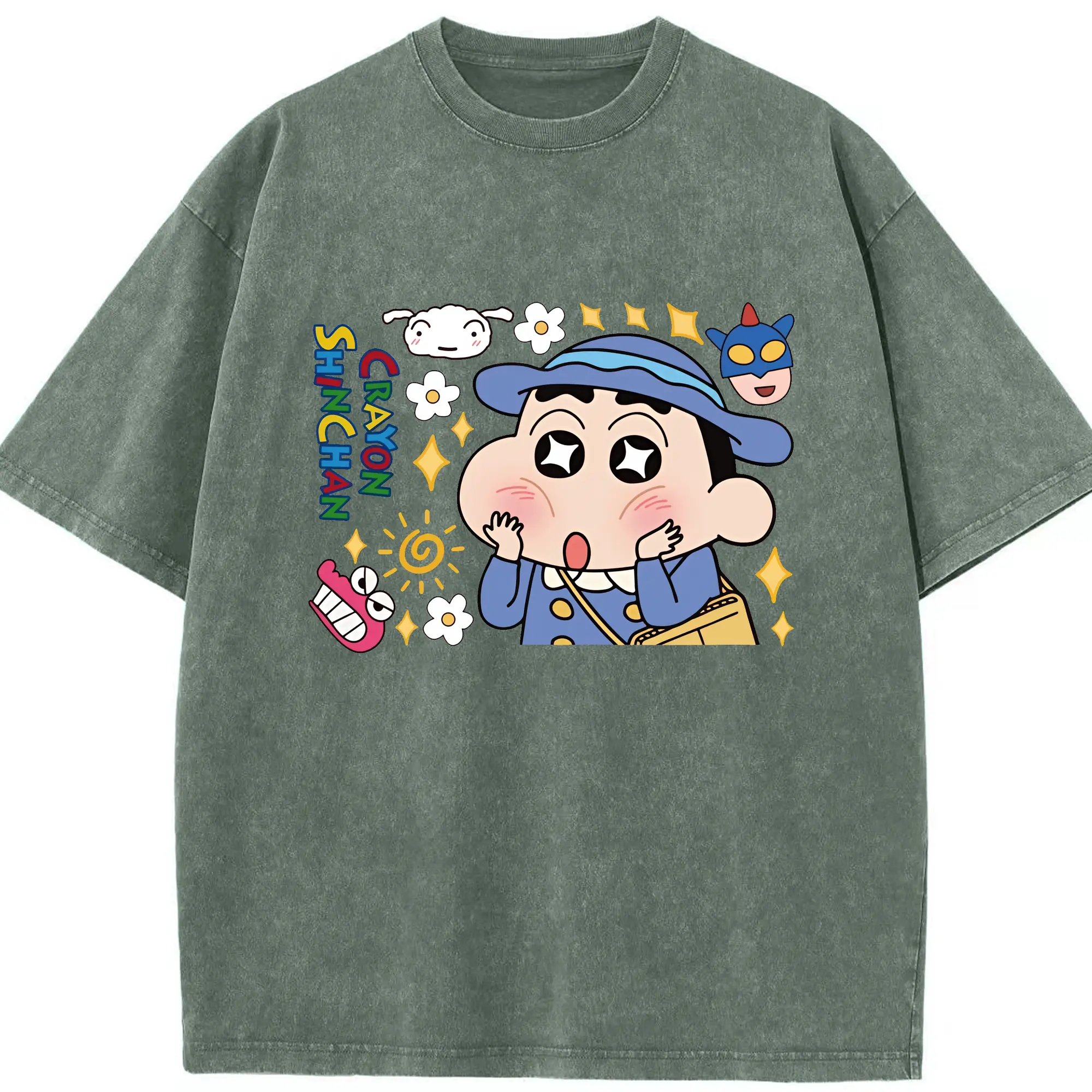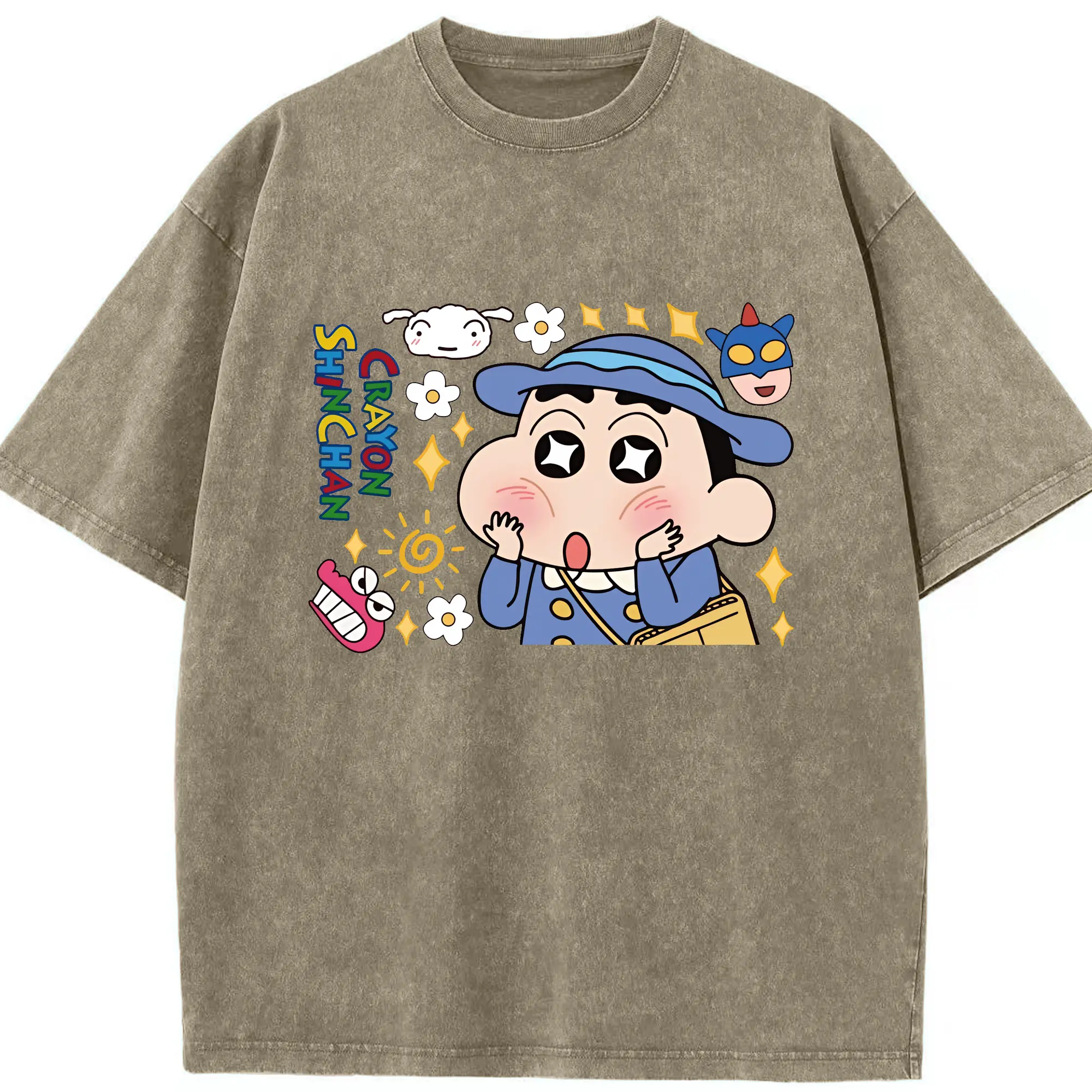 クレヨンしんちゃん グッズ 野原 しんのすけ - 綿100% ヴィンテージ風 半袖Tシャツ ・ 背面プリント ・ 柔らか肌触り ・ 通気性 快適 ・ スポーツ カジュアル 外出用