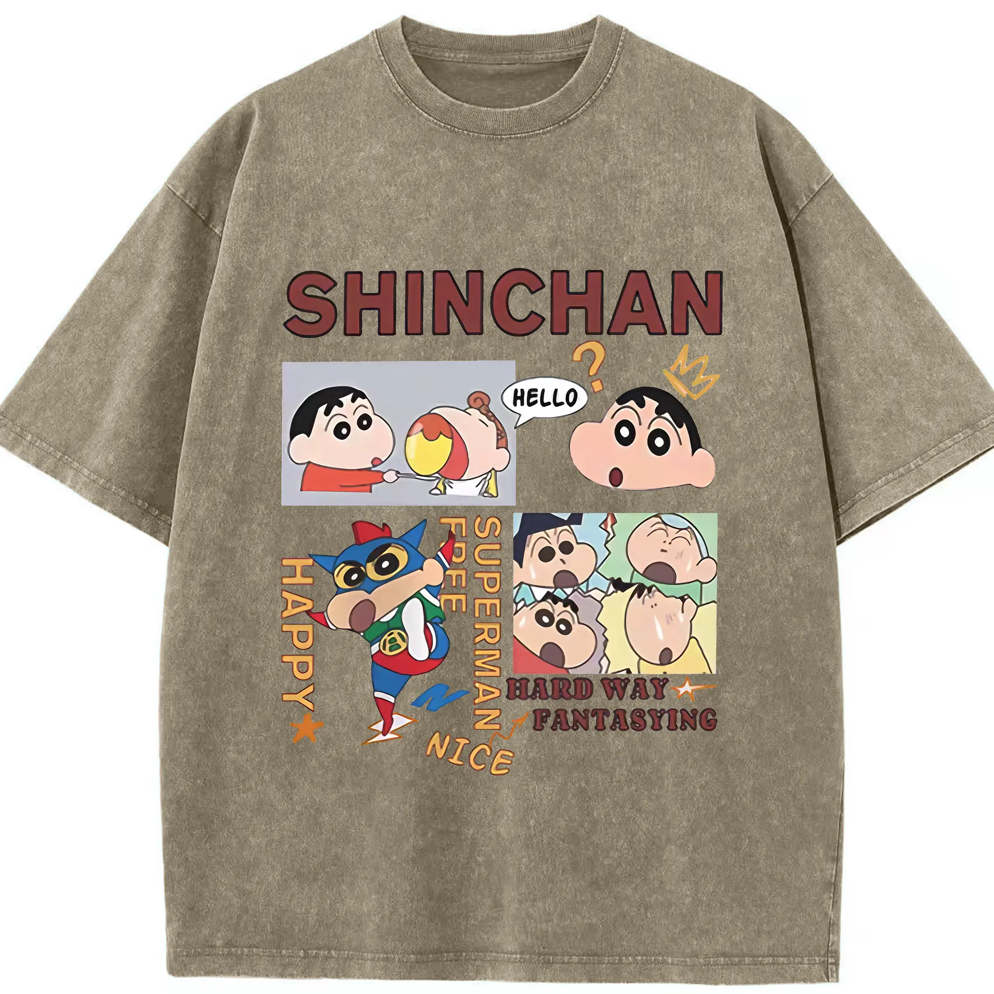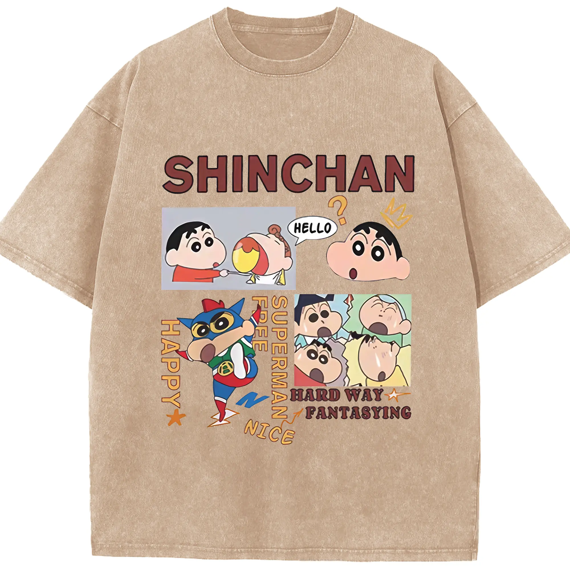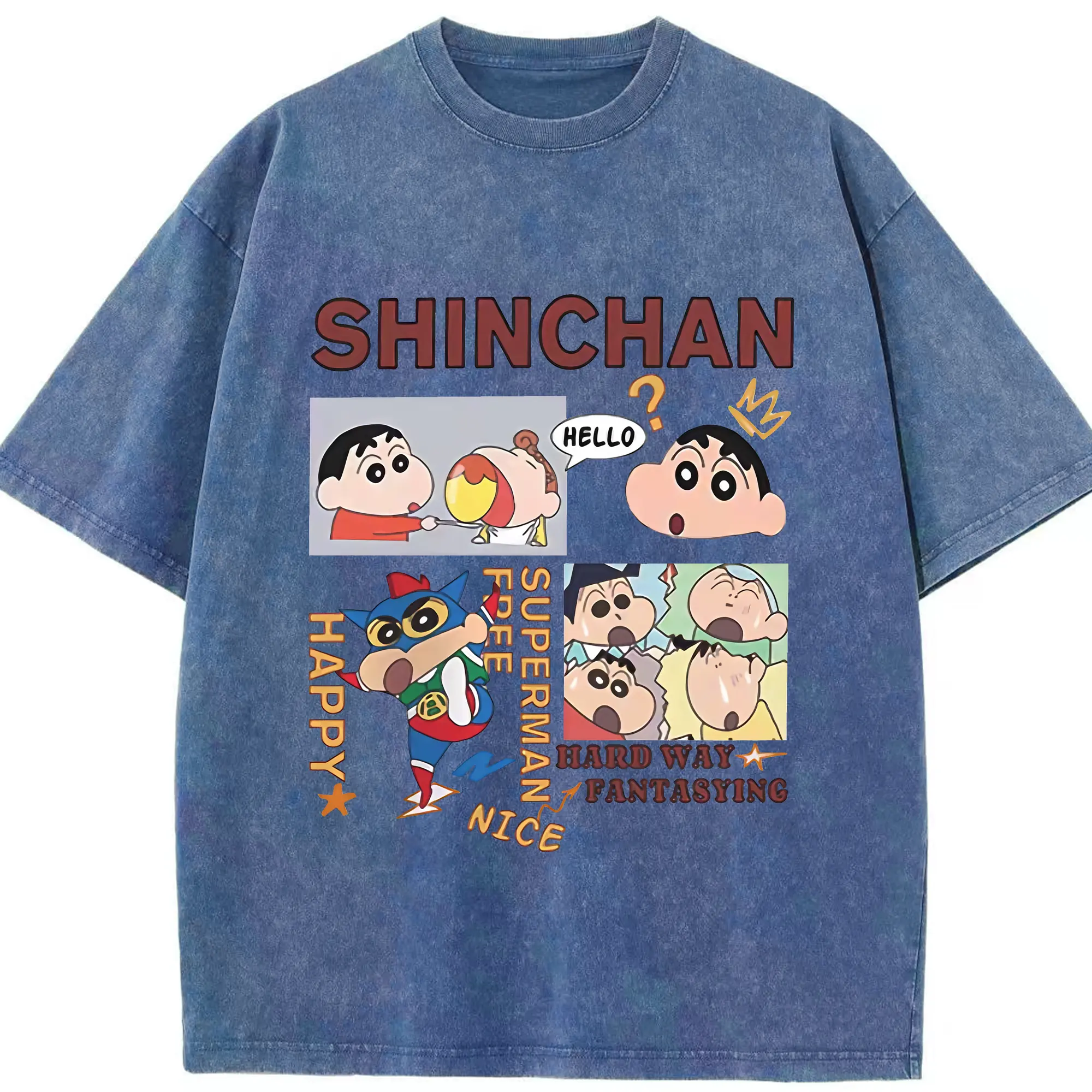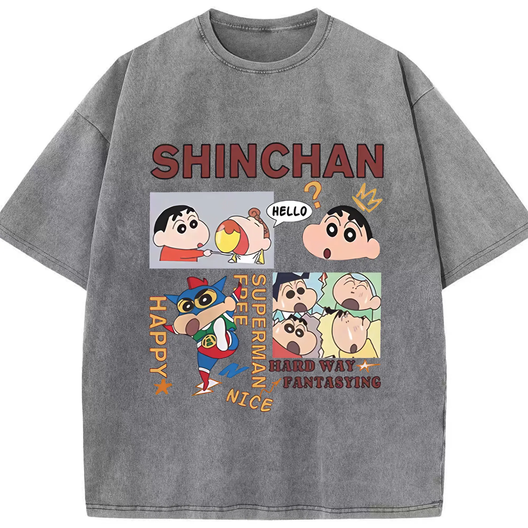 クレヨンしんちゃん グッズ 野原 しんのすけ - 綿100% ヴィンテージ風 半袖Tシャツ ・ 背面プリント ・ 柔らか肌触り ・ 通気性 快適 ・ スポーツ カジュアル 外出用