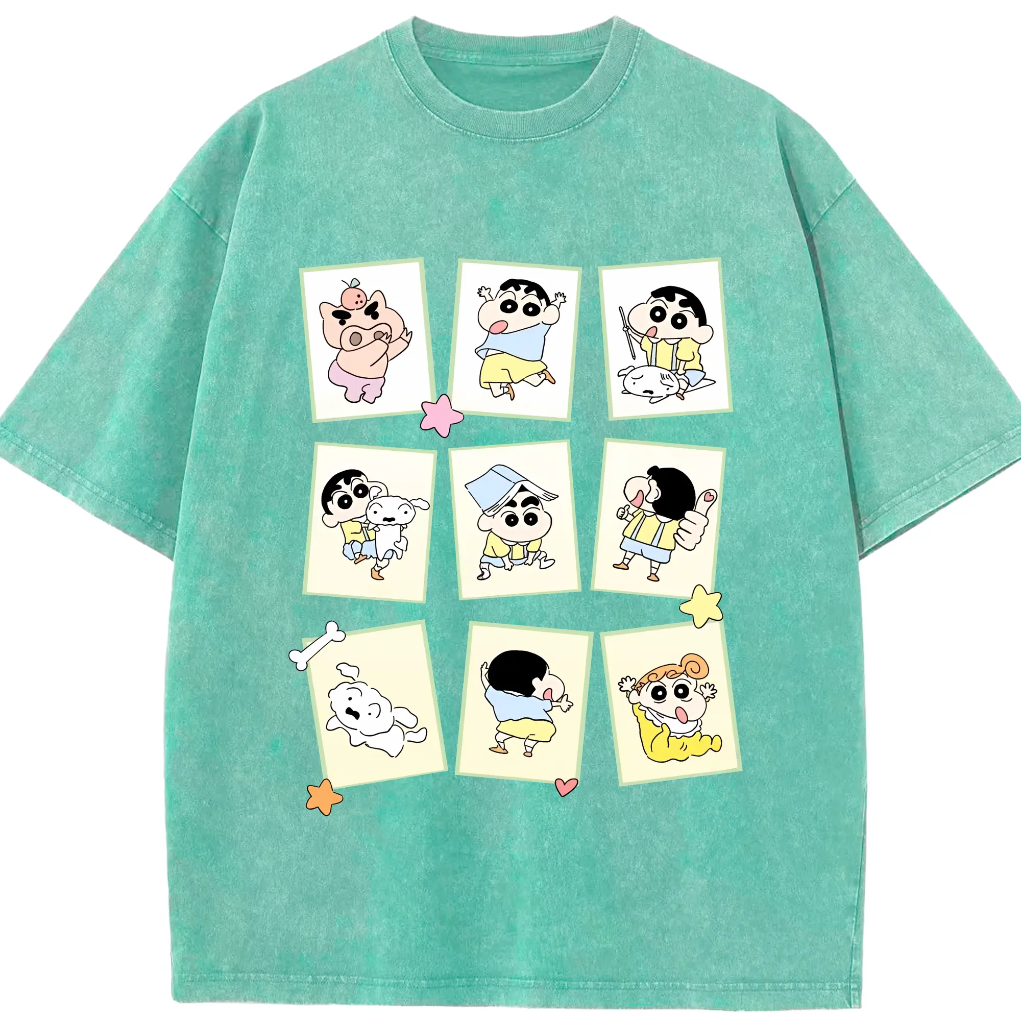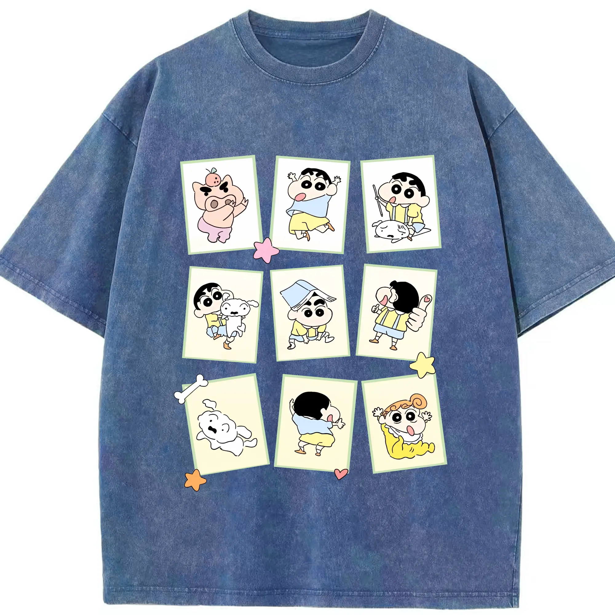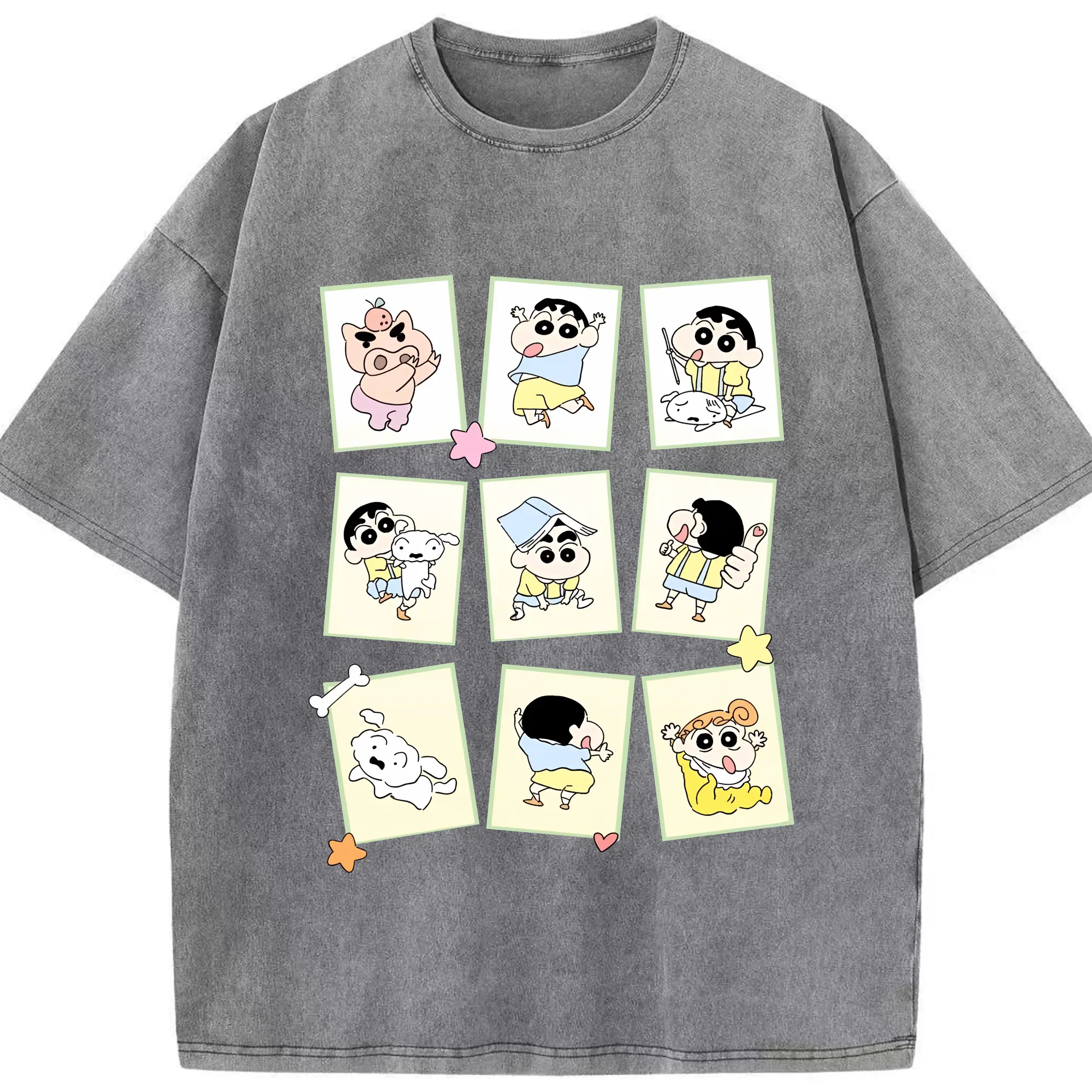 クレヨンしんちゃん グッズ 野原 しんのすけ - 綿100% ヴィンテージ風 半袖Tシャツ ・ 背面プリント ・ 柔らか肌触り ・ 通気性 快適 ・ スポーツ カジュアル 外出用