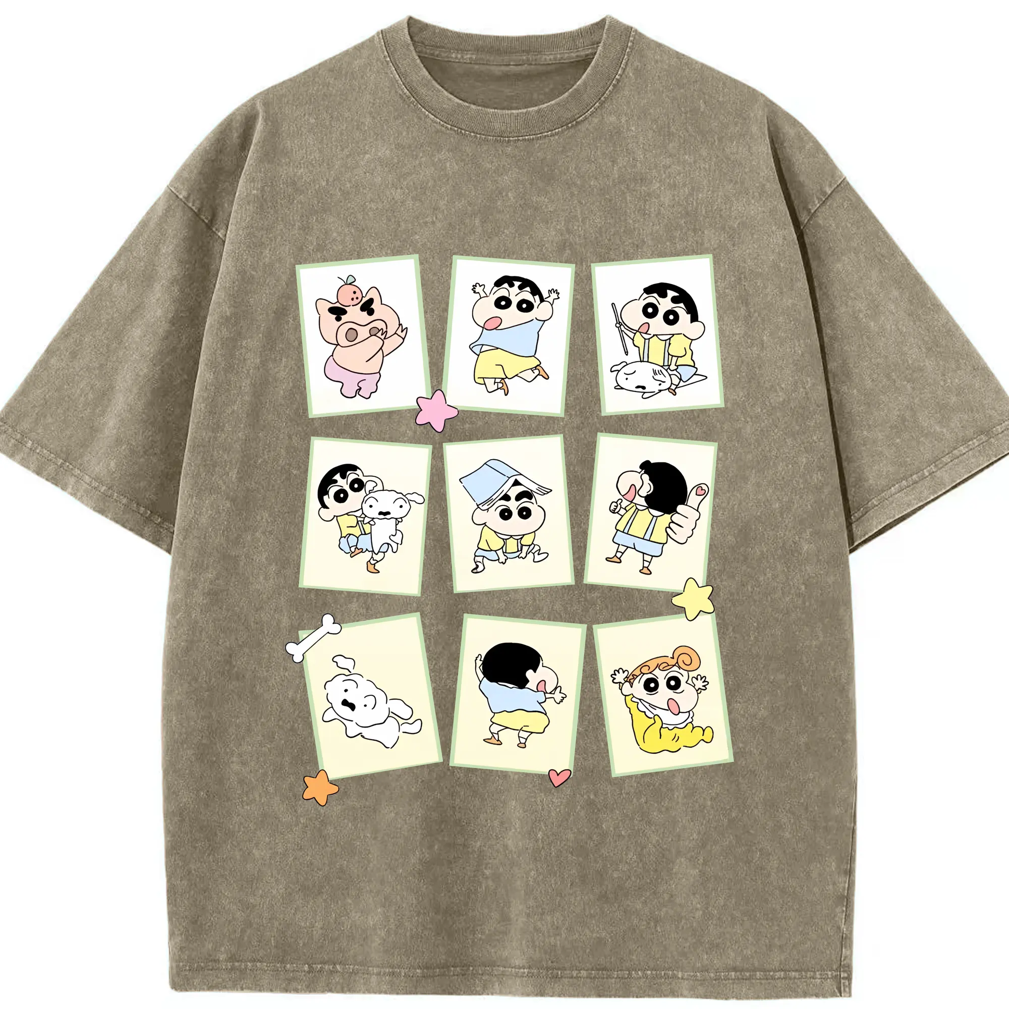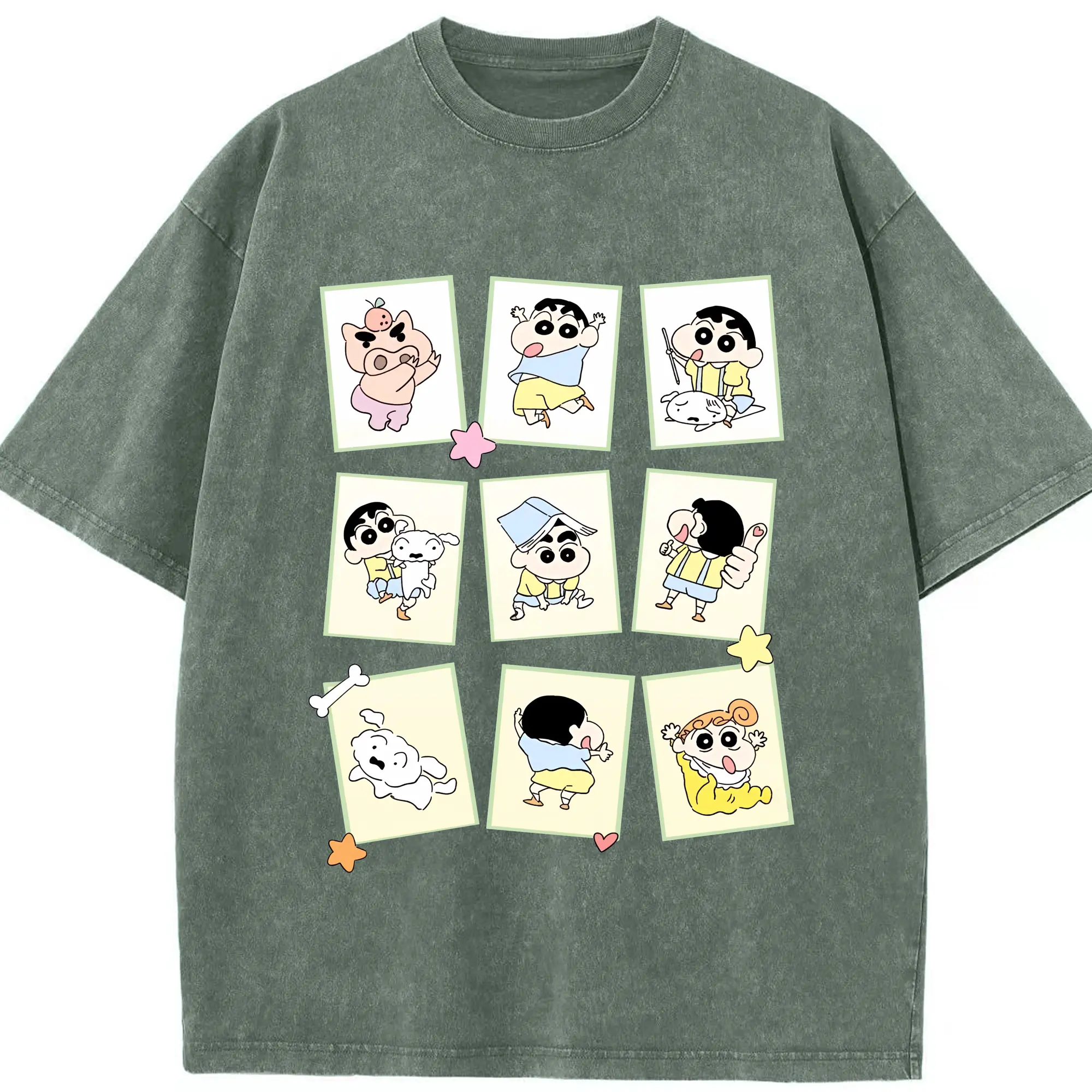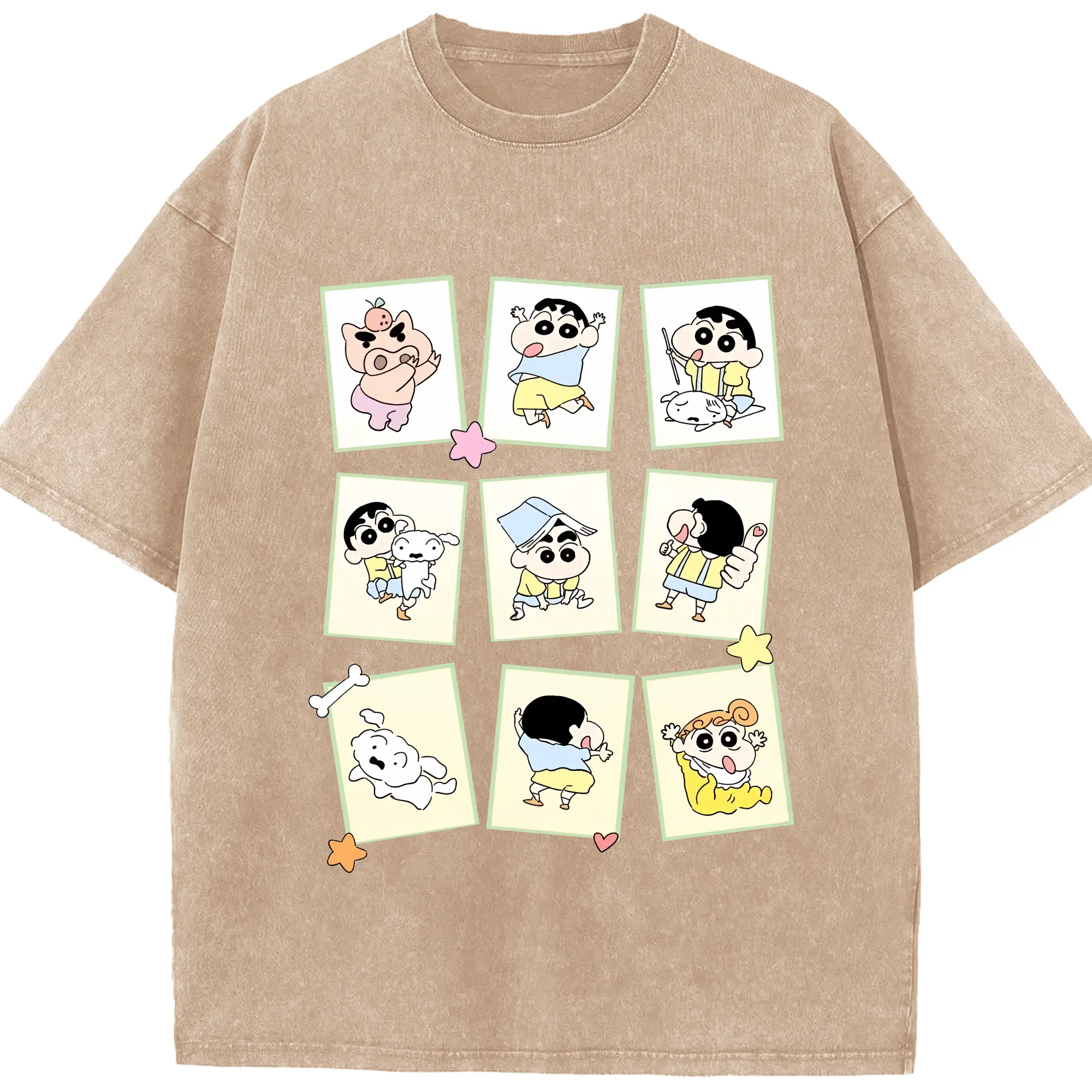 クレヨンしんちゃん グッズ 野原 しんのすけ - 綿100% ヴィンテージ風 半袖Tシャツ ・ 背面プリント ・ 柔らか肌触り ・ 通気性 快適 ・ スポーツ カジュアル 外出用