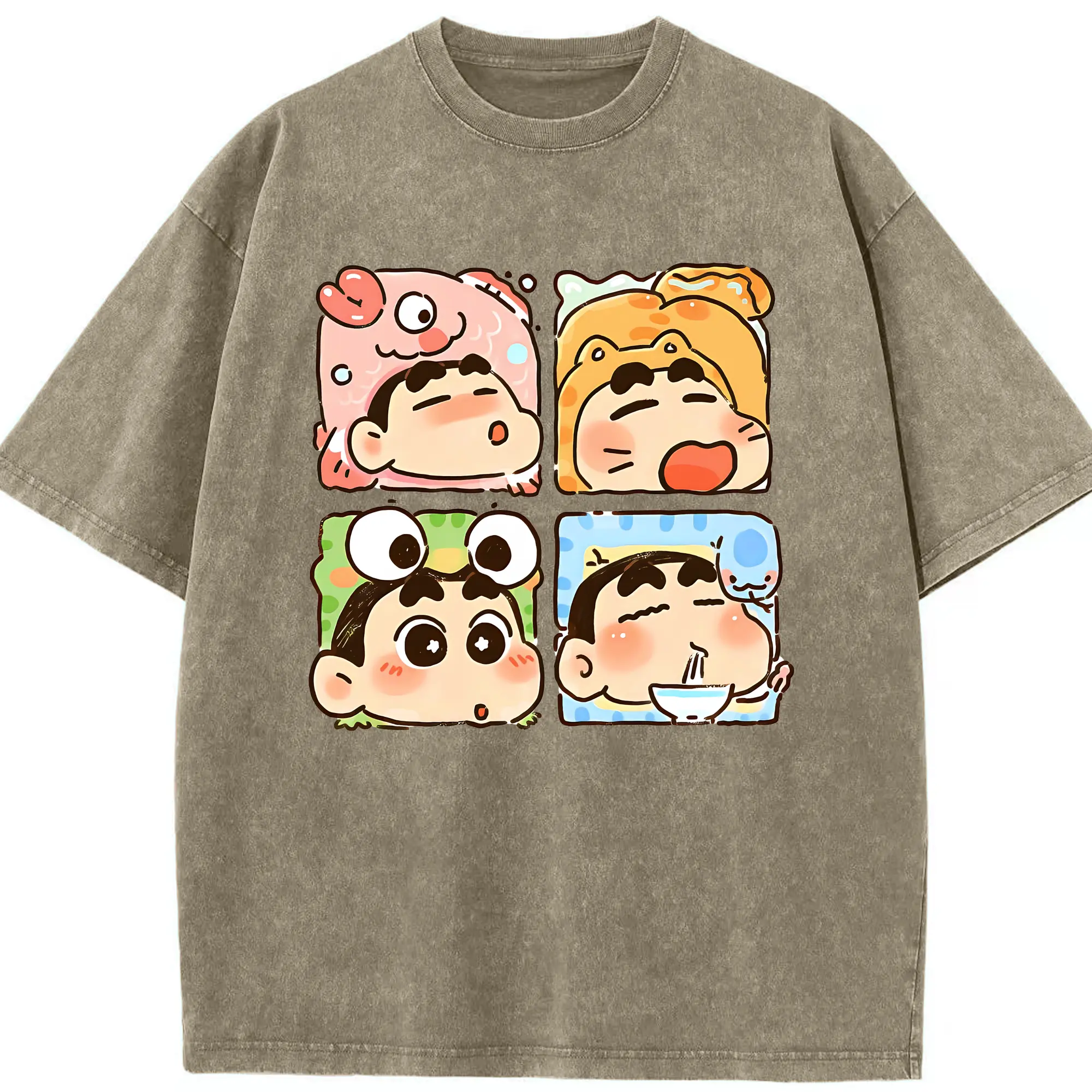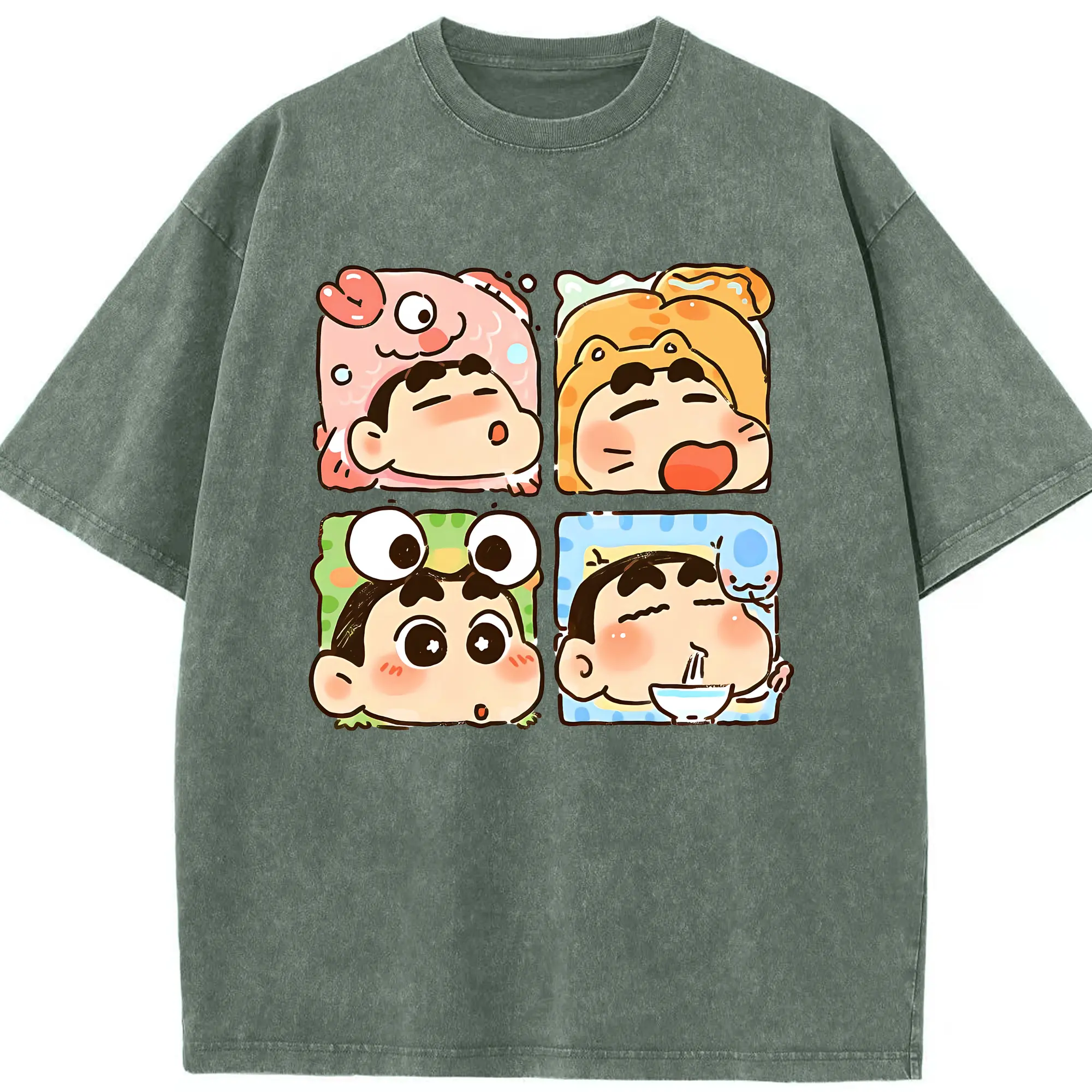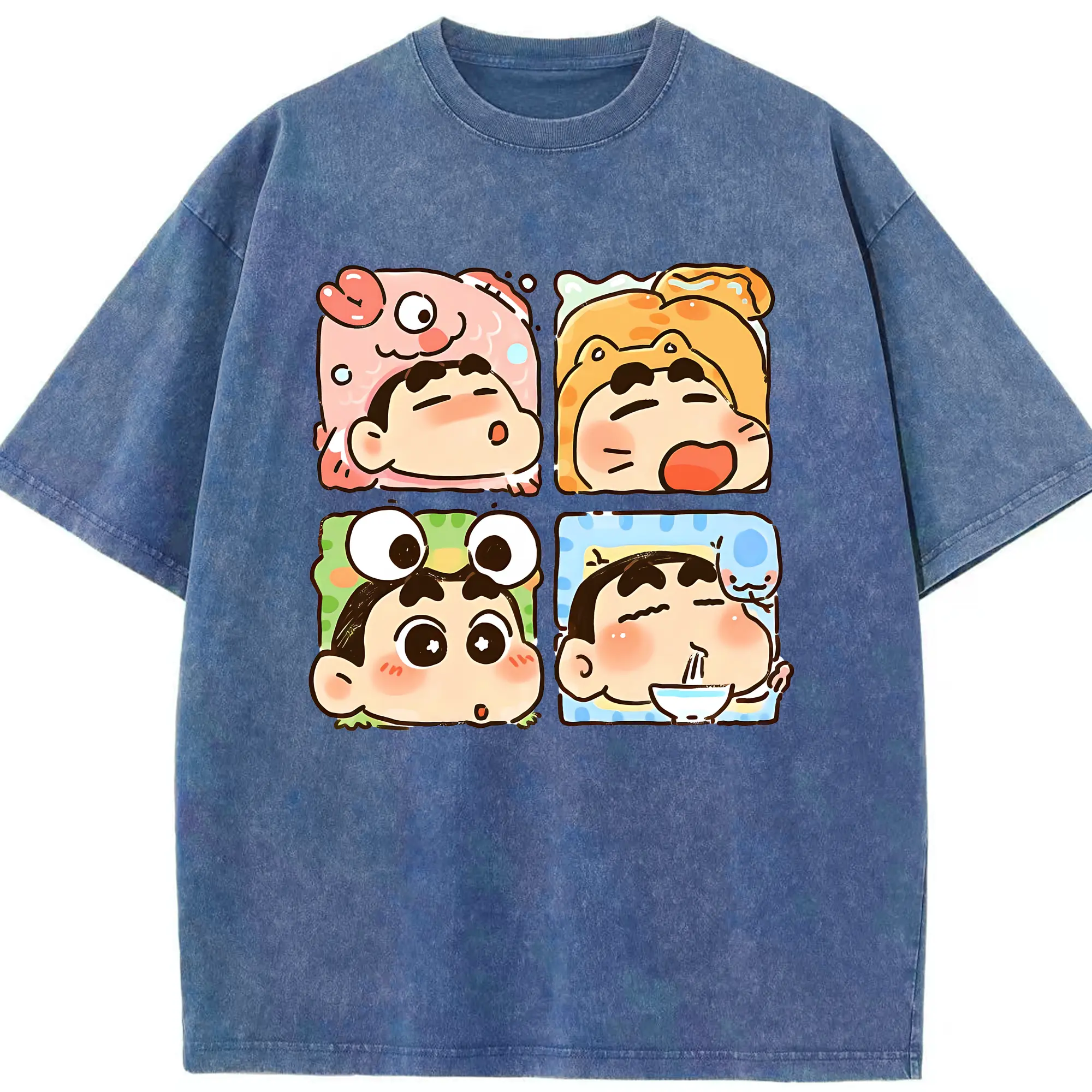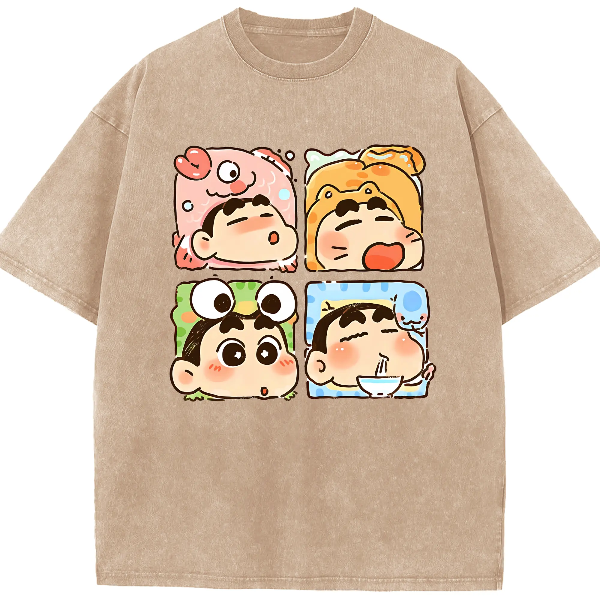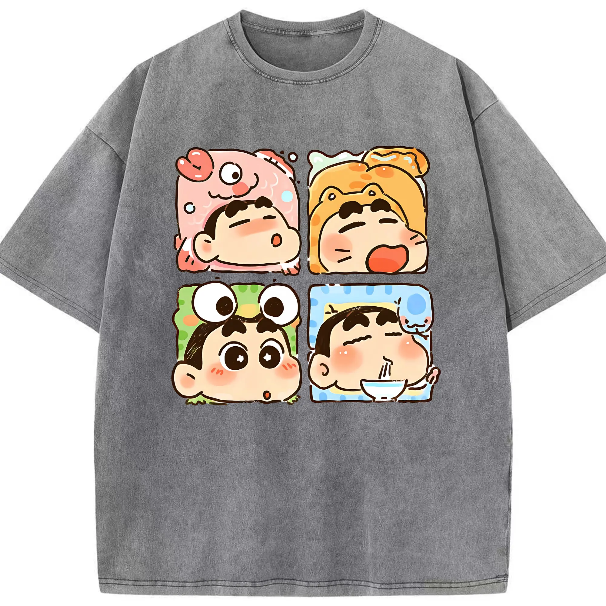 クレヨンしんちゃん グッズ 野原 しんのすけ - 綿100% ヴィンテージ風 半袖Tシャツ ・ 背面プリント ・ 柔らか肌触り ・ 通気性 快適 ・ スポーツ カジュアル 外出用