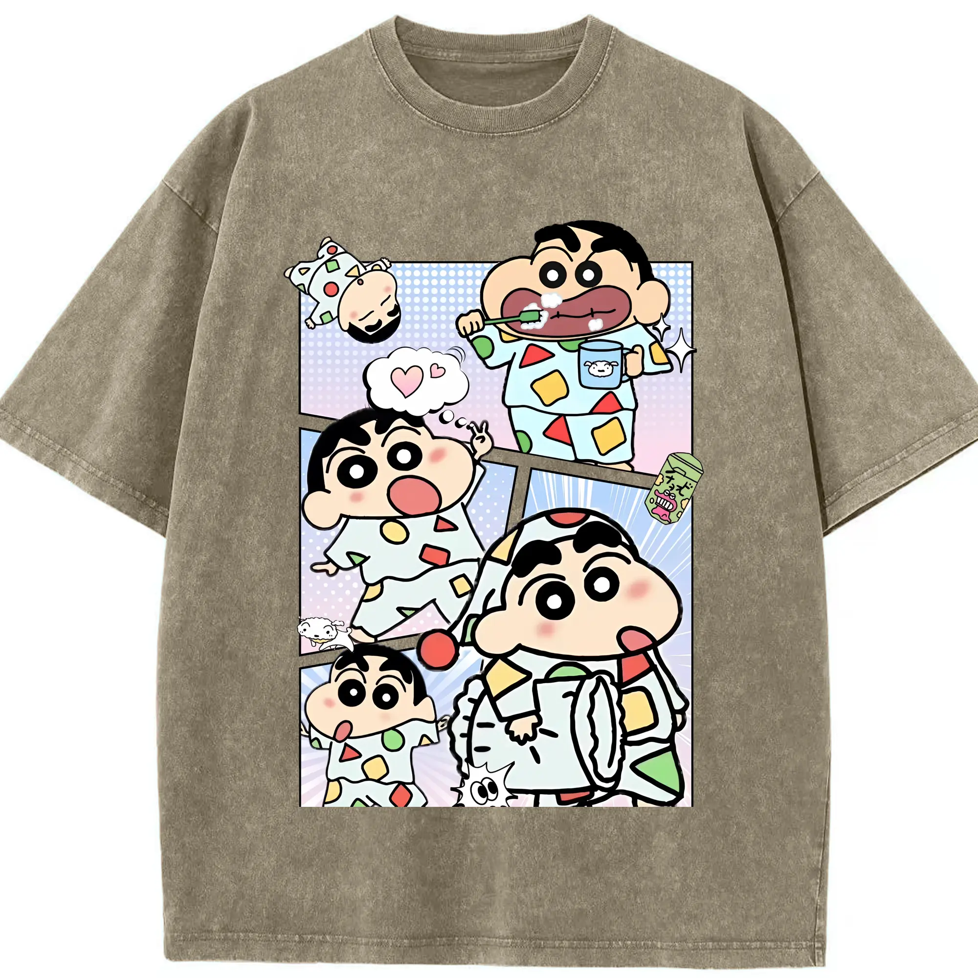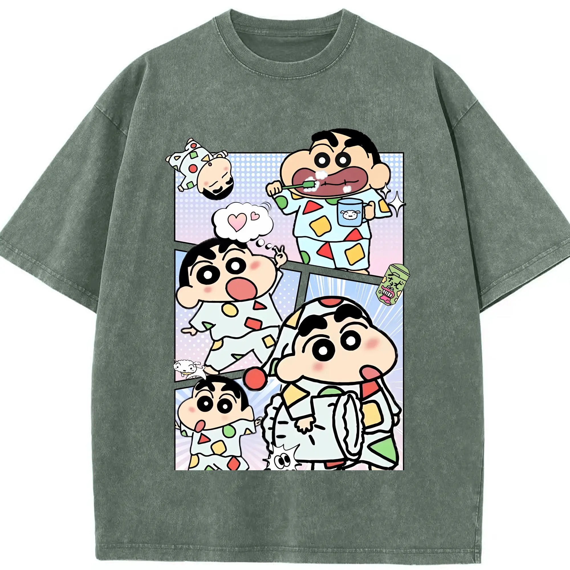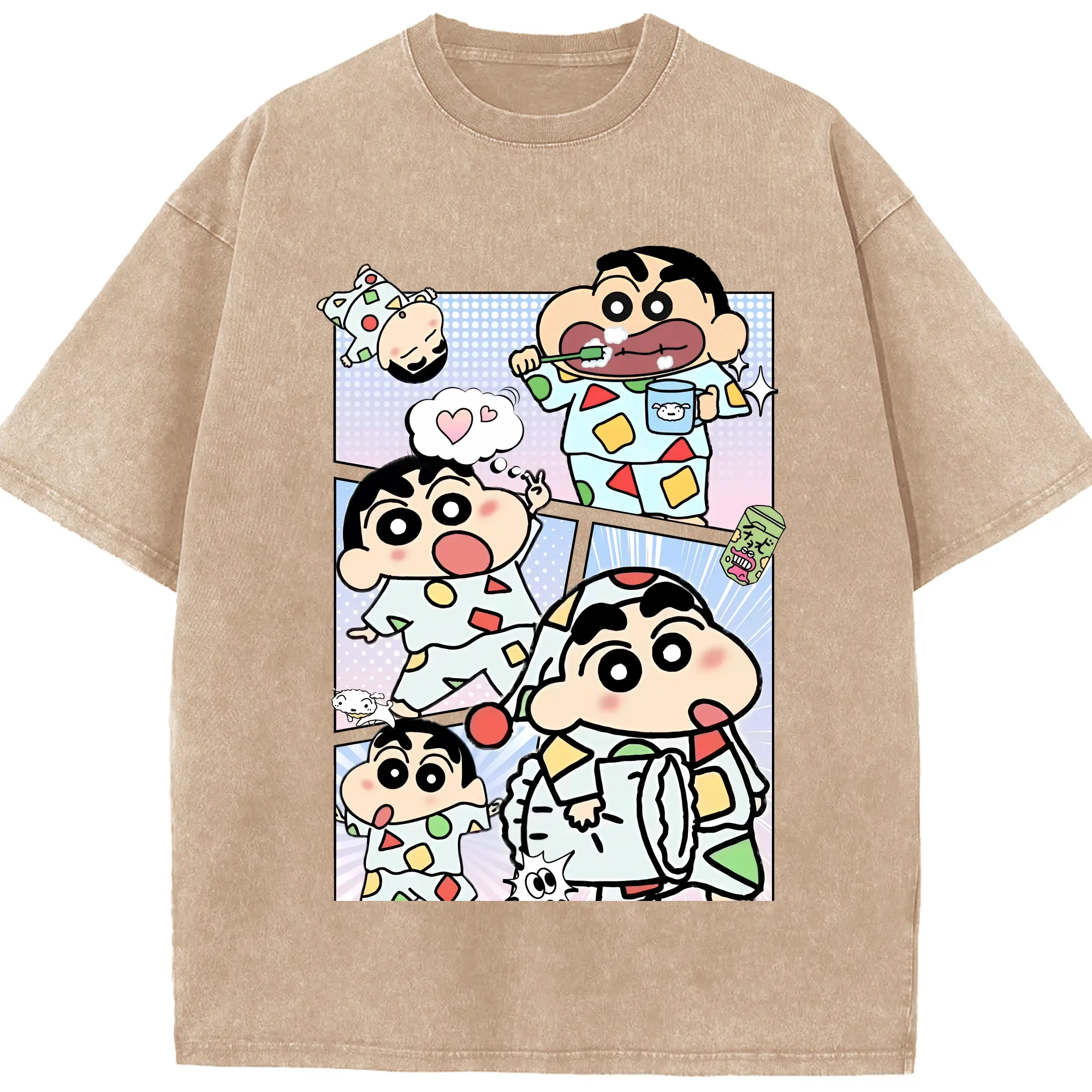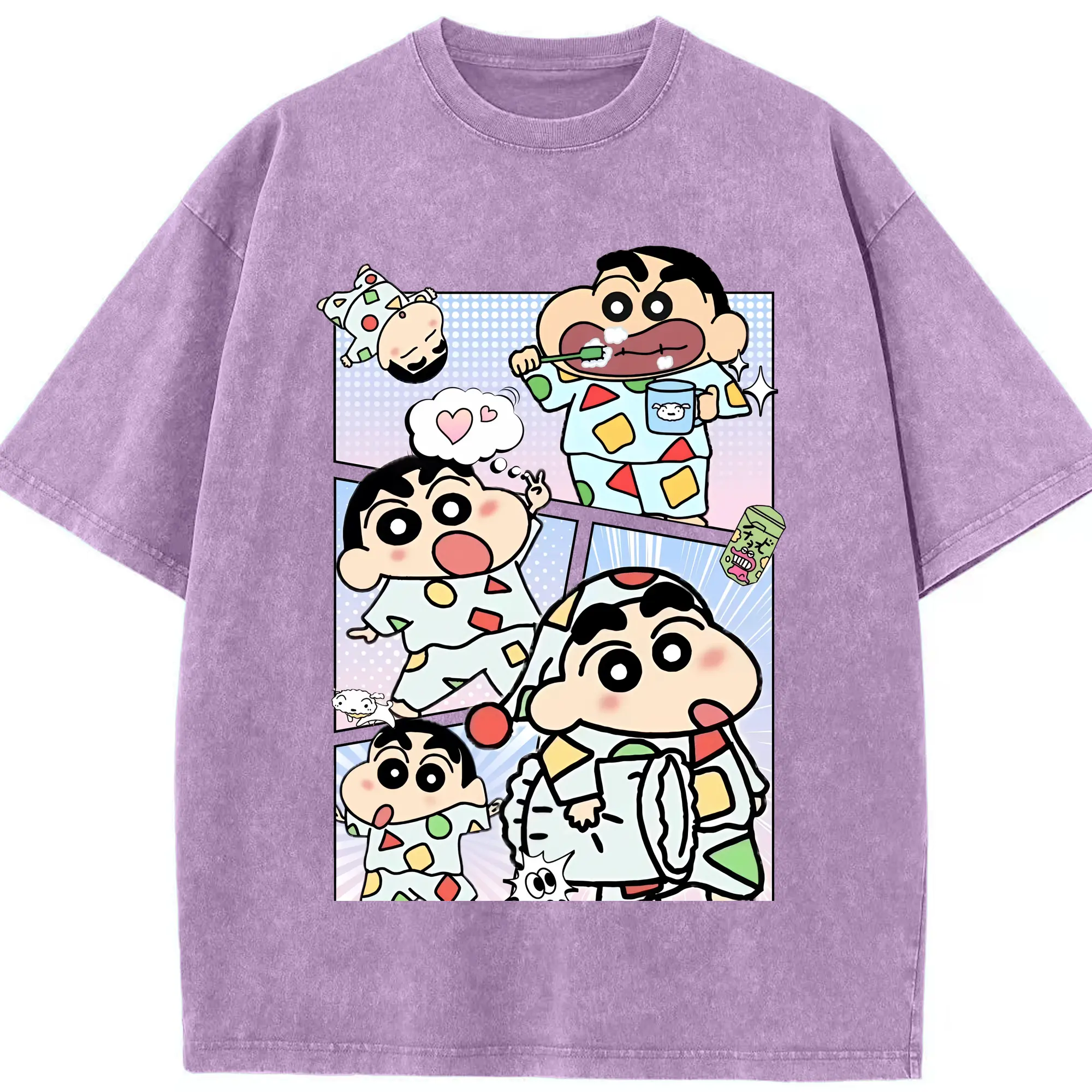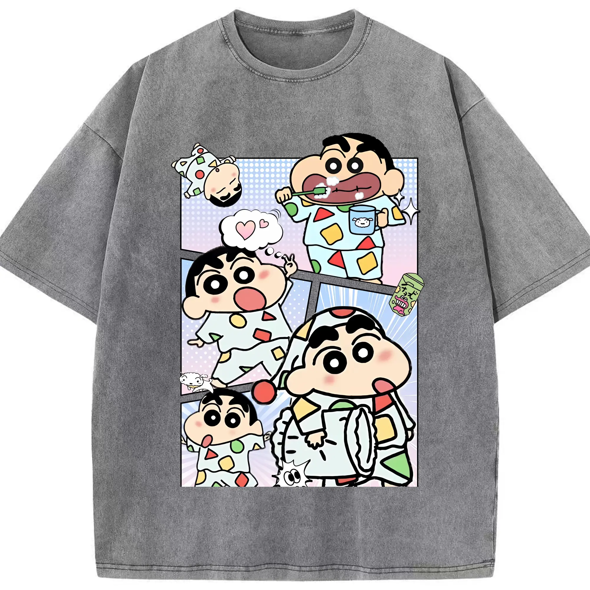クレヨンしんちゃん グッズ 野原 しんのすけ - 綿100% ヴィンテージ風 半袖Tシャツ ・ 背面プリント ・ 柔らか肌触り ・ 通気性 快適 ・ スポーツ カジュアル 外出用