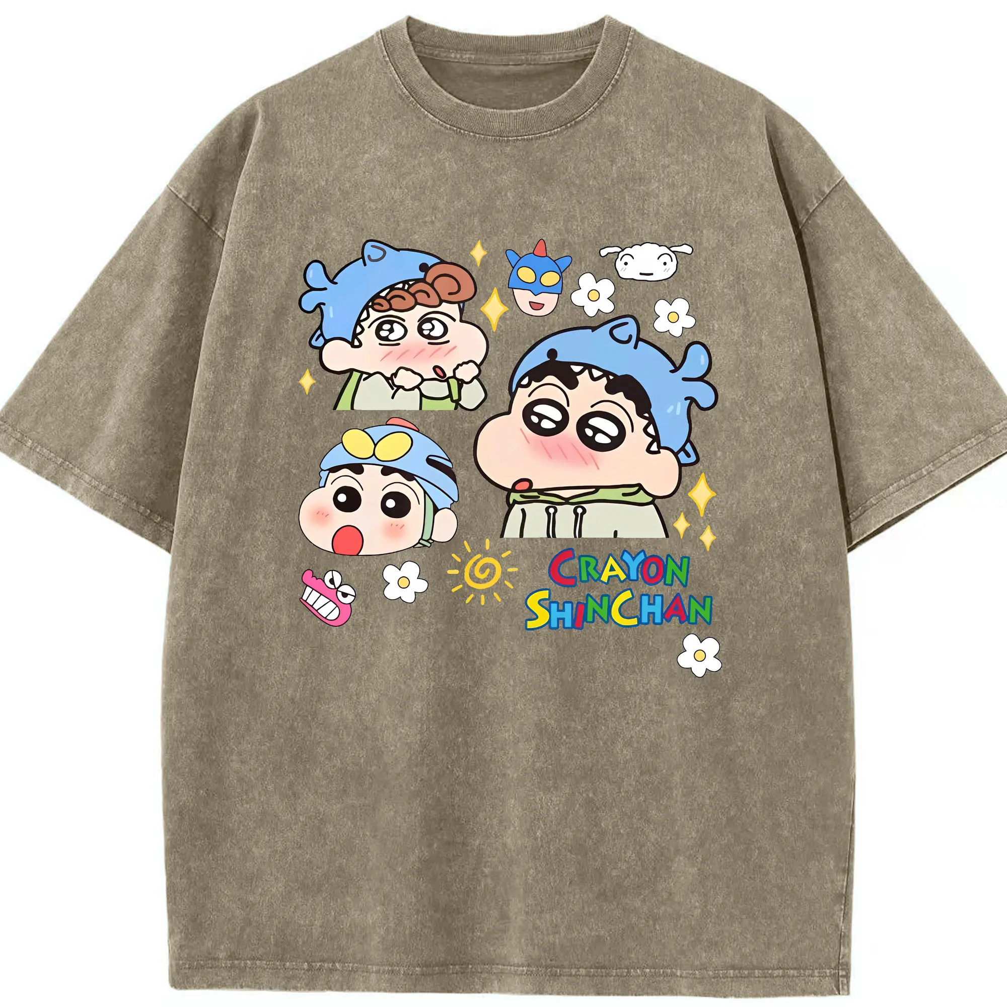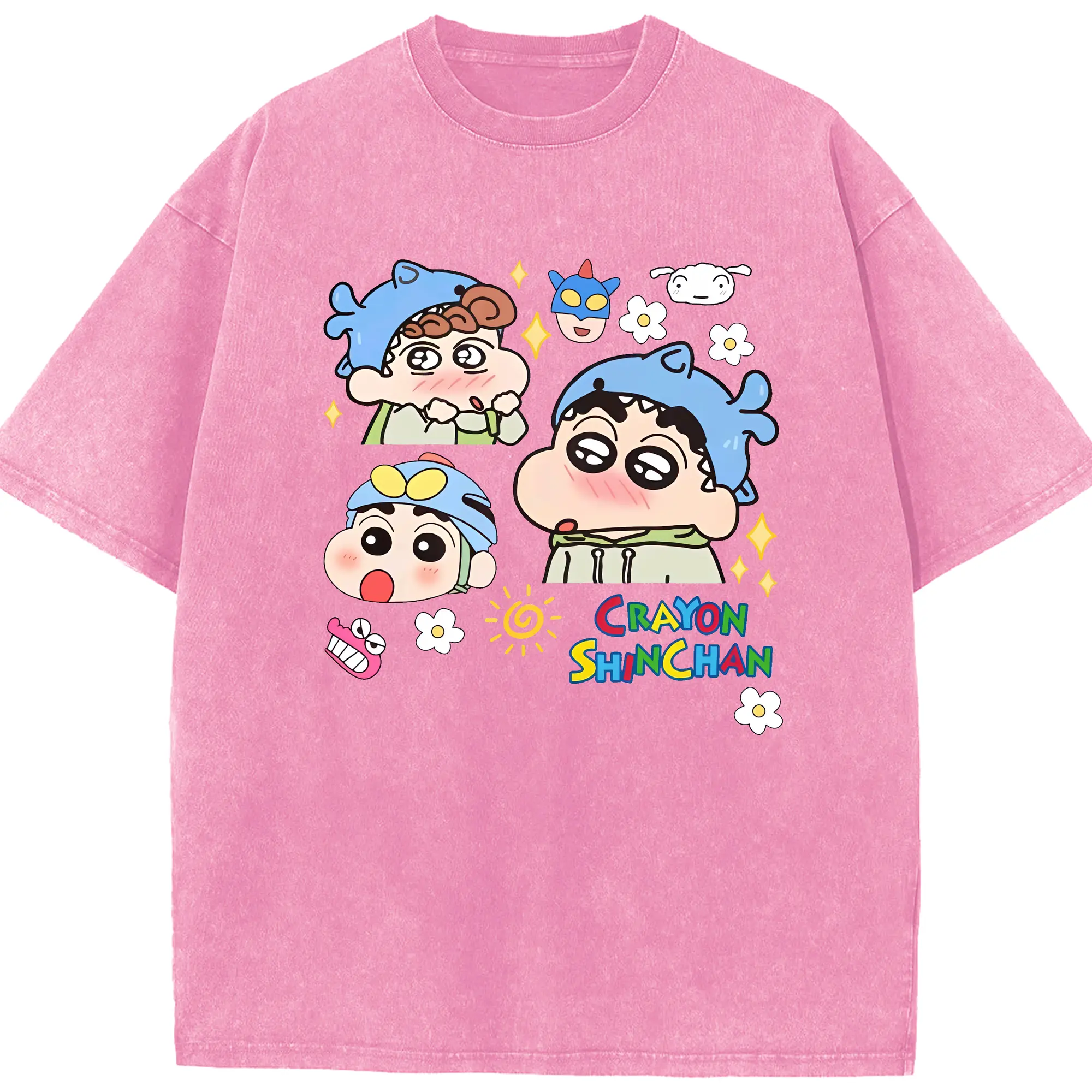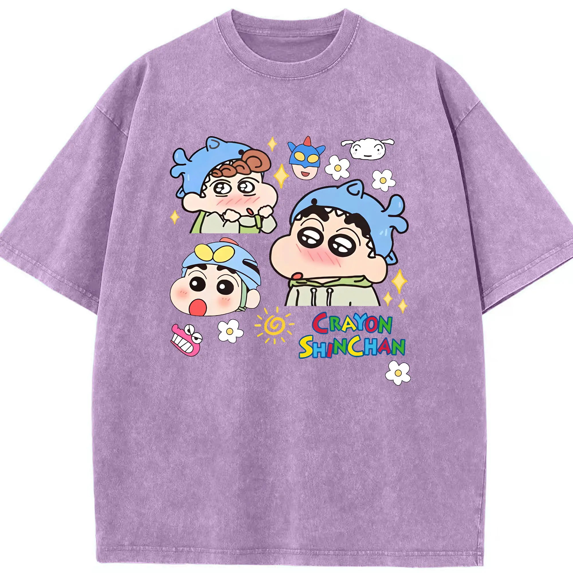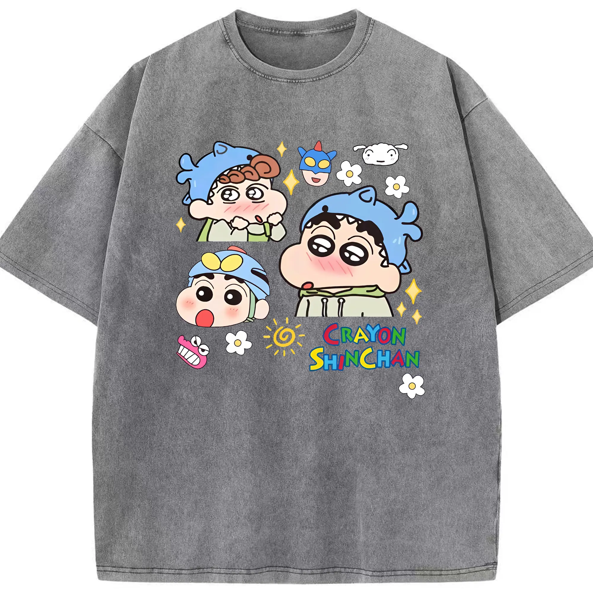 クレヨンしんちゃん グッズ 野原 しんのすけ - 綿100% ヴィンテージ風 半袖Tシャツ ・ 背面プリント ・ 柔らか肌触り ・ 通気性 快適 ・ スポーツ カジュアル 外出用