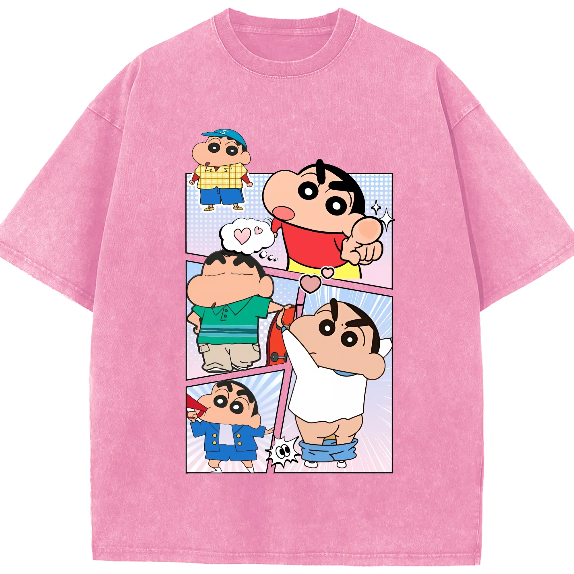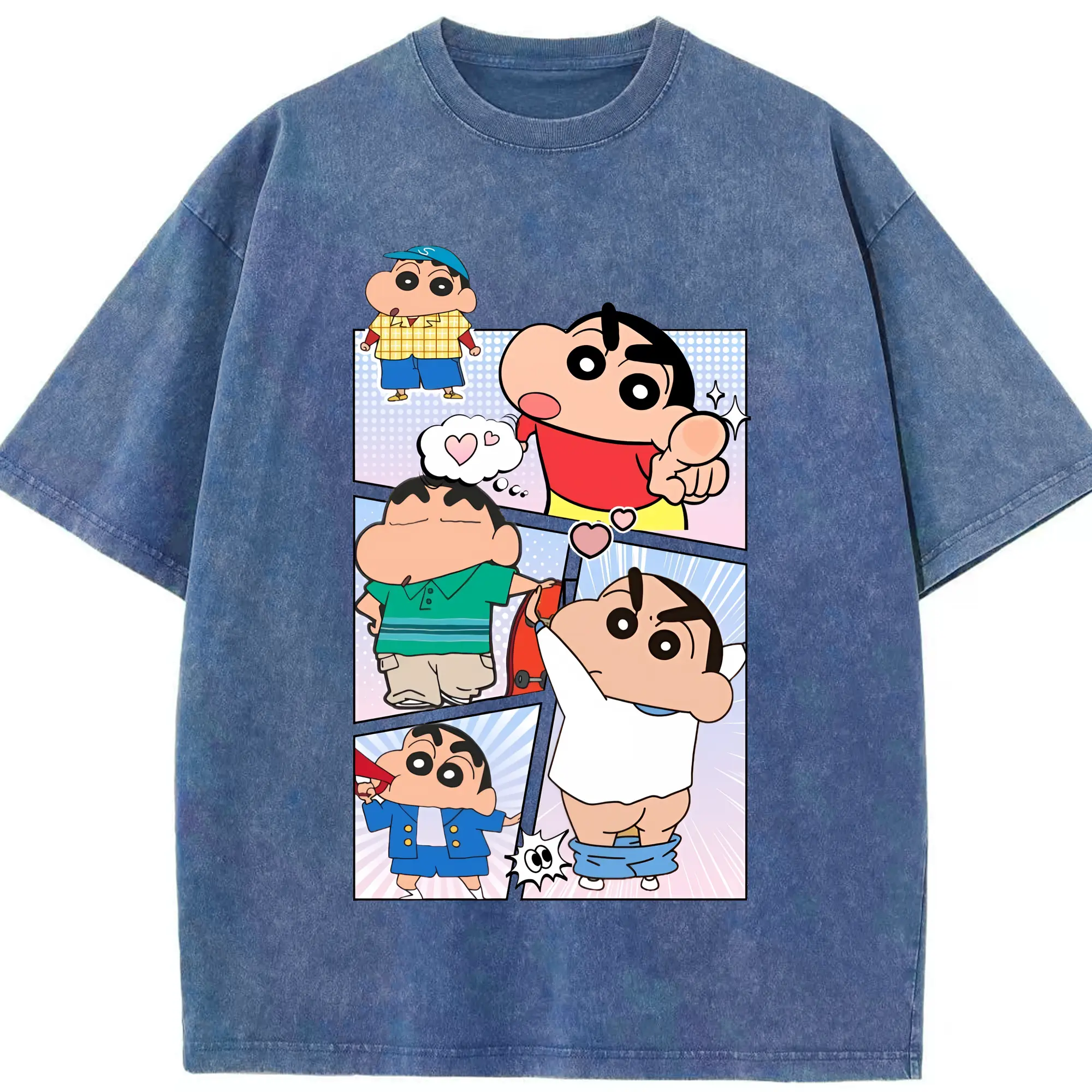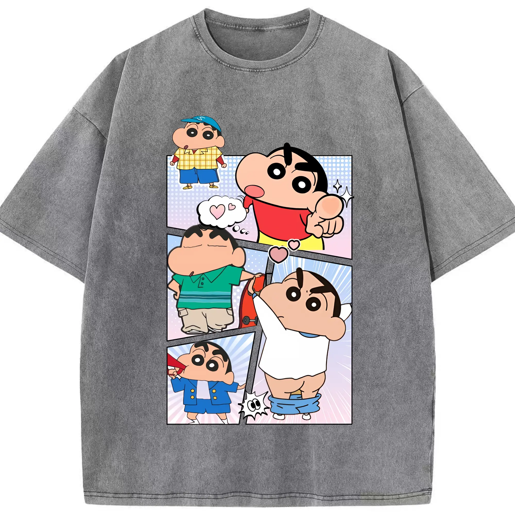 クレヨンしんちゃん グッズ 野原 しんのすけ - 綿100% ヴィンテージ風 半袖Tシャツ ・ 背面プリント ・ 柔らか肌触り ・ 通気性 快適 ・ スポーツ カジュアル 外出用