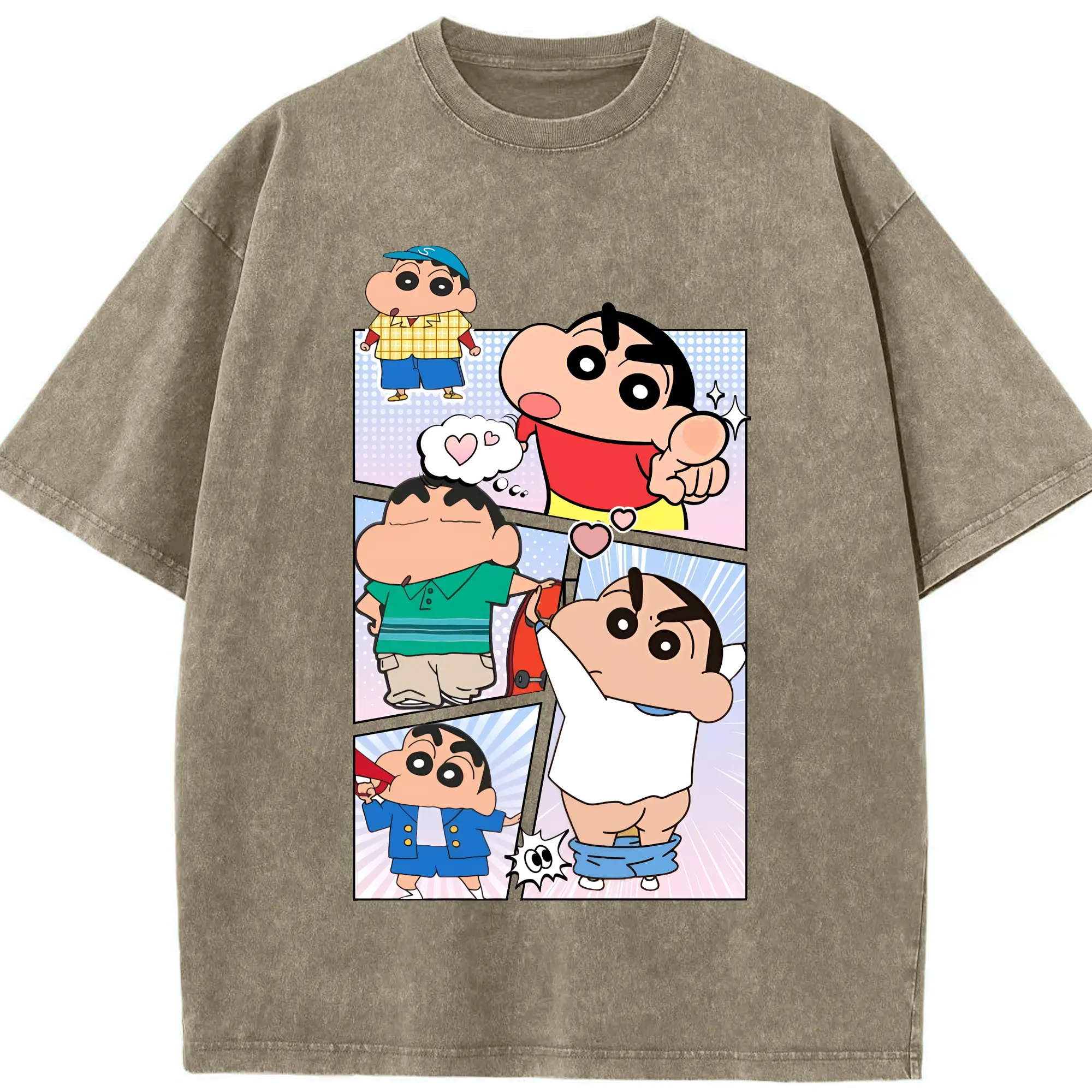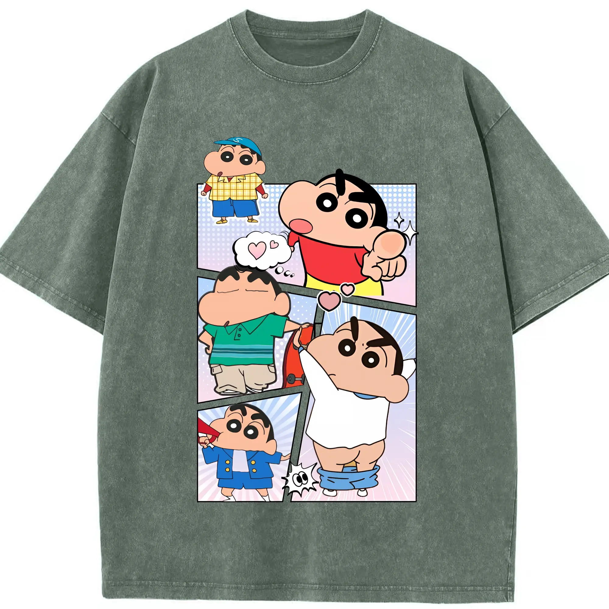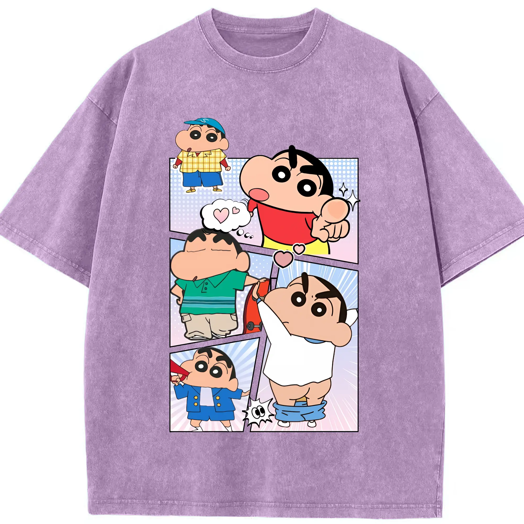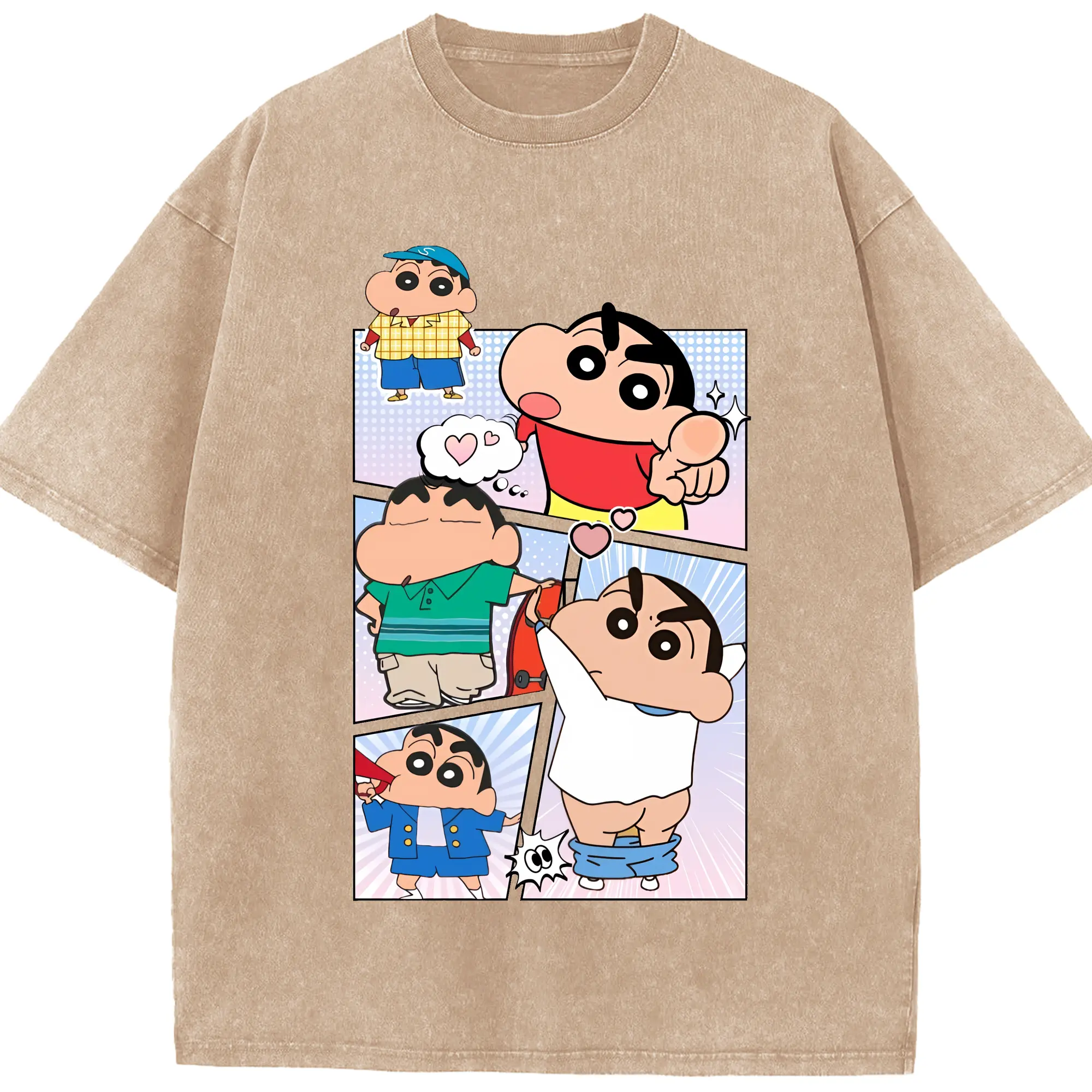 クレヨンしんちゃん グッズ 野原 しんのすけ - 綿100% ヴィンテージ風 半袖Tシャツ ・ 背面プリント ・ 柔らか肌触り ・ 通気性 快適 ・ スポーツ カジュアル 外出用