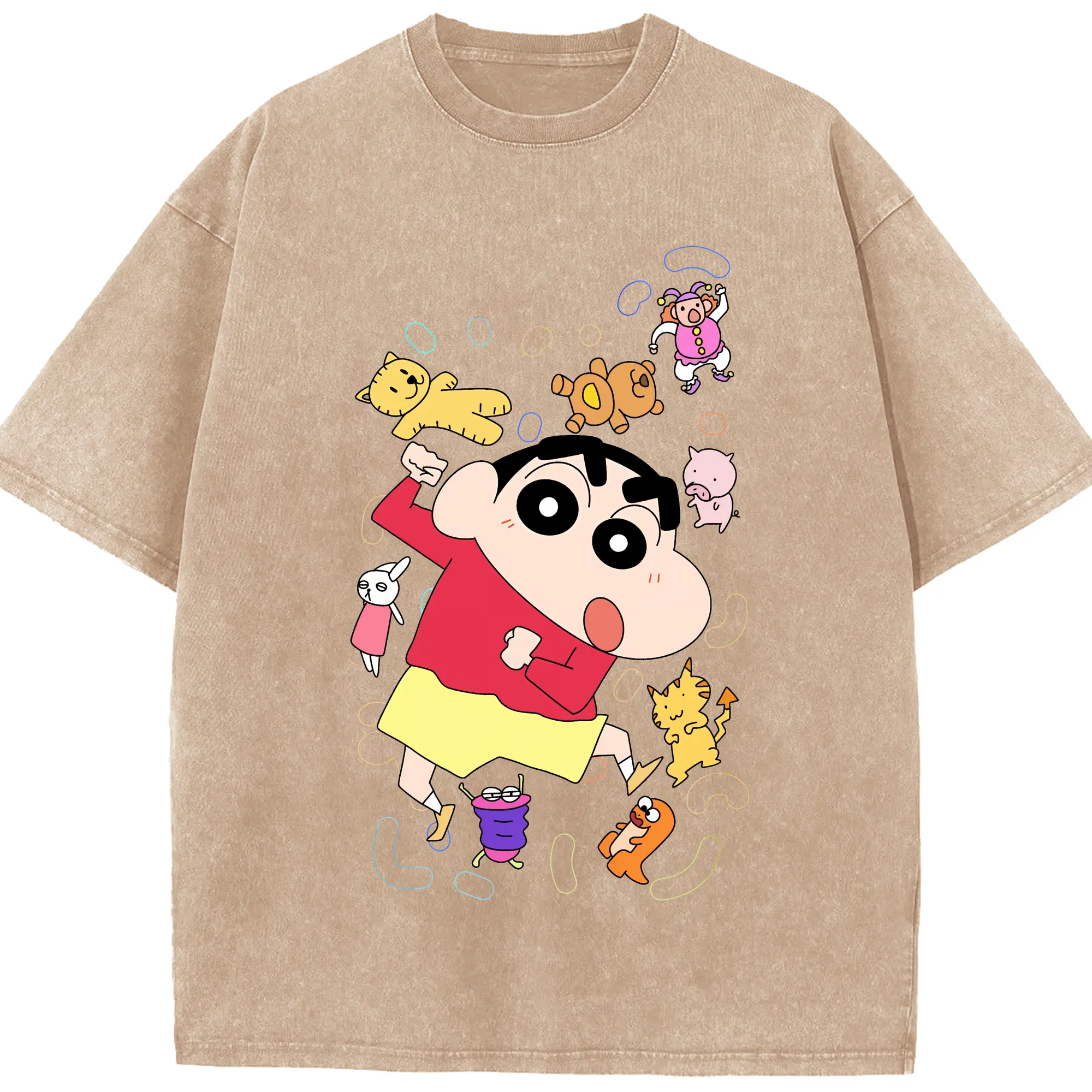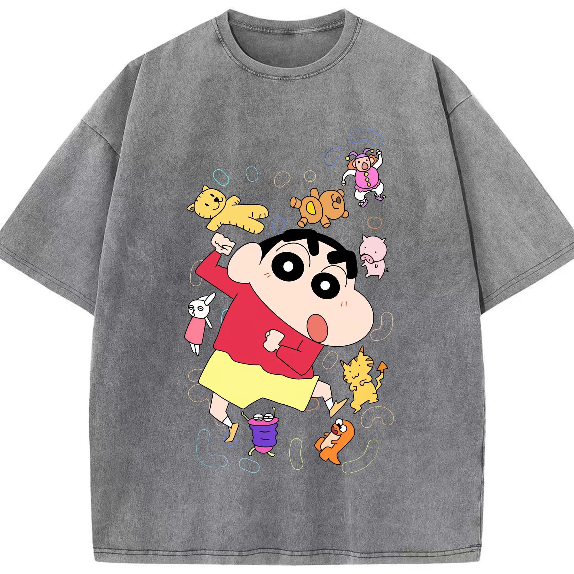 クレヨンしんちゃん グッズ 野原 しんのすけ - 綿100% ヴィンテージ風 半袖Tシャツ ・ 背面プリント ・ 柔らか肌触り ・ 通気性 快適 ・ スポーツ カジュアル 外出用