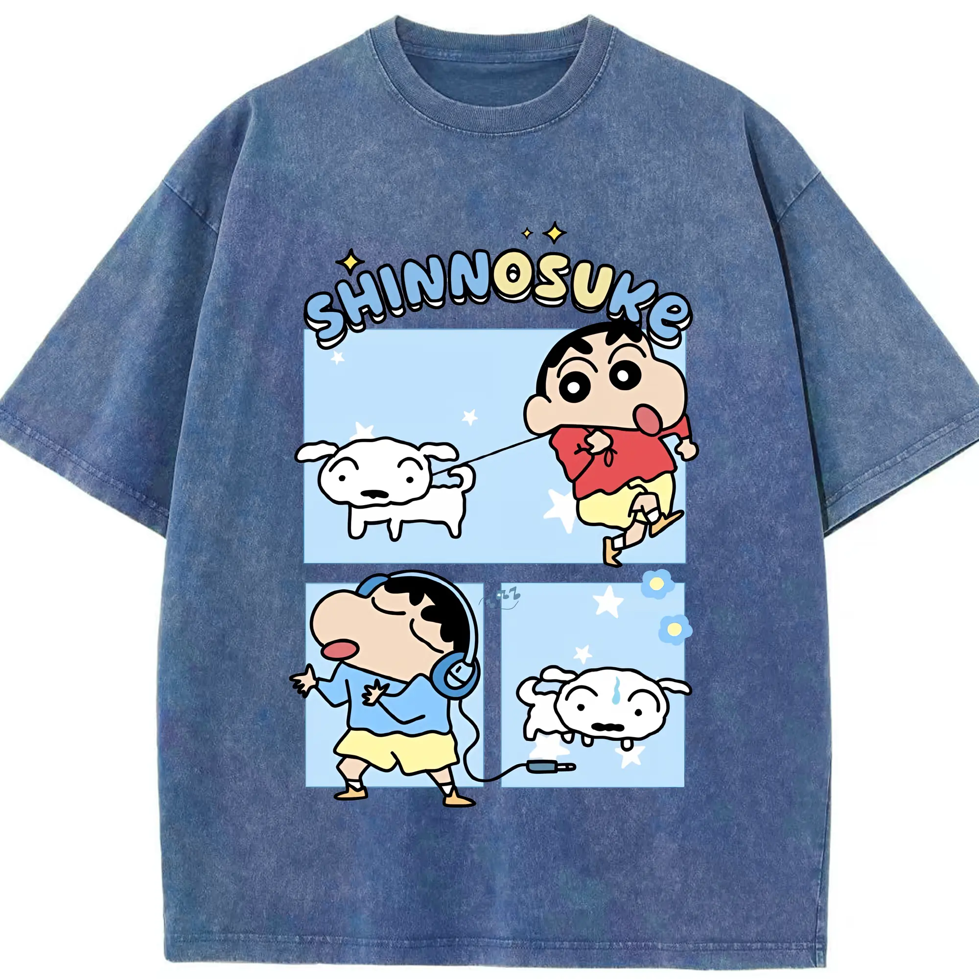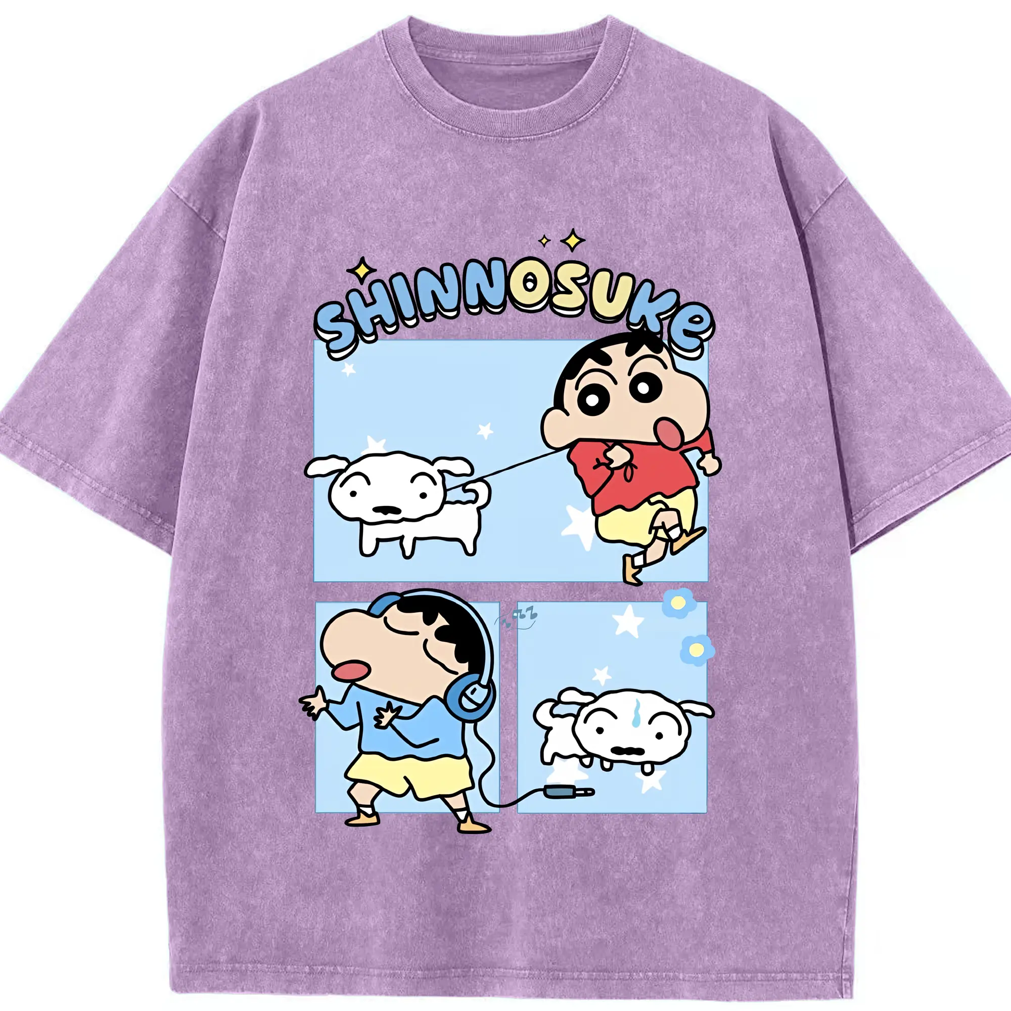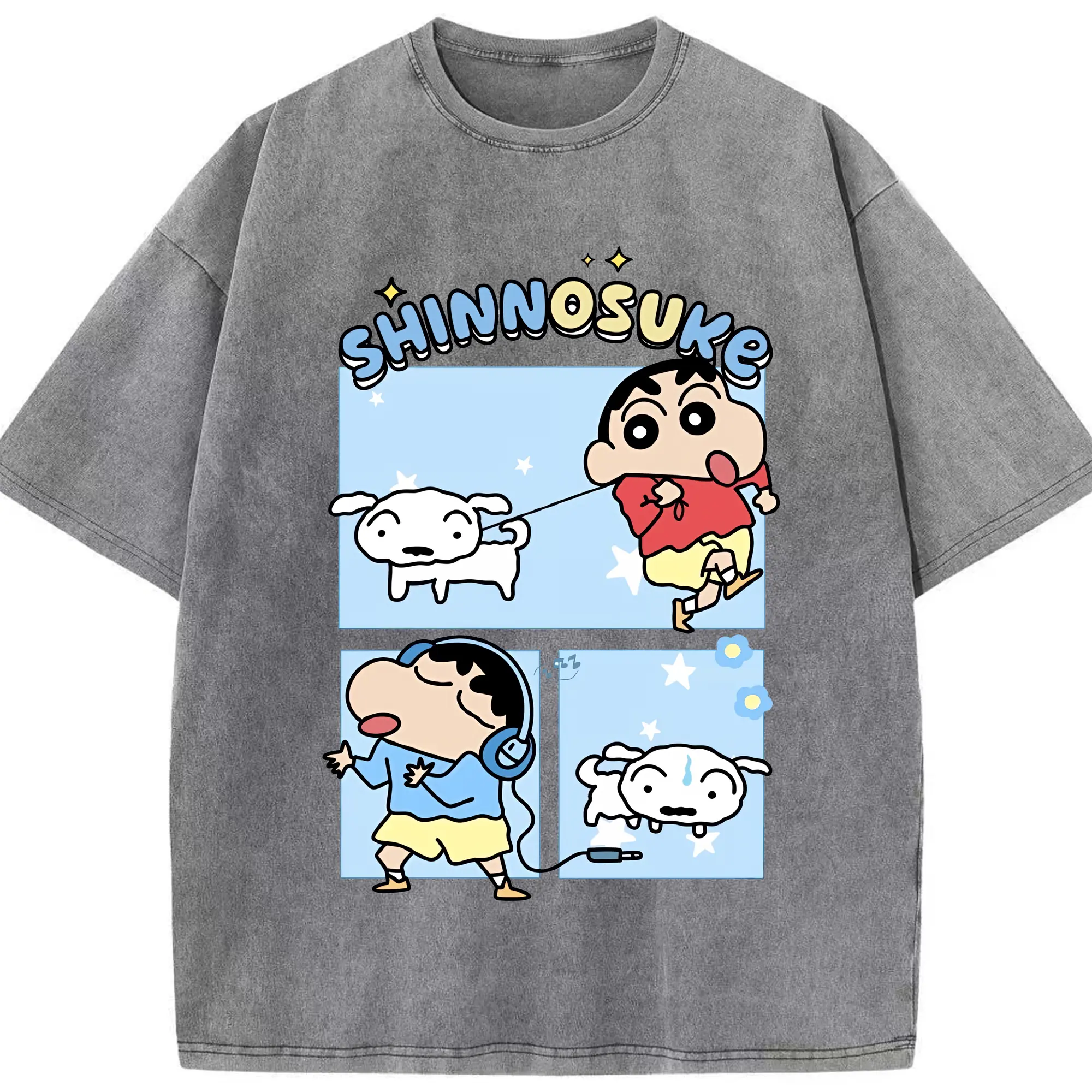 クレヨンしんちゃん グッズ 野原 しんのすけ - 綿100% ヴィンテージ風 半袖Tシャツ ・ 背面プリント ・ 柔らか肌触り ・ 通気性 快適 ・ スポーツ カジュアル 外出用